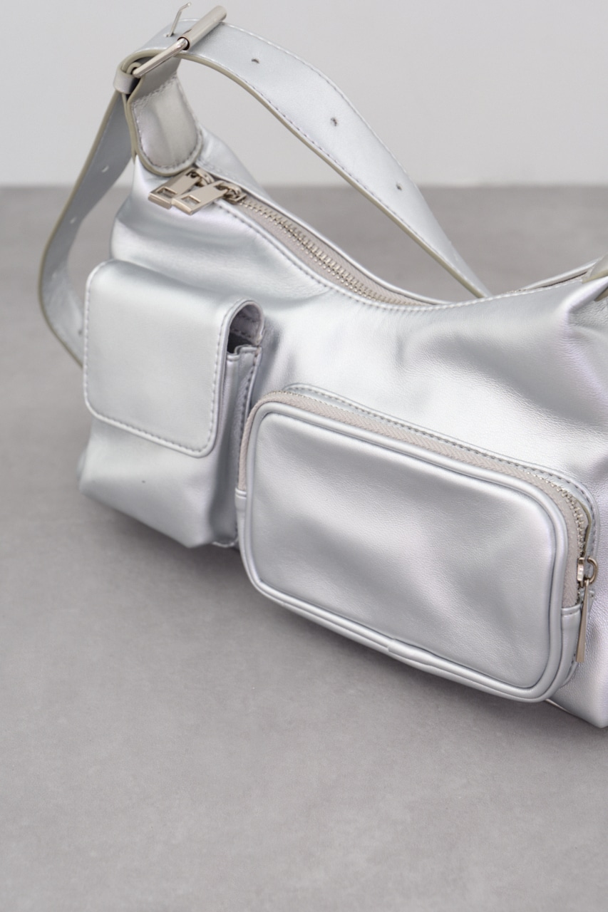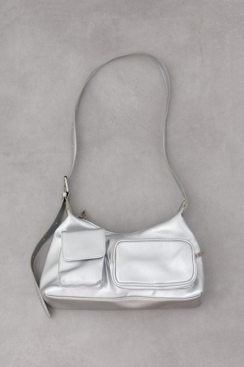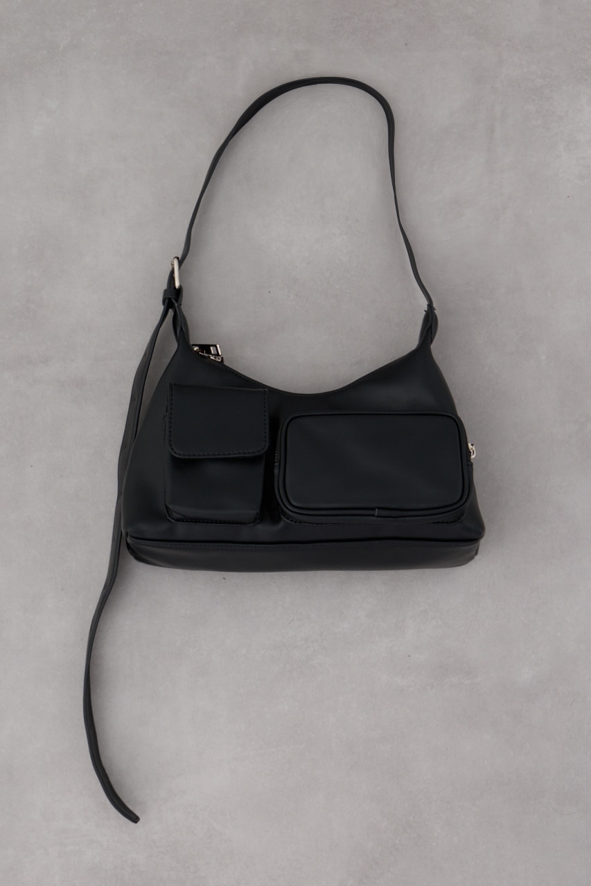 持つだけでトレンド感をプラスできるボックスポケットハンドバッグです。