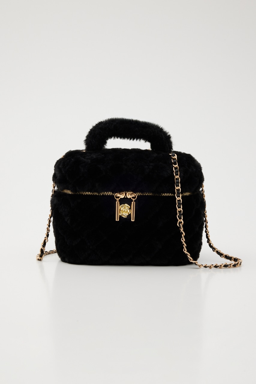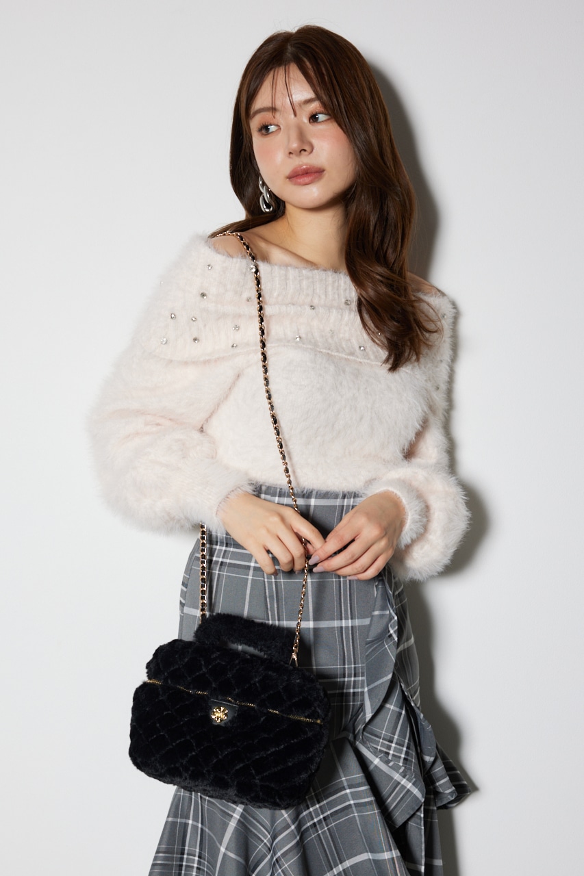 ころんとしたフォルムと肌触りが良いフェイクファーで仕上げることでが愛らしいバニティーバッグ。