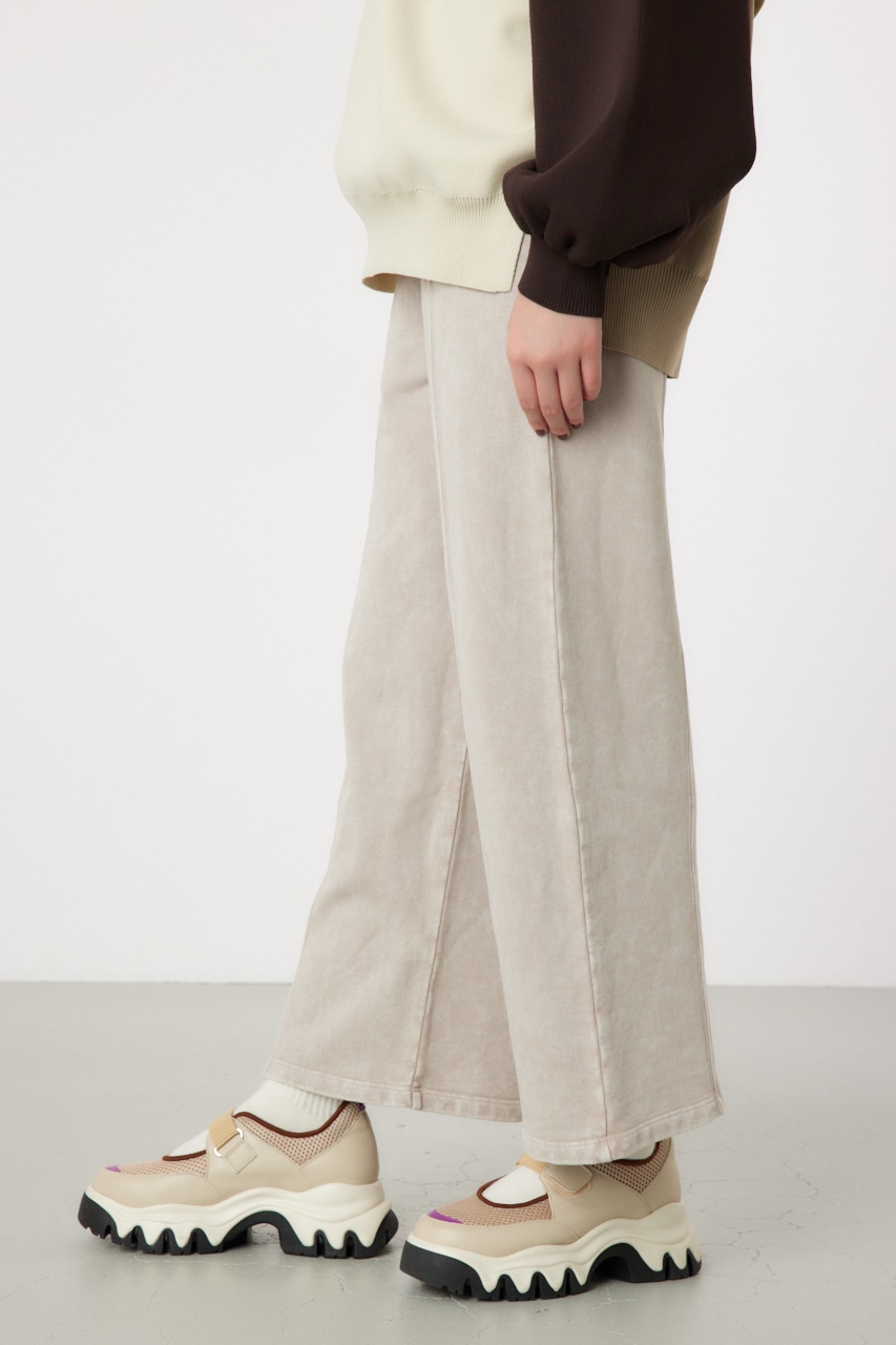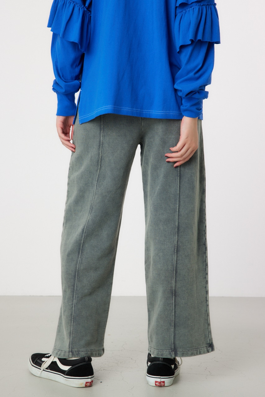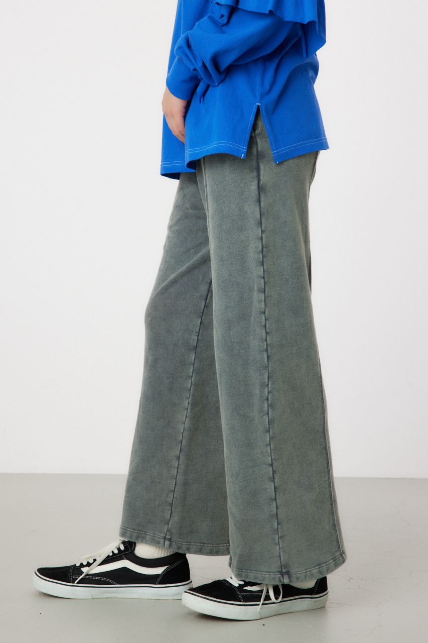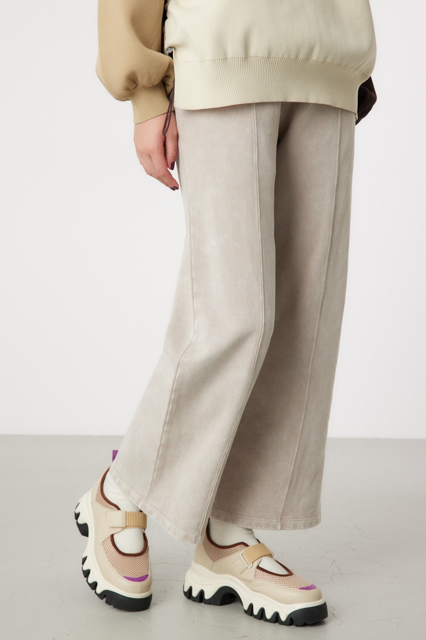 今季らしい加工のワイドパンツ。ウエストから裾口に向かって広がるワイドなシルエットがポイント。真直ぐに入った切替は、加工感だけではなく、綺麗な足のラインを演出してくれます。厚すぎない生地なので、着太りせずに長いシーズン着用できるアイテムです。