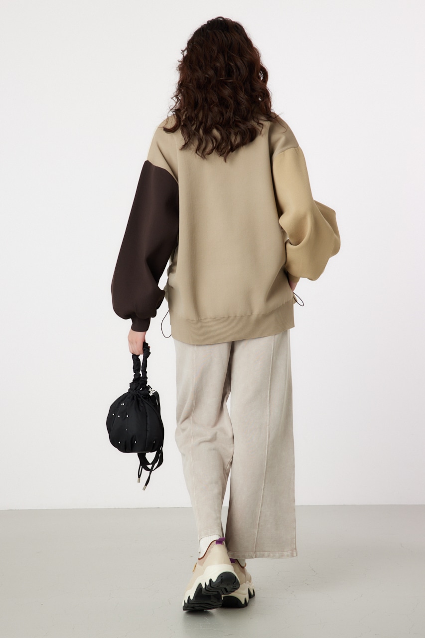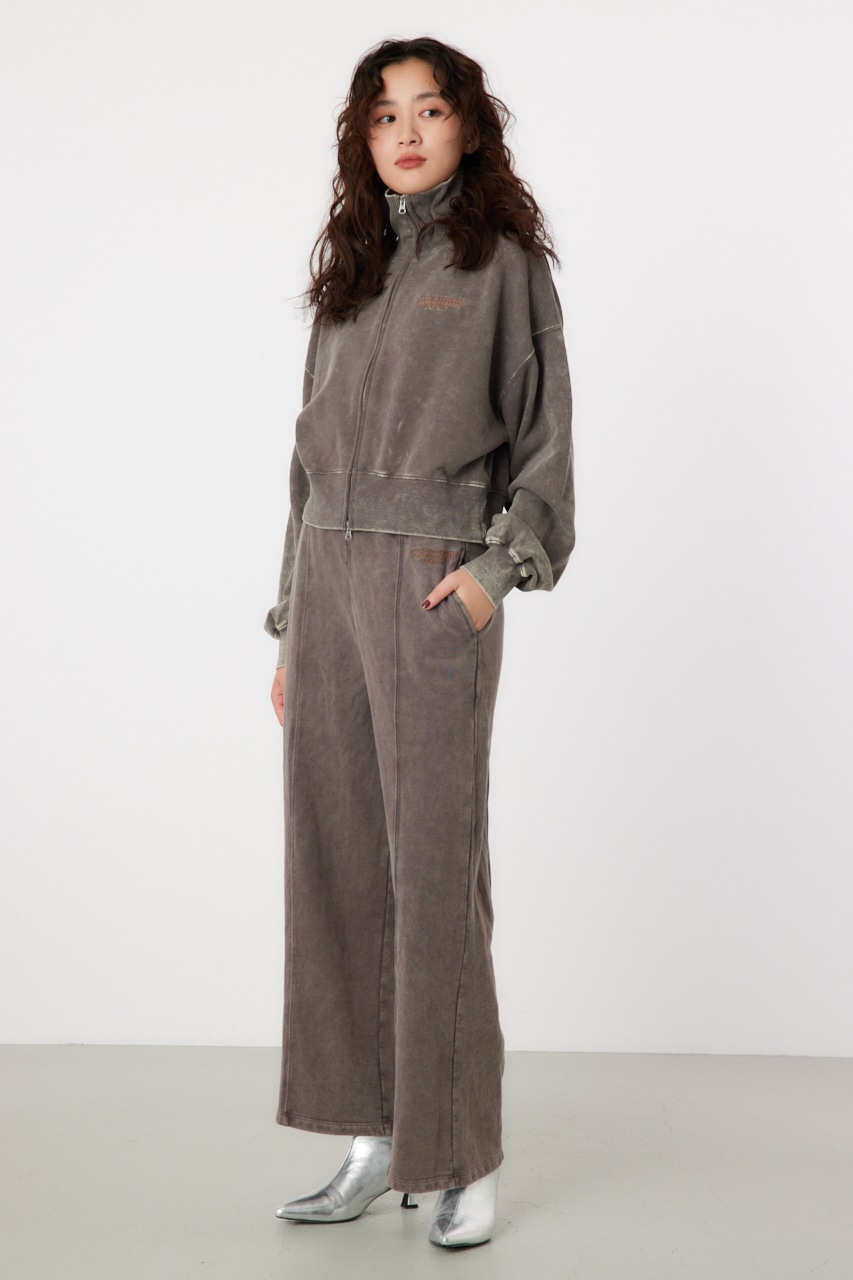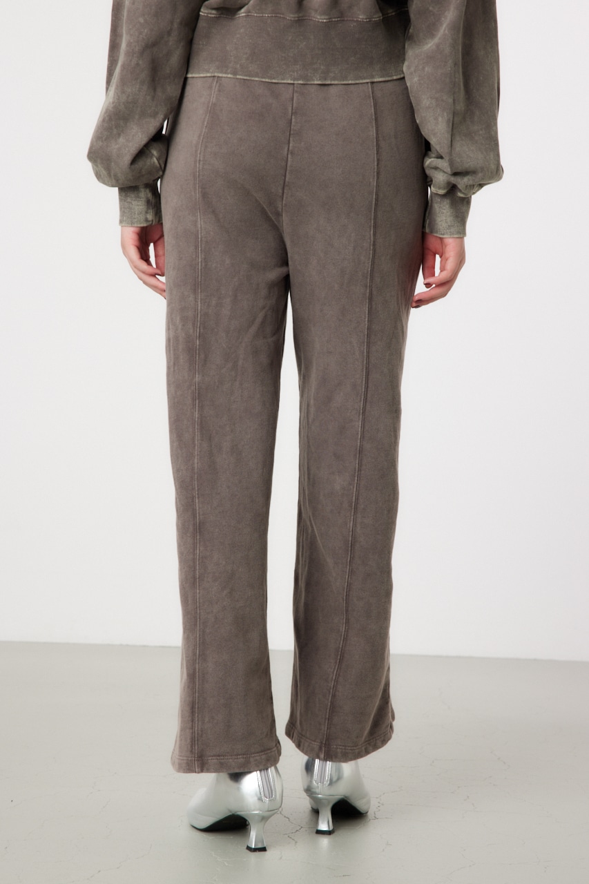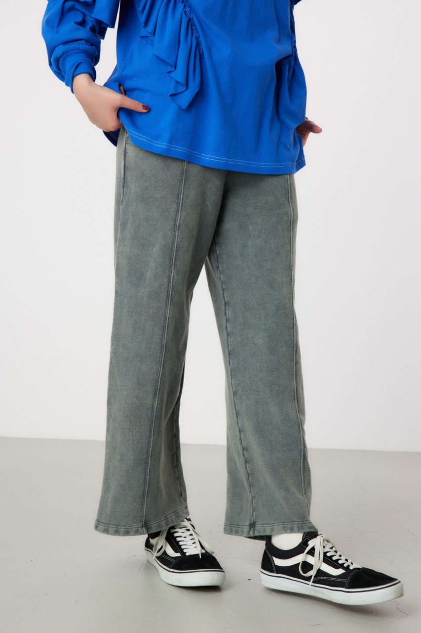 今季らしい加工のワイドパンツ。ウエストから裾口に向かって広がるワイドなシルエットがポイント。真直ぐに入った切替は、加工感だけではなく、綺麗な足のラインを演出してくれます。厚すぎない生地なので、着太りせずに長いシーズン着用できるアイテムです。