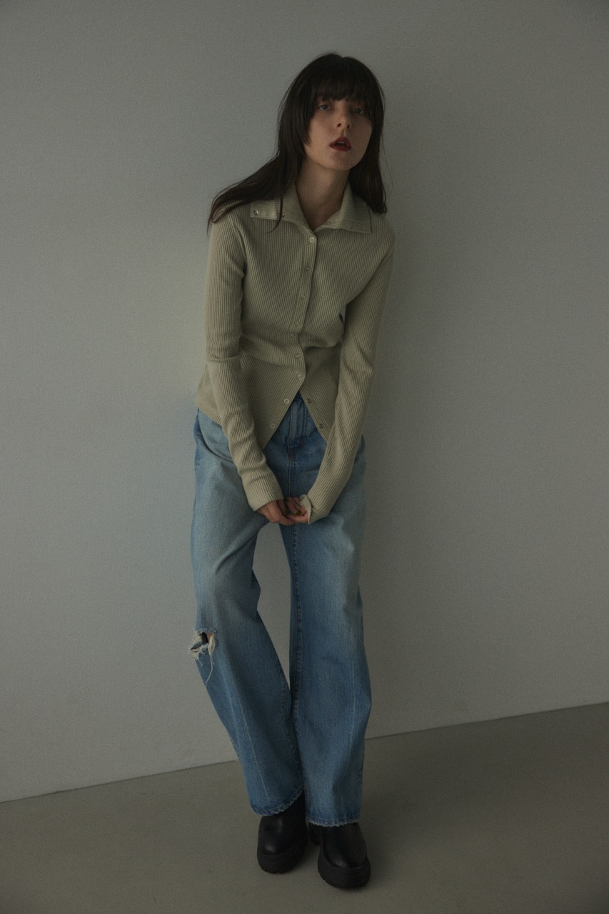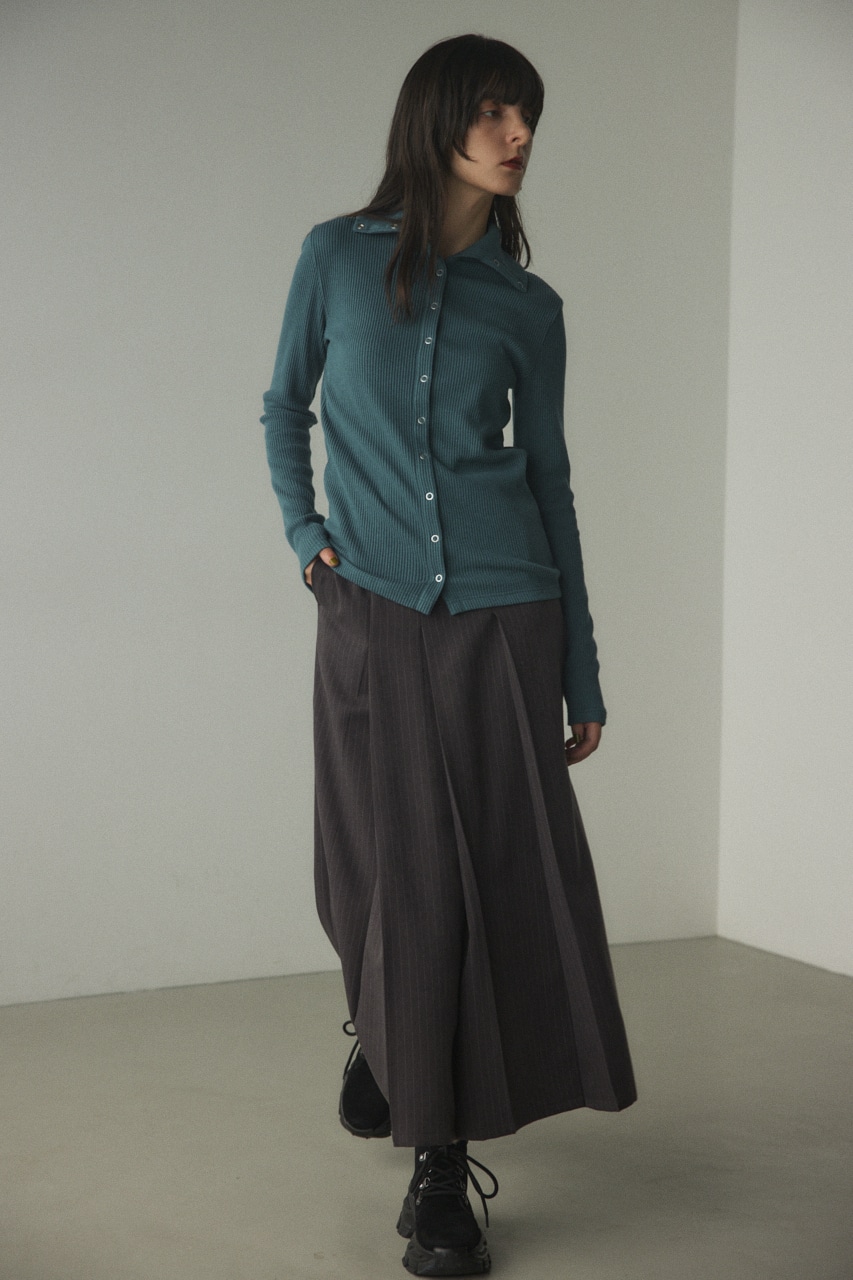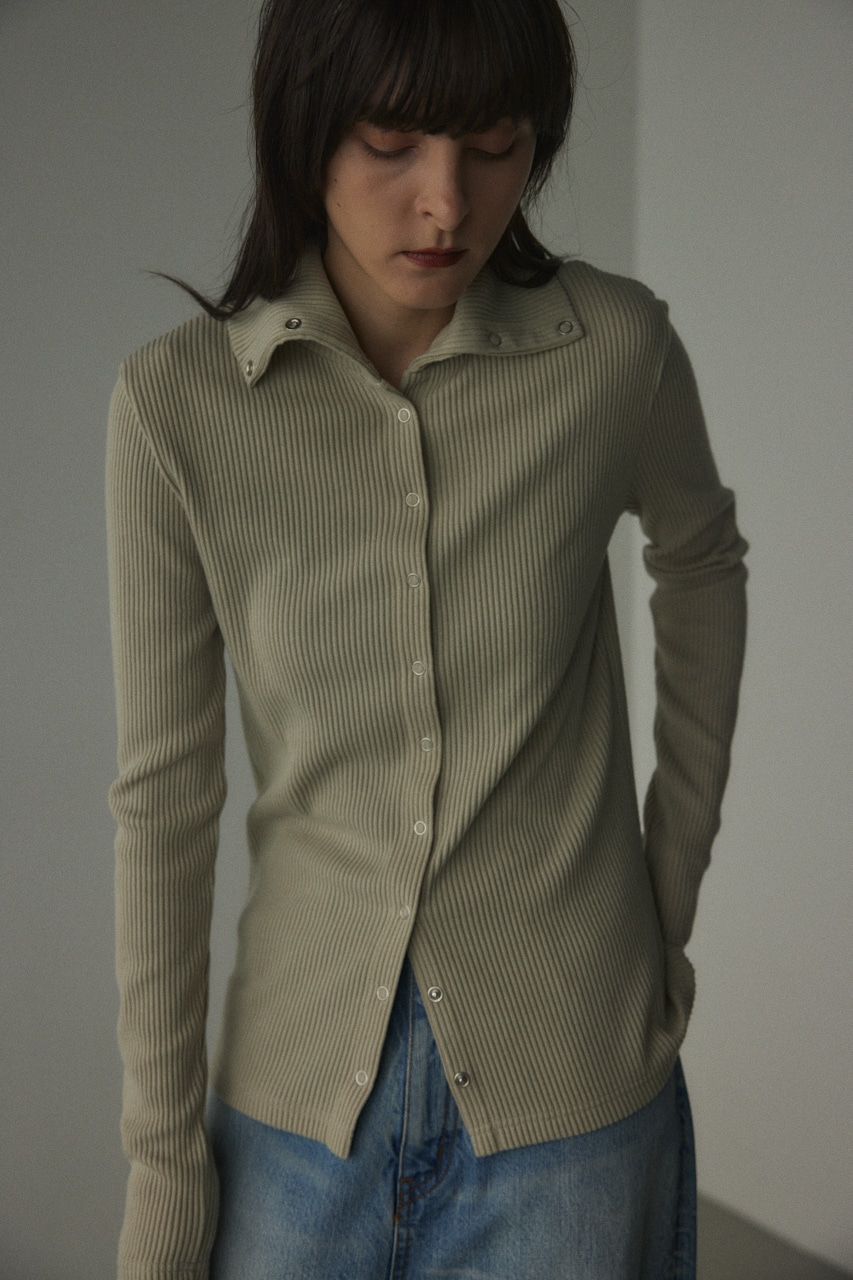 ボタンを開ける位置次第で、色々な着こなしも楽しめるおすすめアイテム。