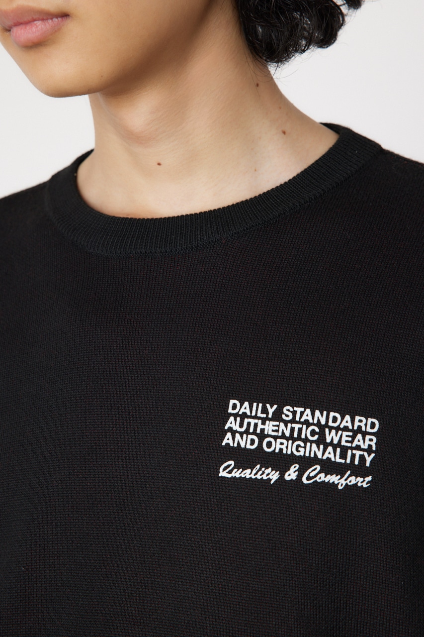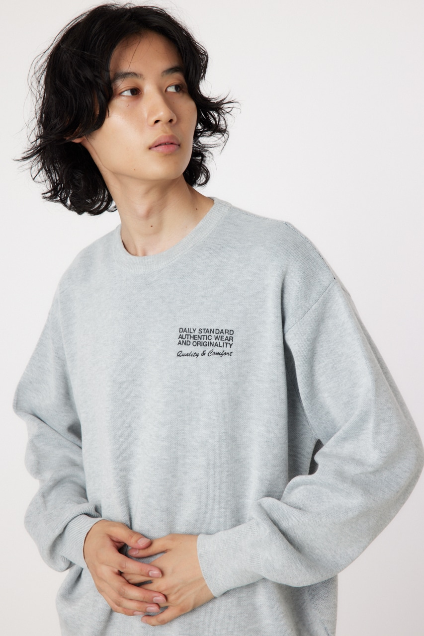 レーシングアイテムをイメージし、ニットでアレンジしたトップス。ブランドオリジナルのスウェット型に、ジャガードで表現したキャッチーなロゴがポイント。