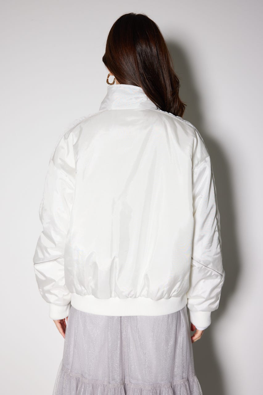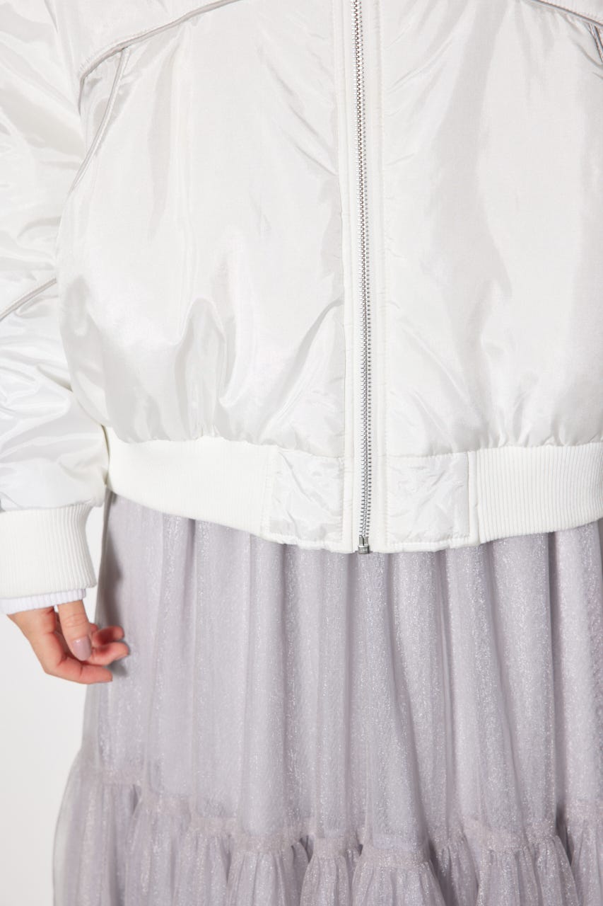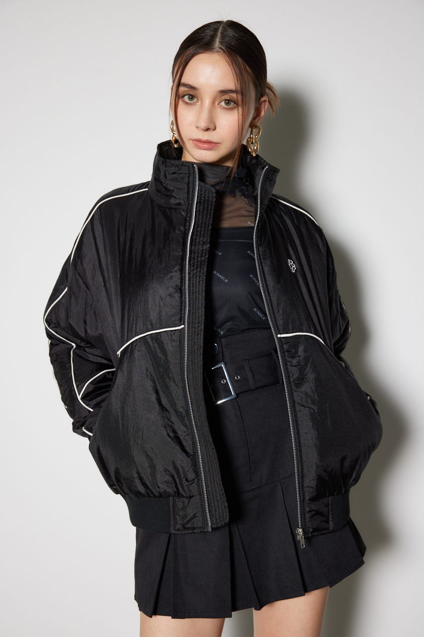 ナイロン素材でスポーツミックススタイルを楽しめる1着。