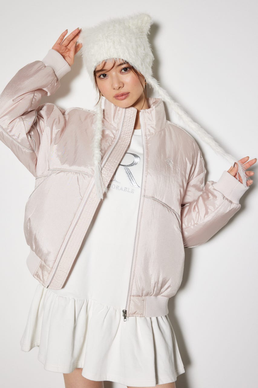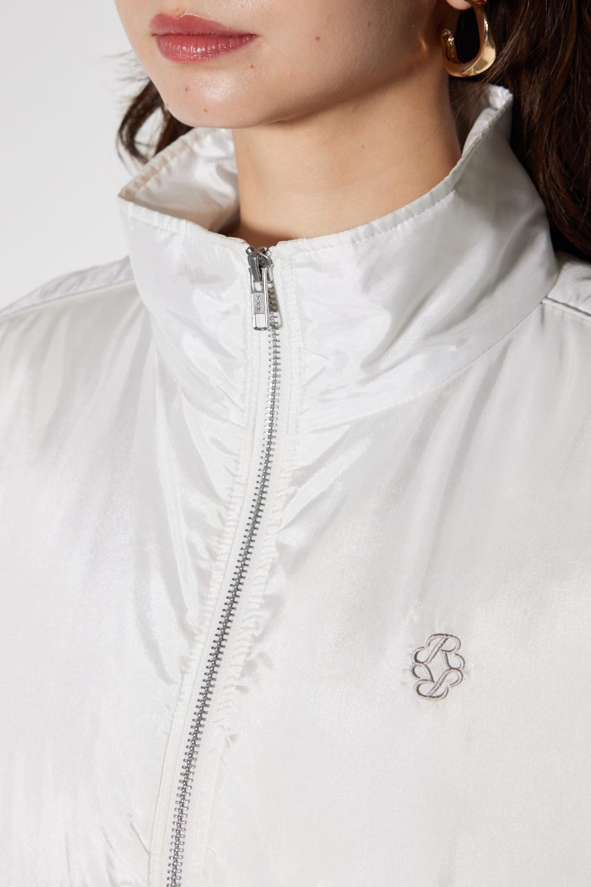 高めの首元でお洒落にも、防寒にも◎。胸元には「R」でフラワーモチーフのロゴをデザイン。