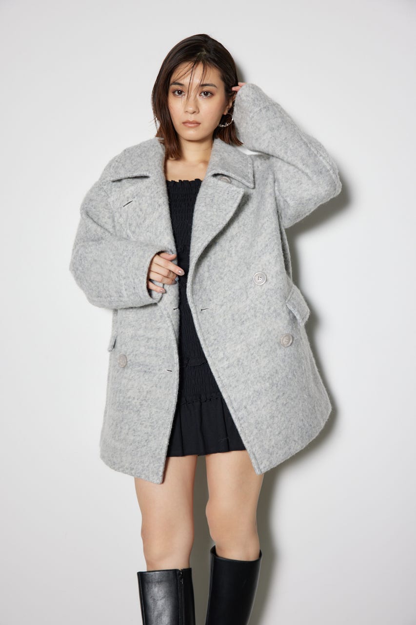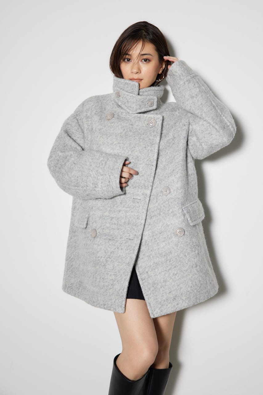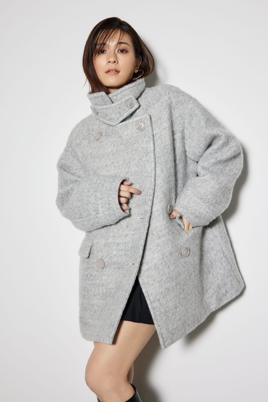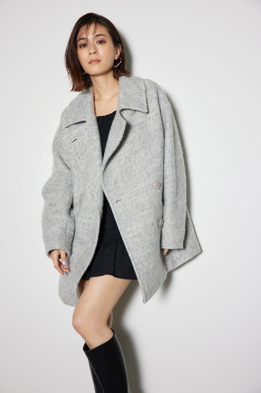【メニーウェイが叶うゆったりシルエットが可愛らしいスライバー素材のピーコート】