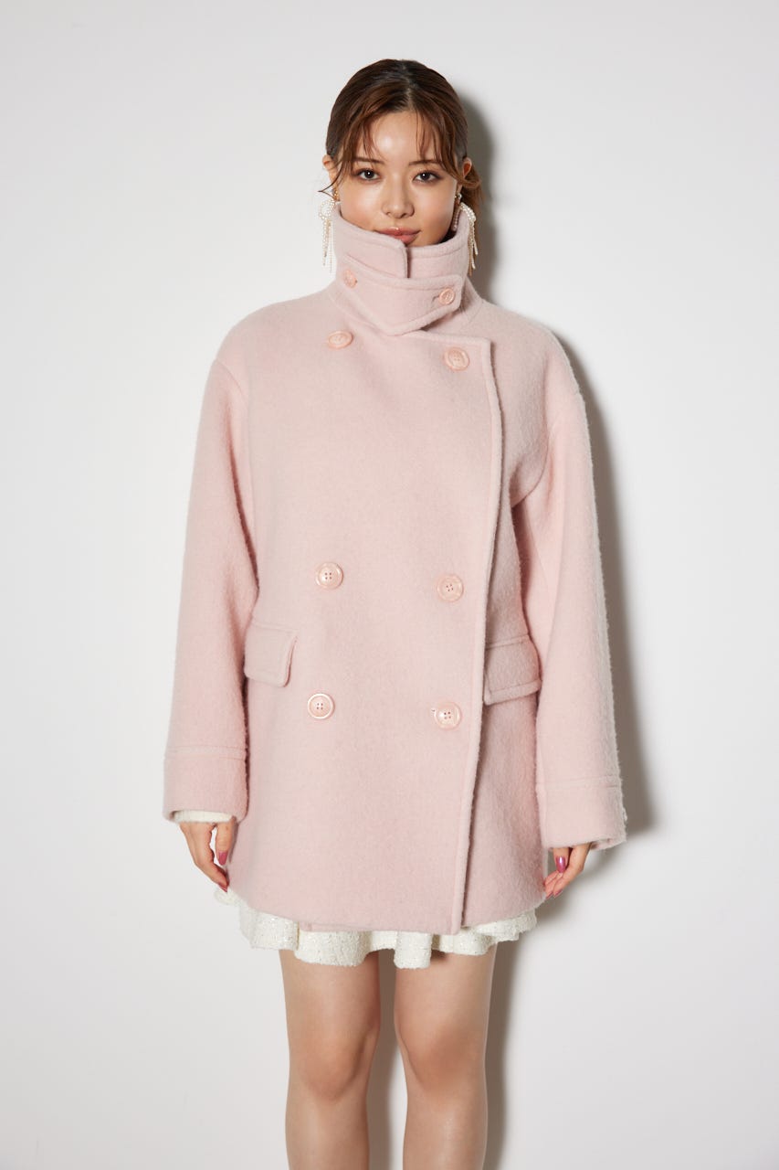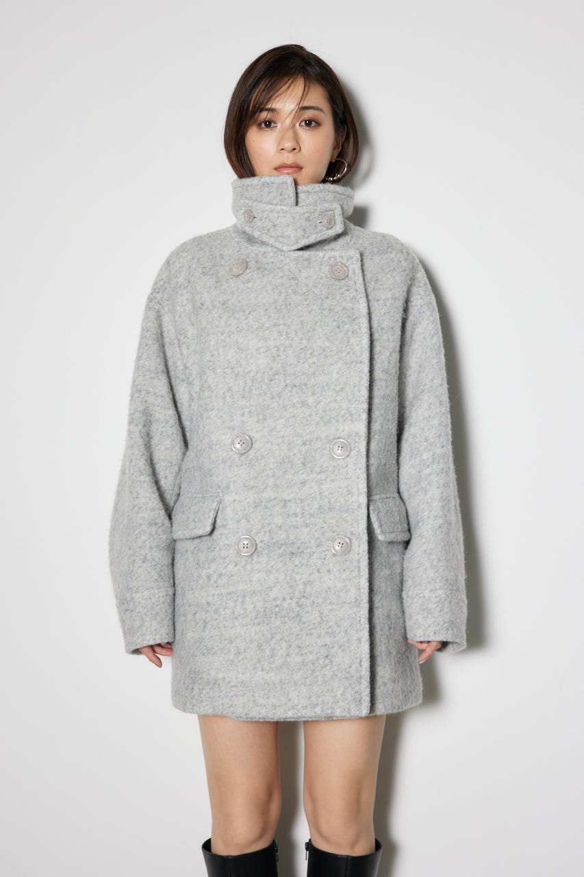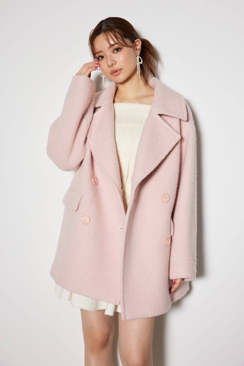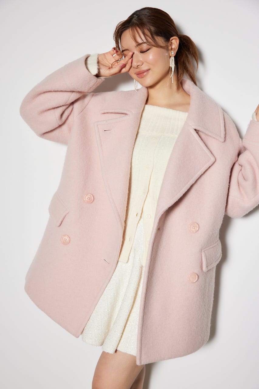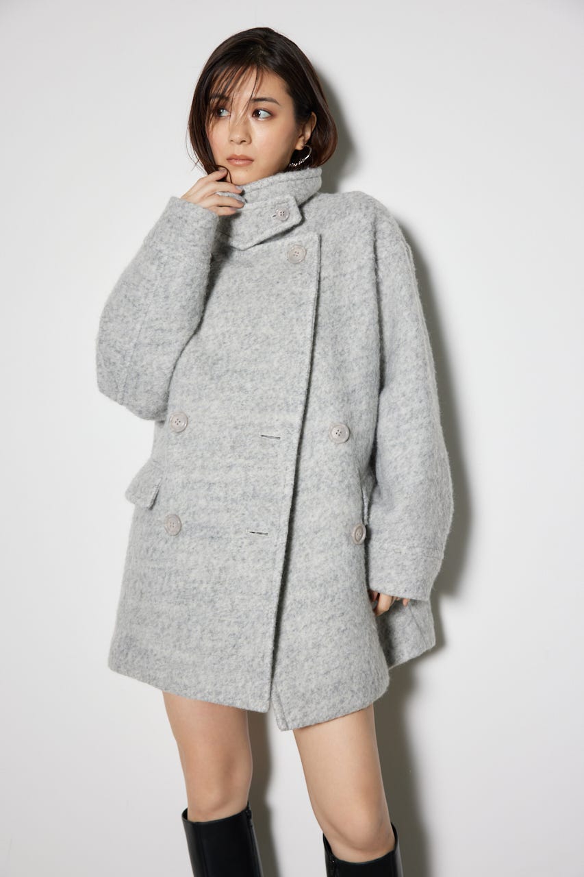 【メニーウェイが叶うゆったりシルエットが可愛らしいスライバー素材のピーコート】