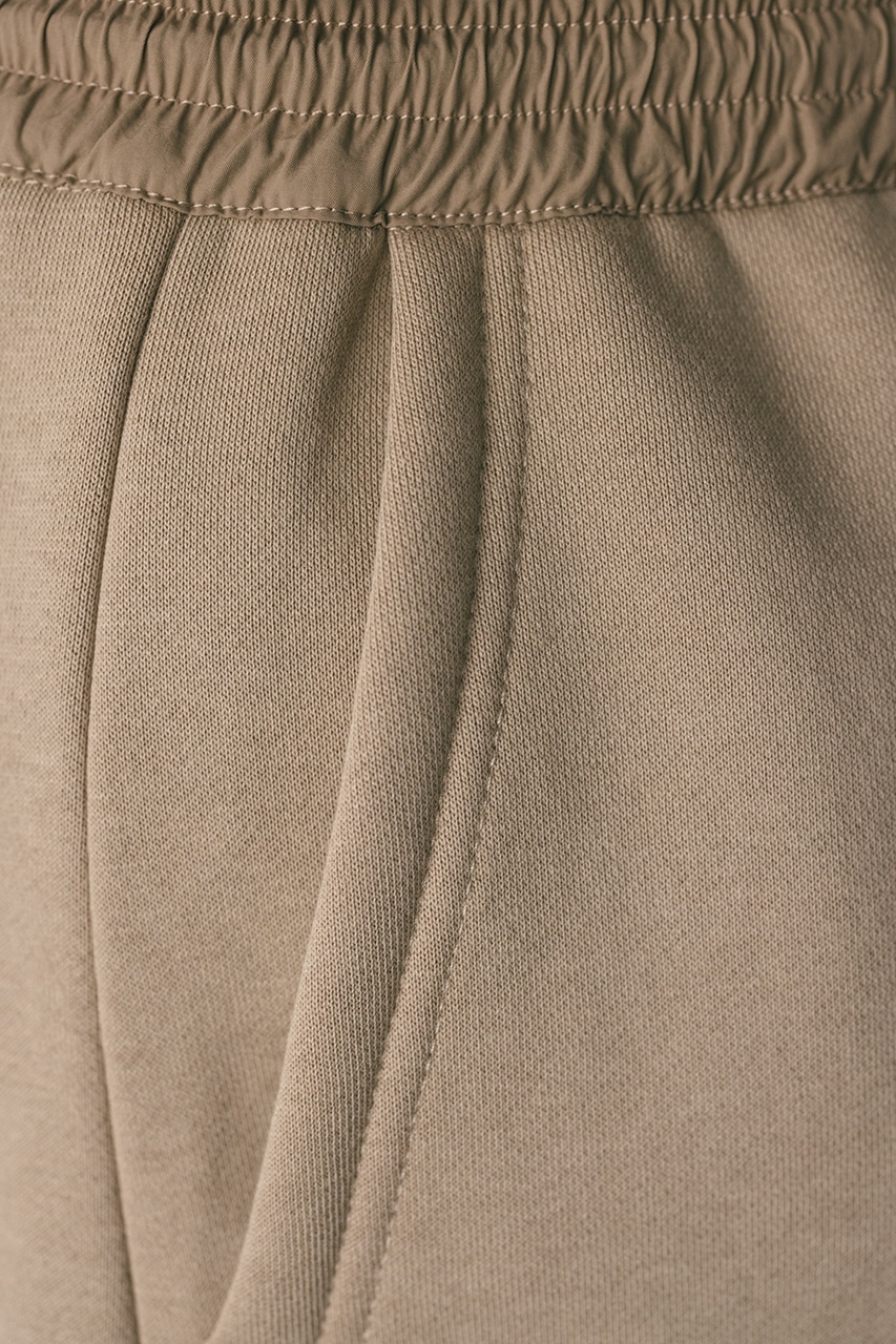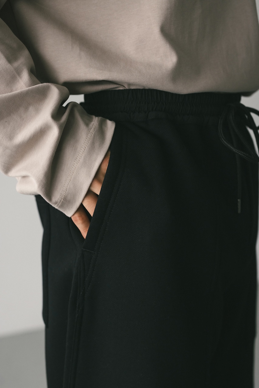 膝、裾上部分に入れたダーツでつくるバルーンシルエットがポイントのスウェットパンツ。