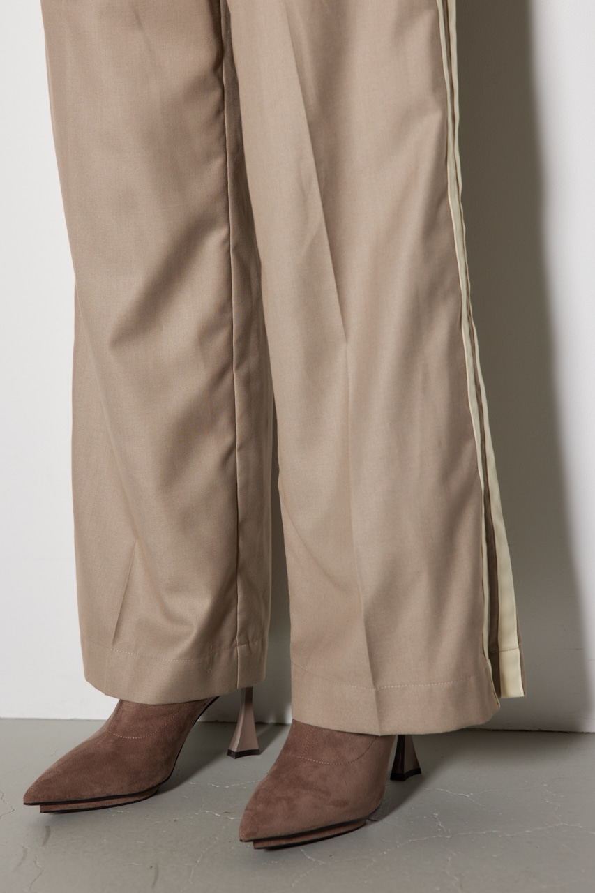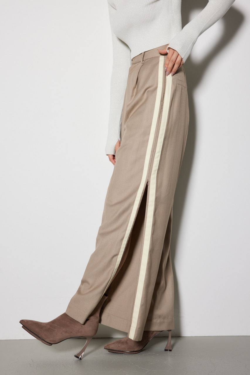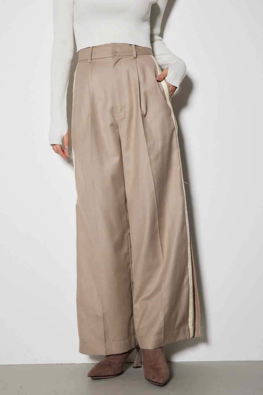 【サイドのダブルラインがポイントのワイドなパンツ】