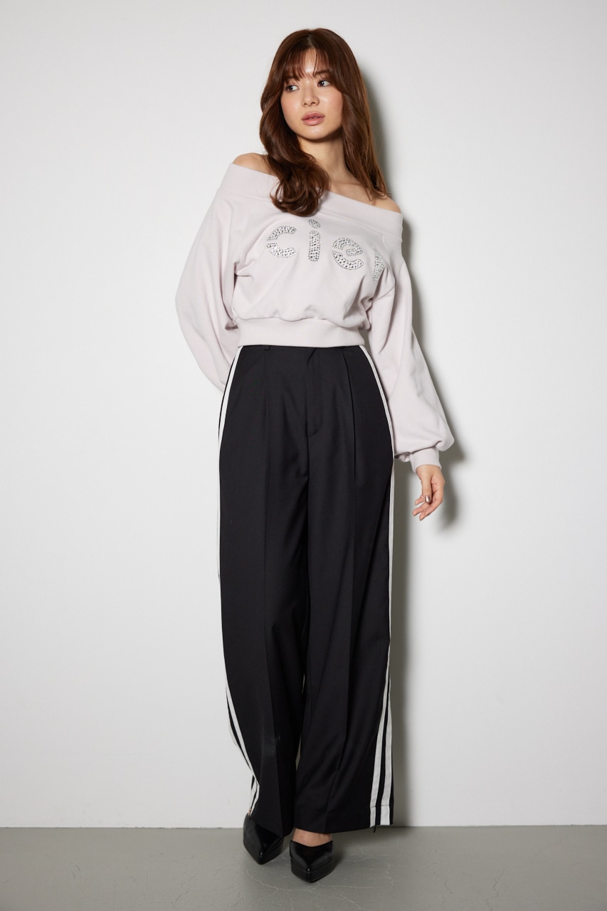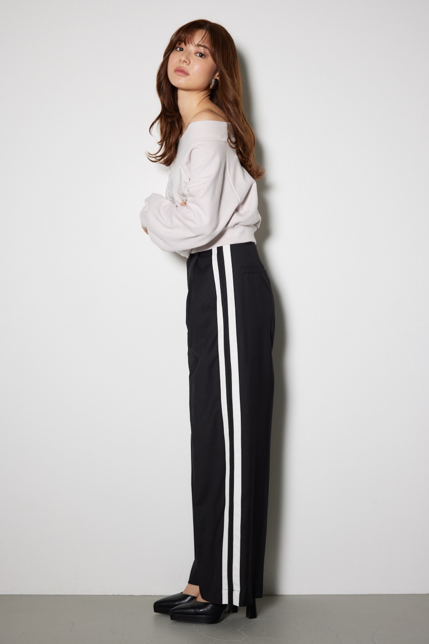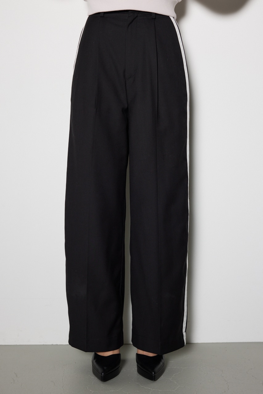 【サイドのダブルラインがポイントのワイドなパンツ】