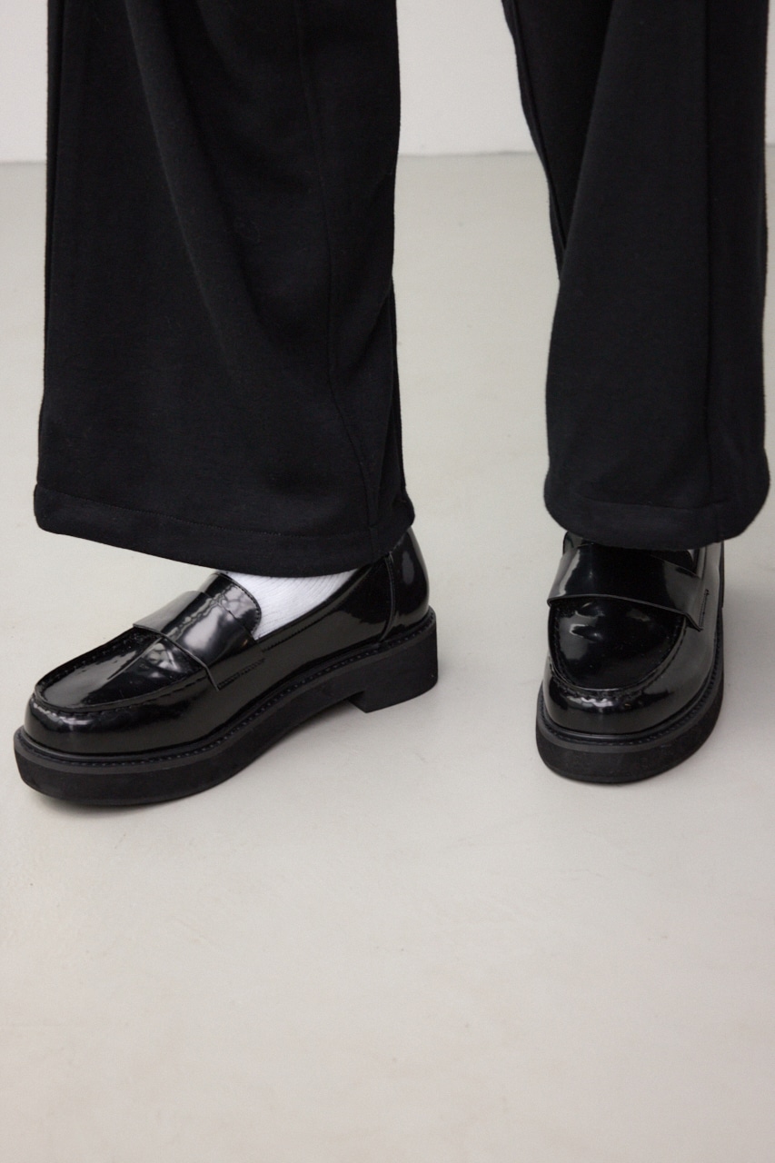 ■素 材:光沢のある硝子レザー風合成皮革のアッパーを採用、カチッとした風合いの合皮です。