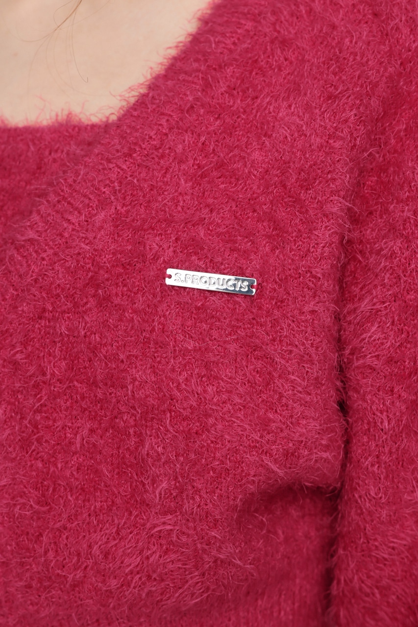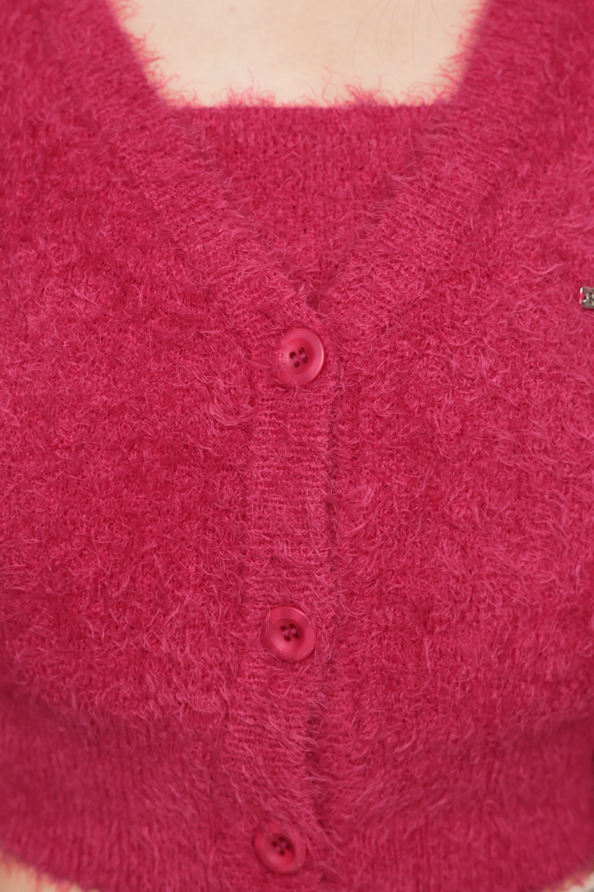 ■POINT:表面感のあるシャギー素材を使用したVネックニットカーディガン。