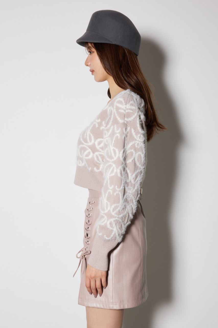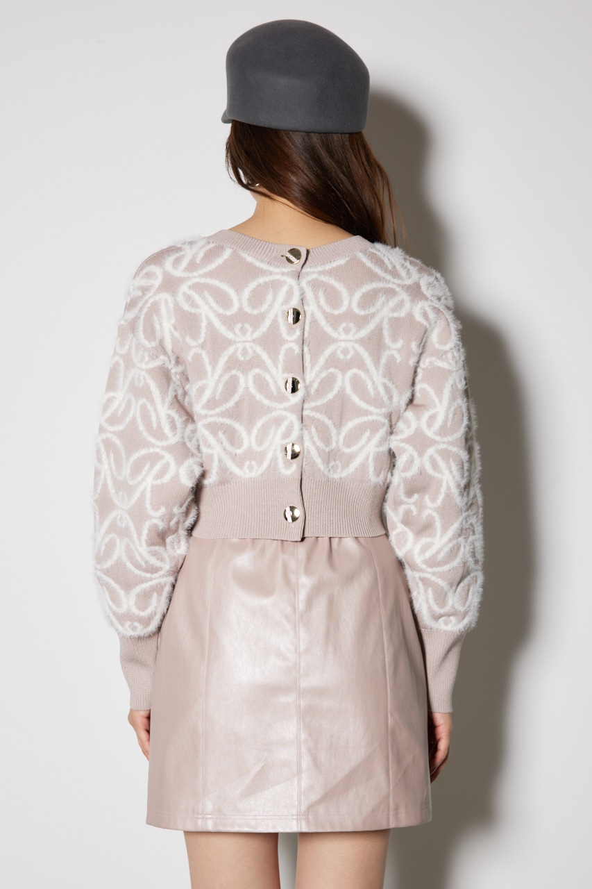 【様々な着用ができ1枚で主役になるロゴでデザインされたニュアンスフラワー柄のニットカーディガン】