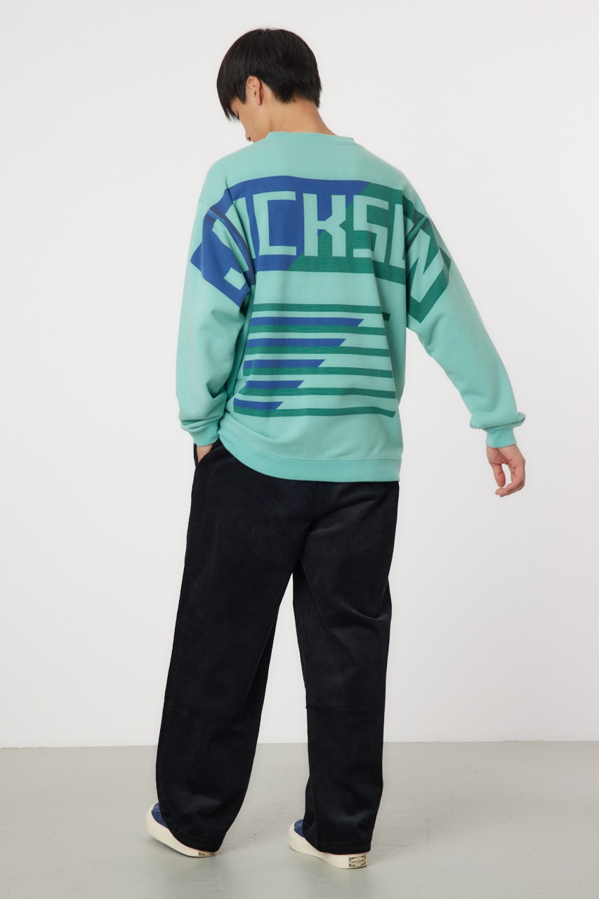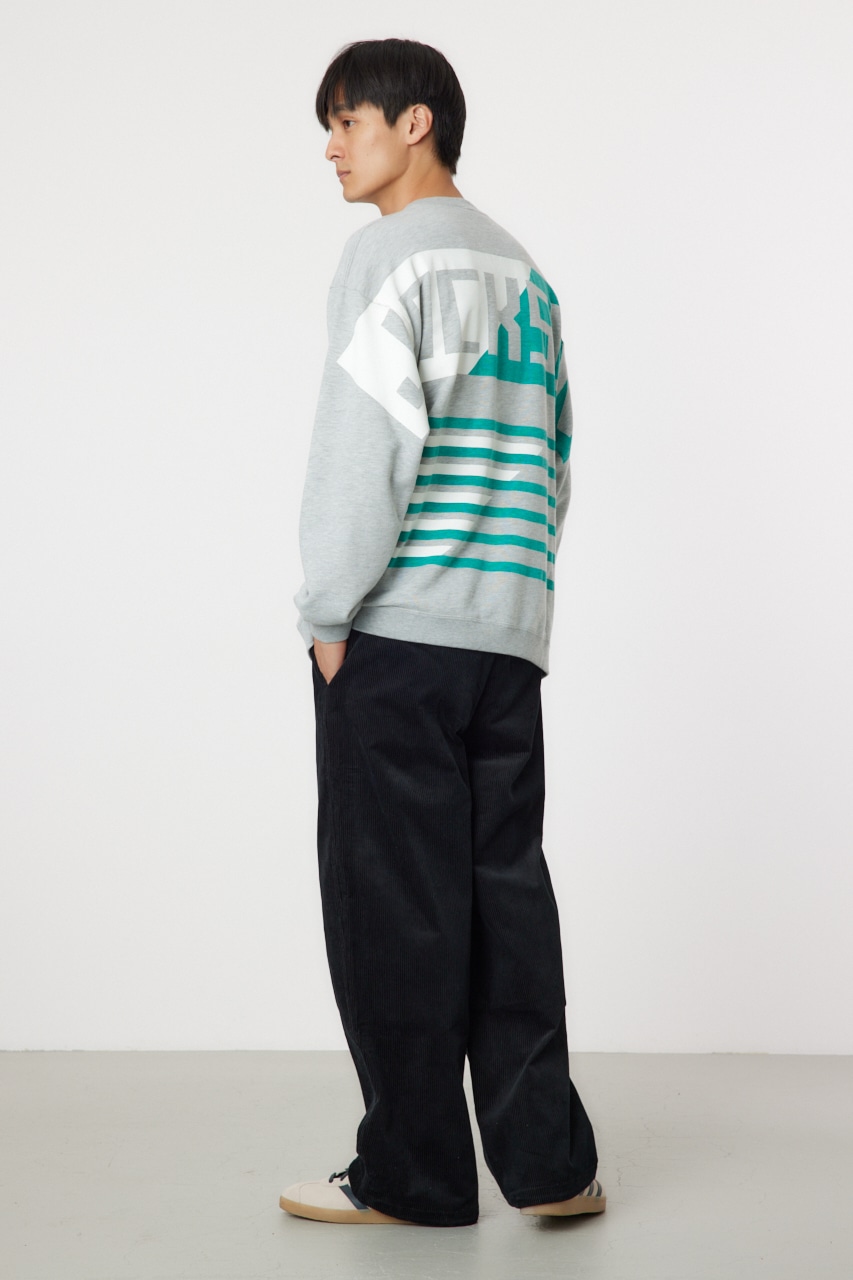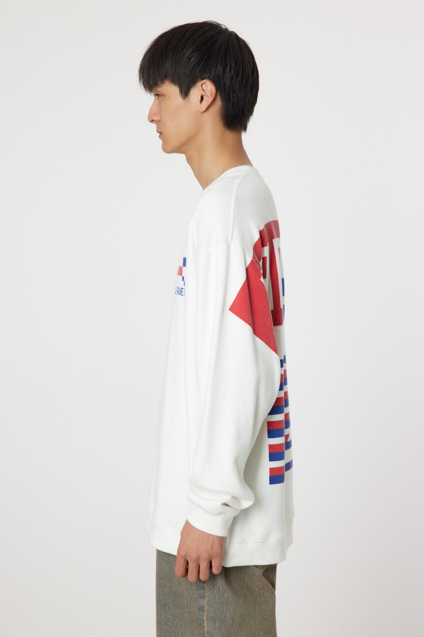 80'sのヴィンテージをイメージした大胆なグラフィックが目を惹くスウェット。製品加工により微起毛させた風合いもポイント。