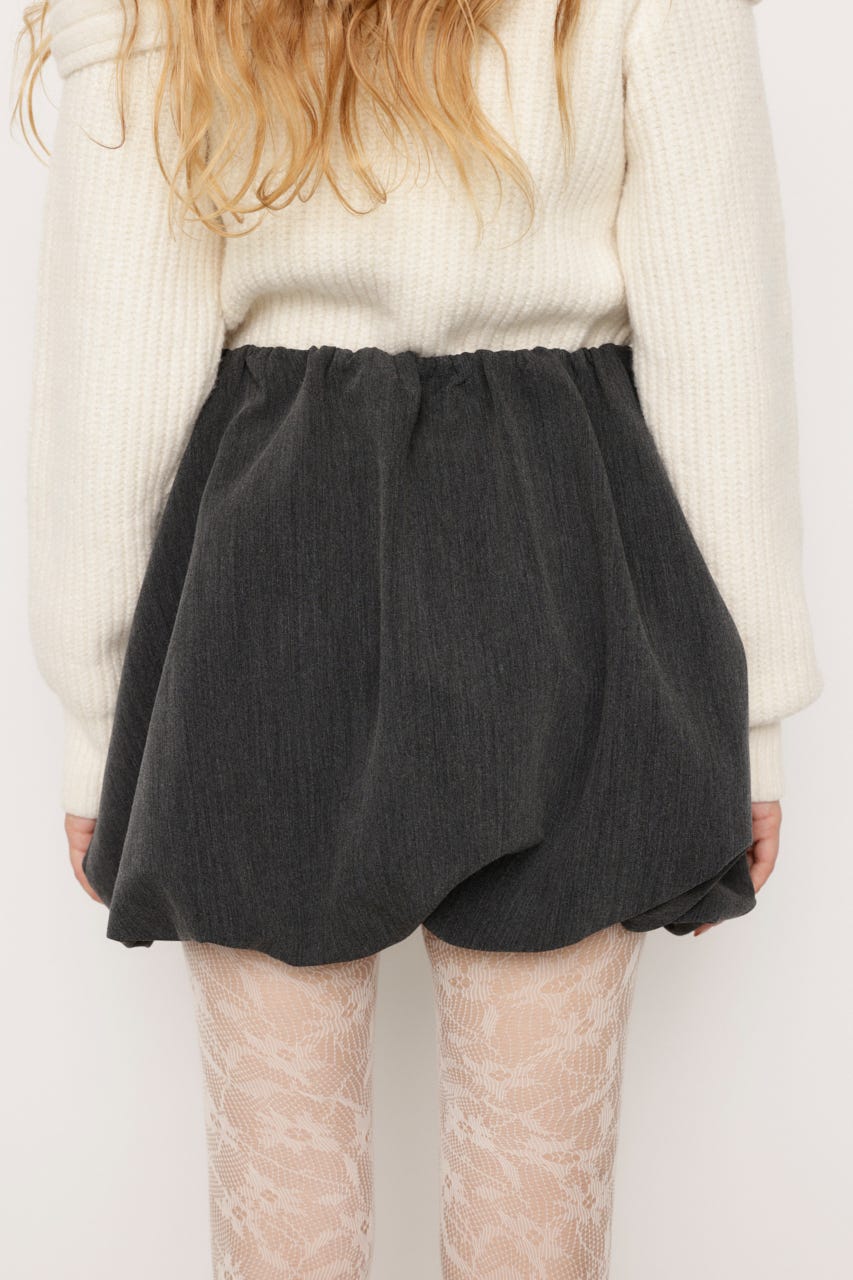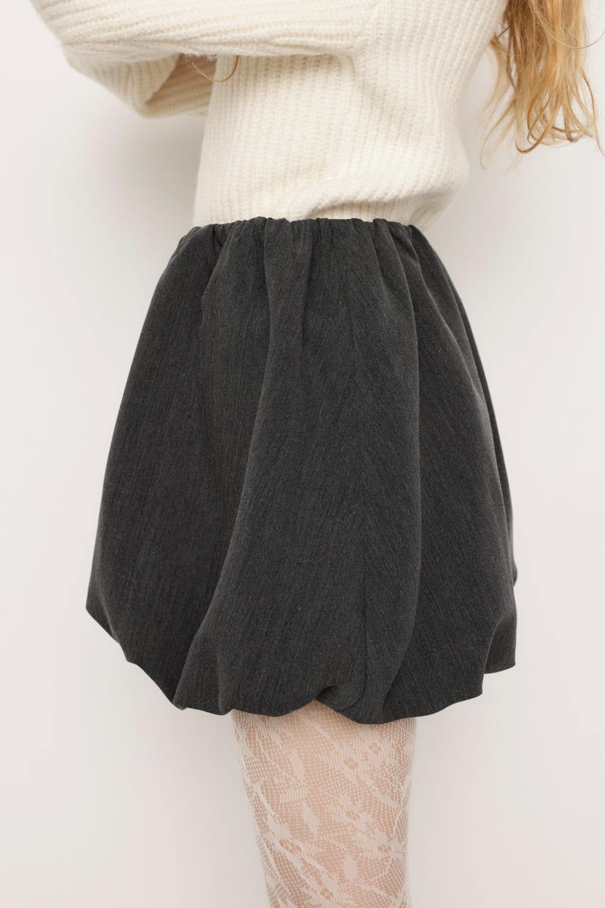 ■POINT:モデルとして活躍するミチを起用して作成されたコラボレーション企画、待望の第3弾。程よいハリ感のある素材を活かし、ふんわり広がるシルエットが魅力のバルーンミニスカート。