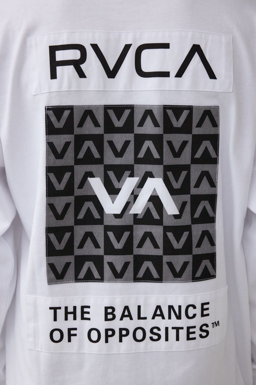 背面にRVCAロゴやVAロゴをプリントしたファブリックを3段でデザイン。