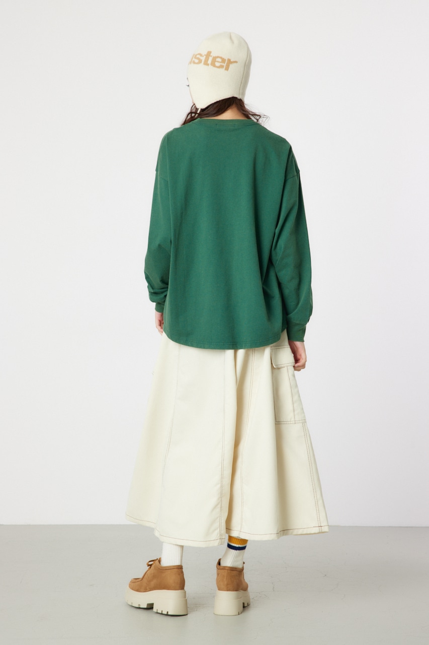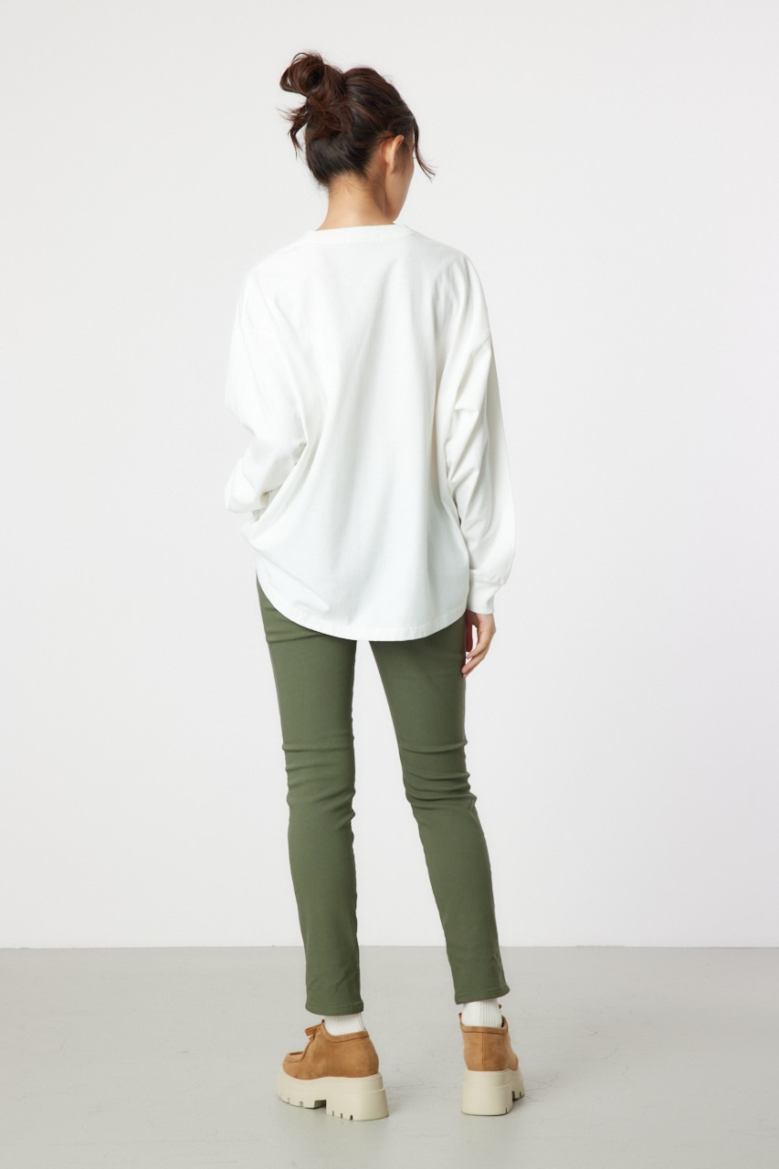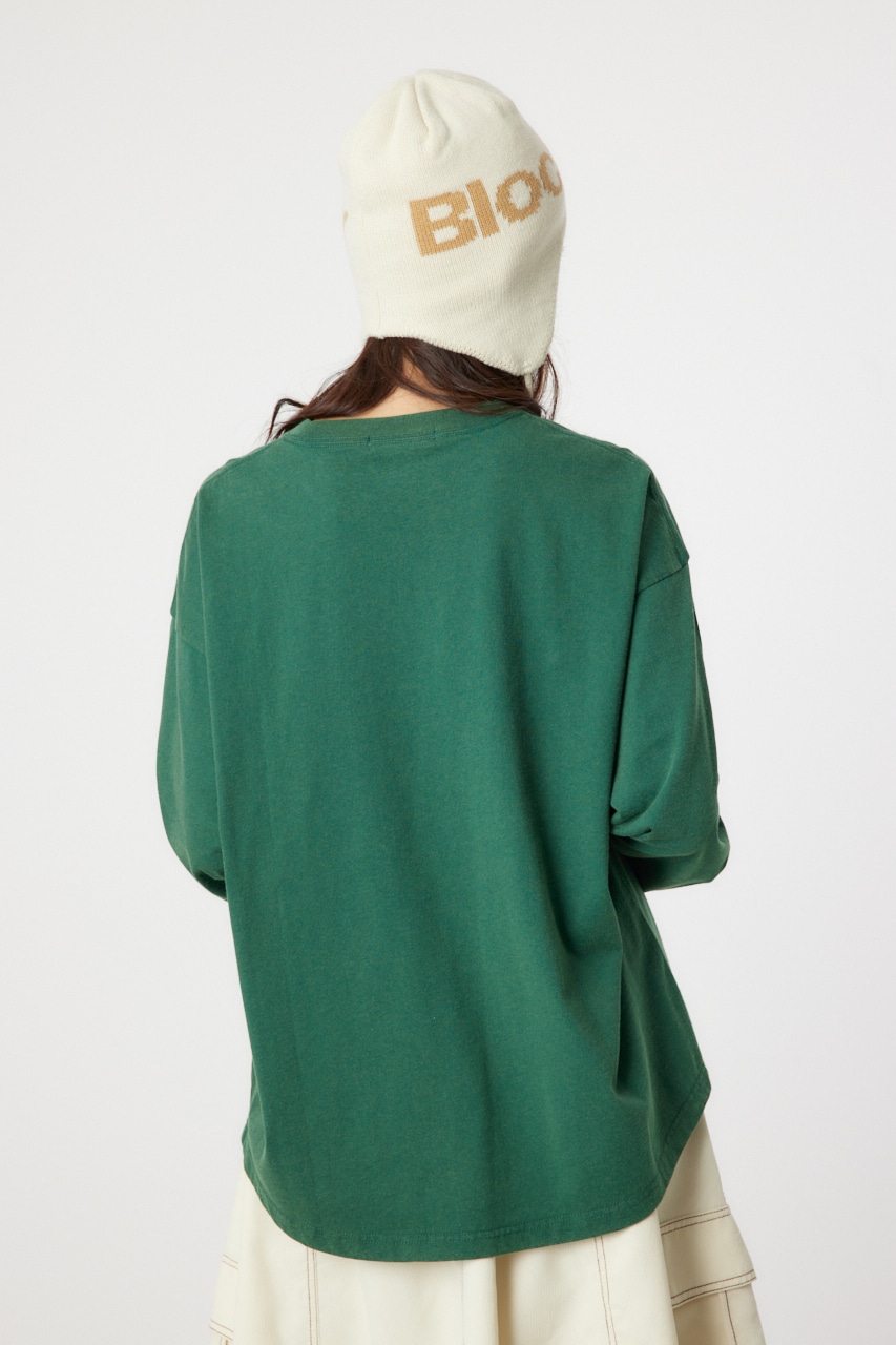 メンズライクなビッグボディーのロンT。今季のテーマをイメージした架空のフィルム制作会社をバンドT風の多色プリントで表現。今感をプラスした加工感に、ラメプリントを施したブランドらしいアイテムです。