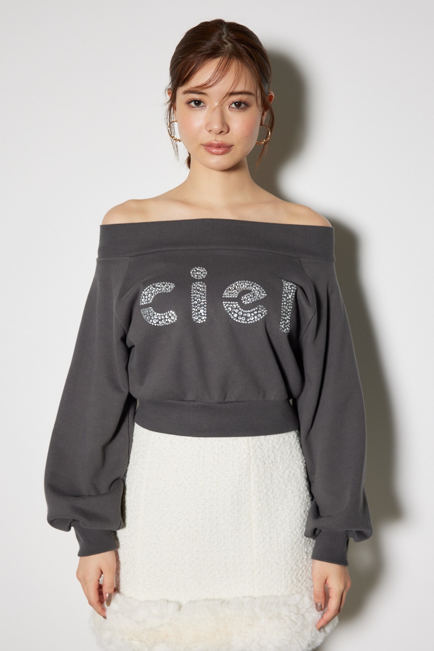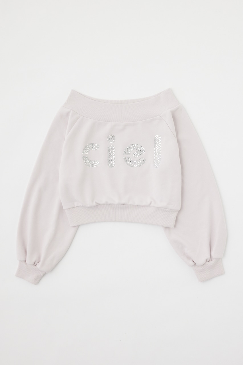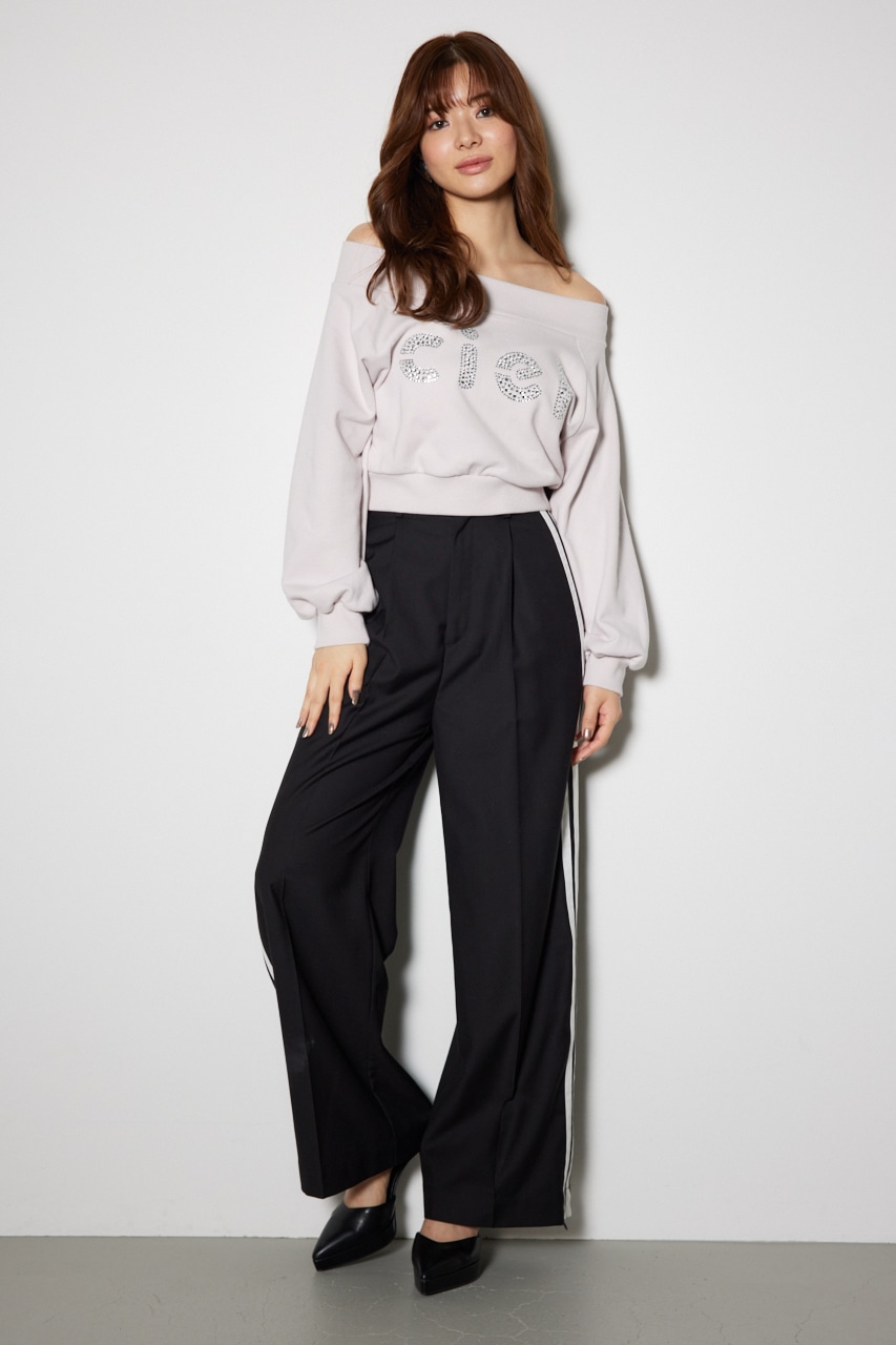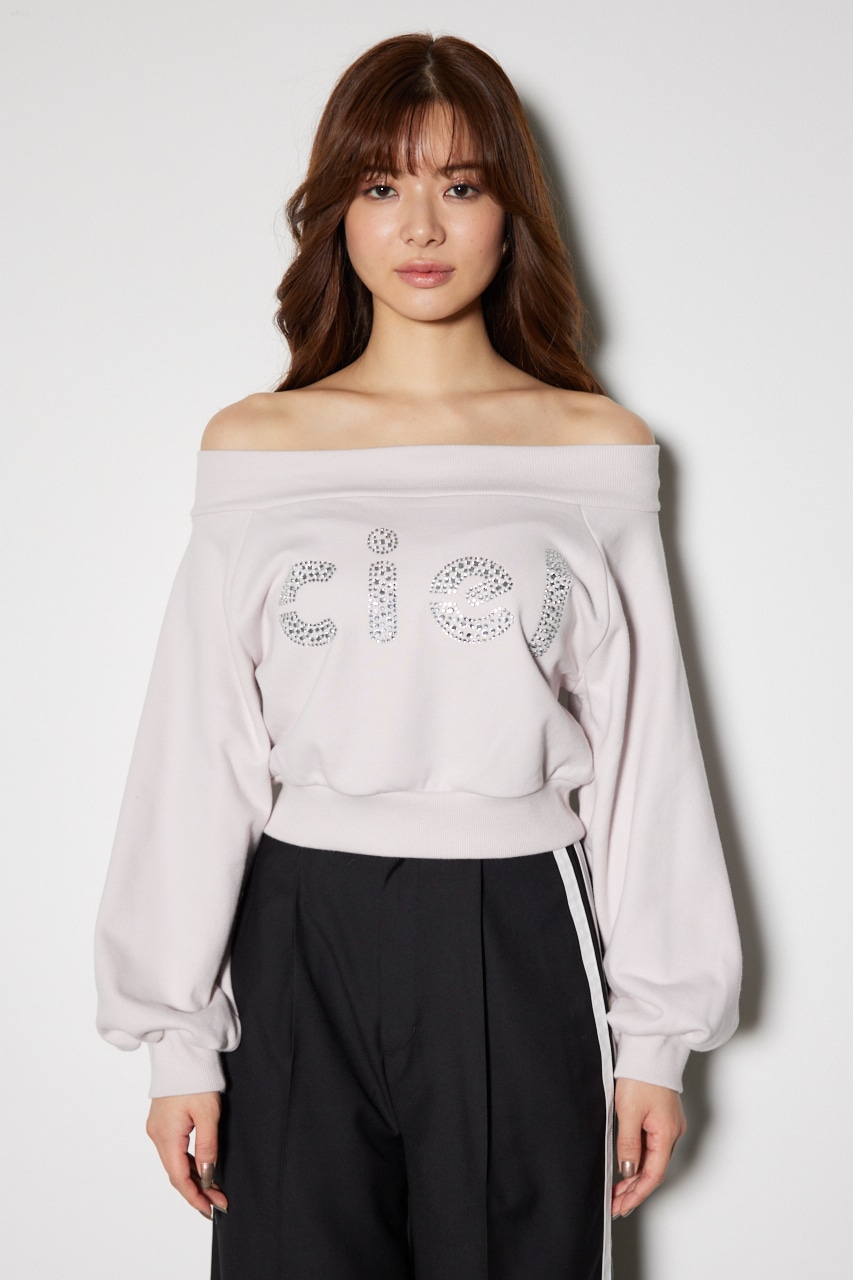 【オフショルデザインとビジューロゴでヘルシーかつ、華やかなカジュアルスウェット】