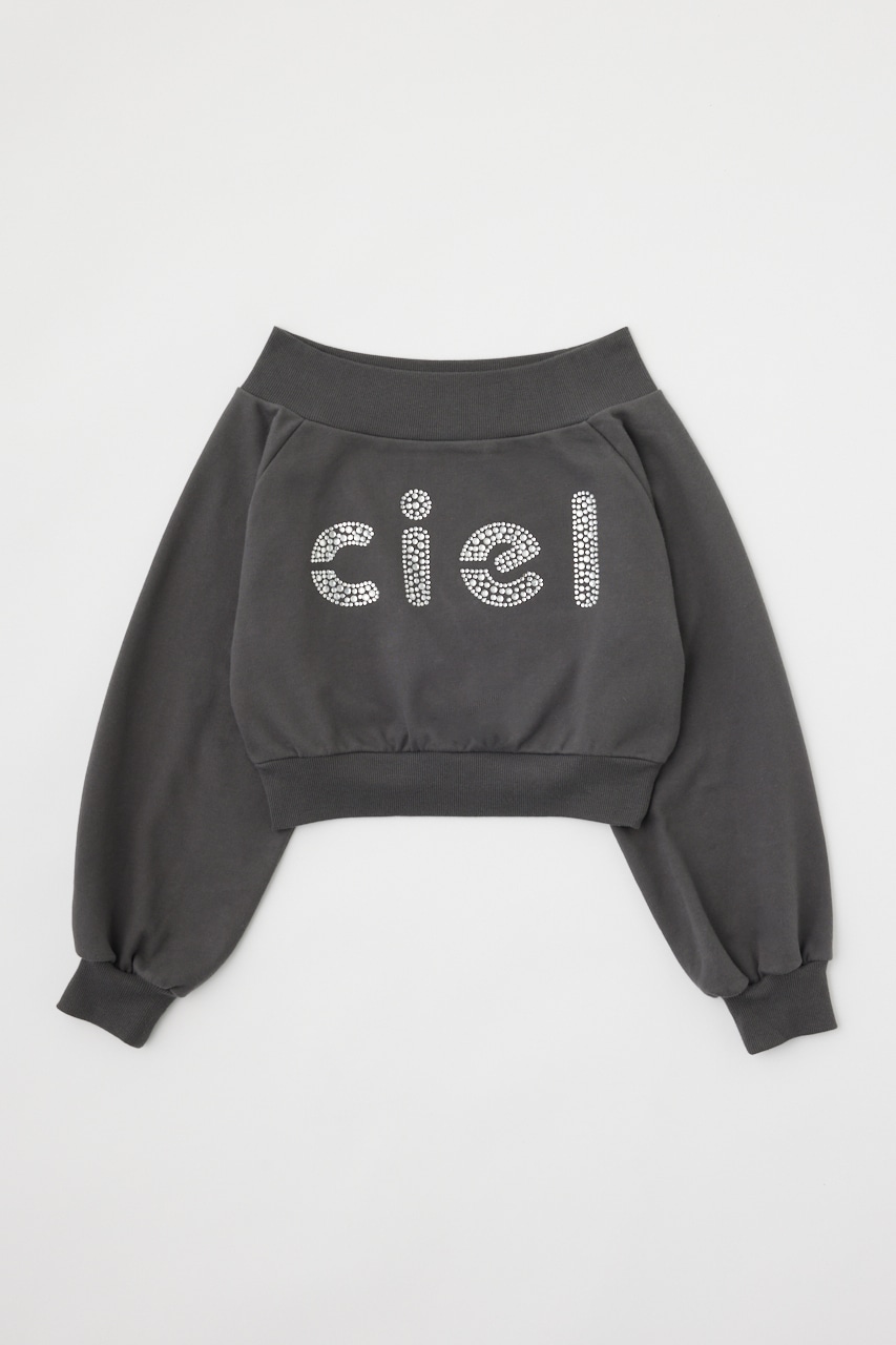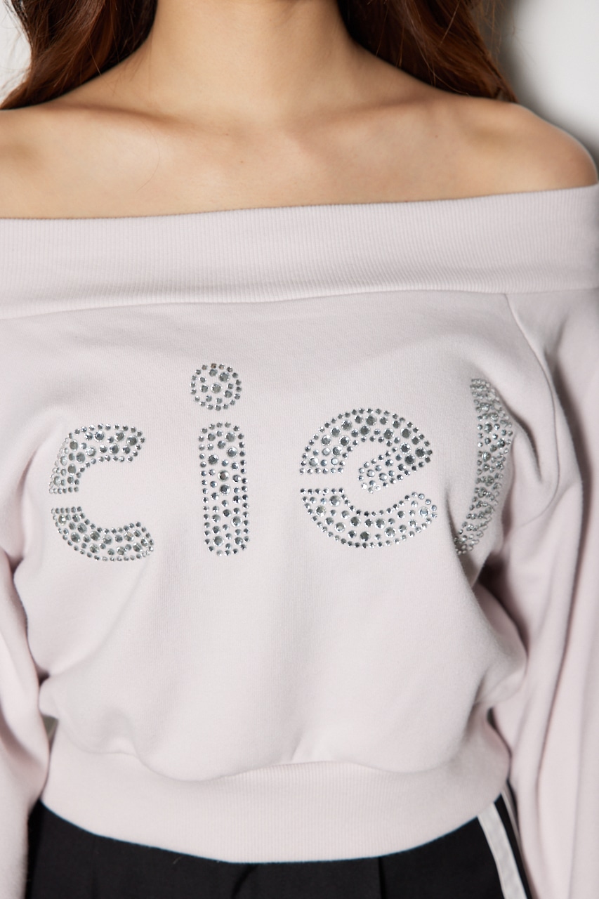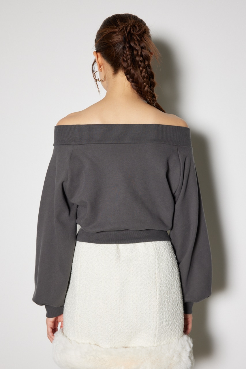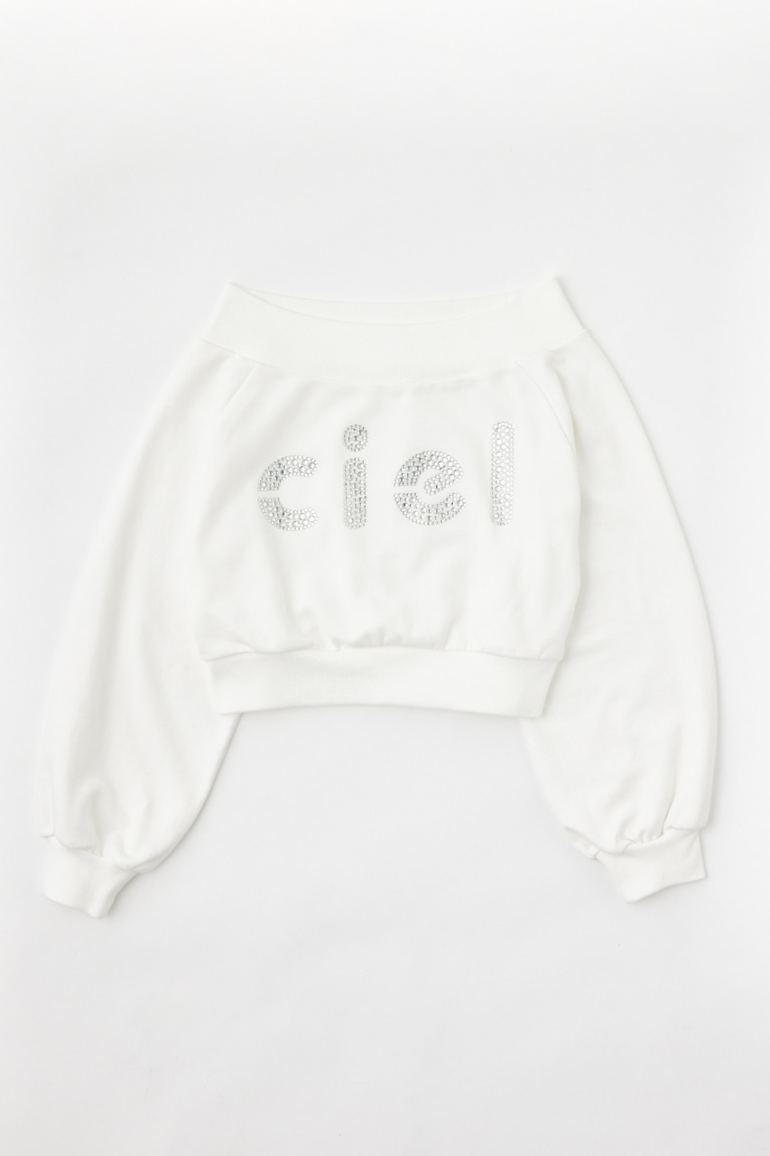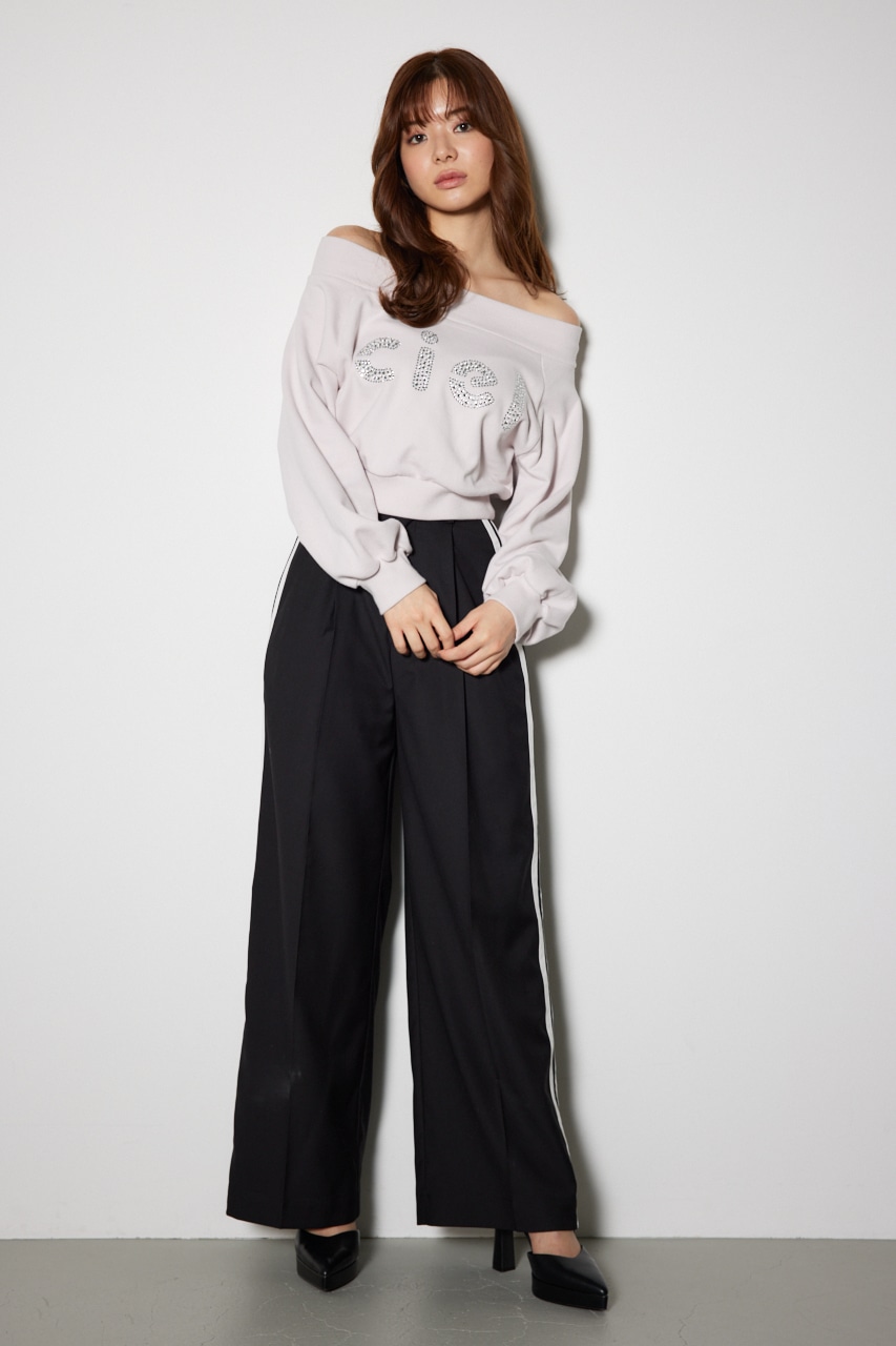 【オフショルデザインとビジューロゴでヘルシーかつ、華やかなカジュアルスウェット】