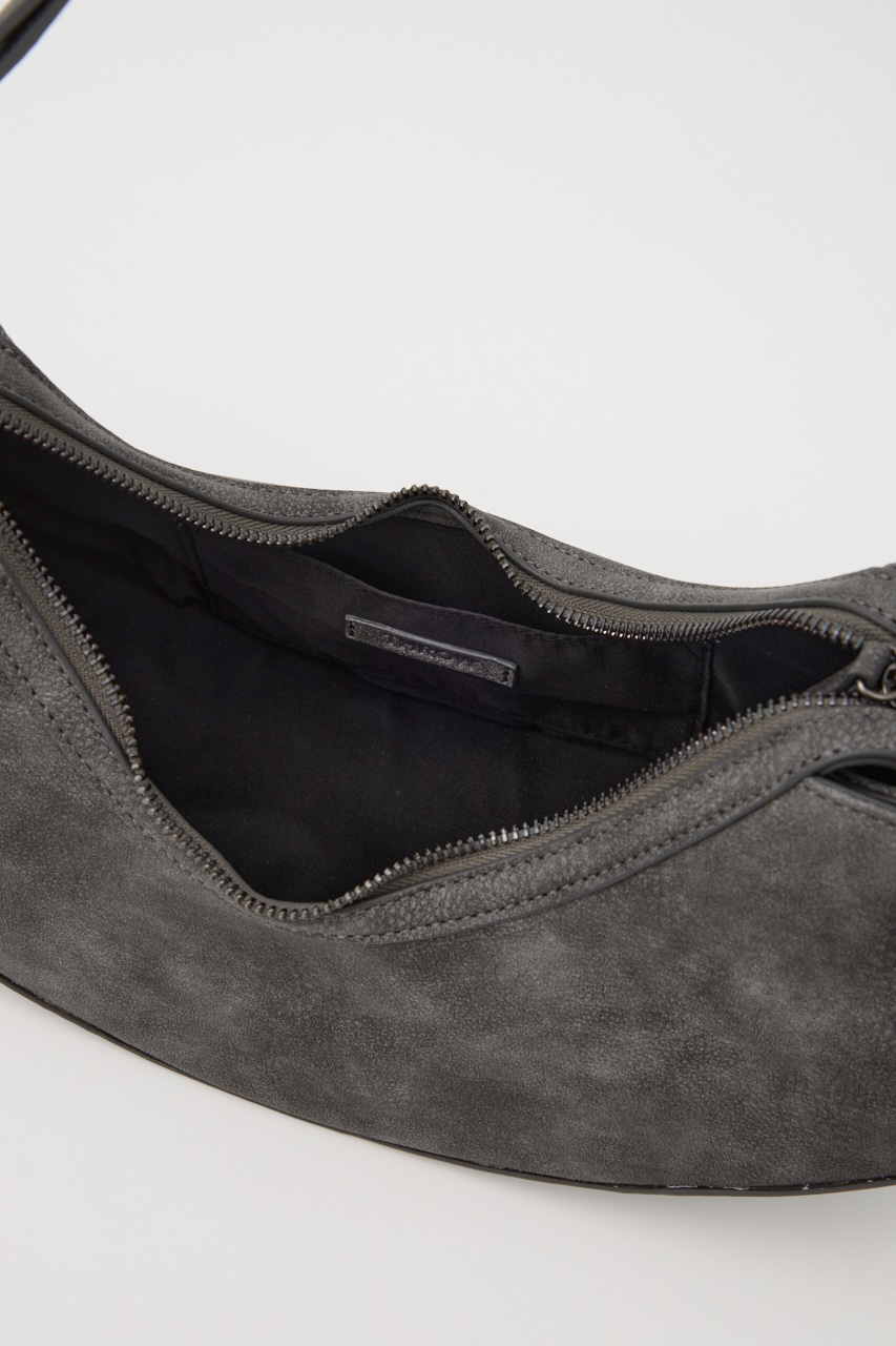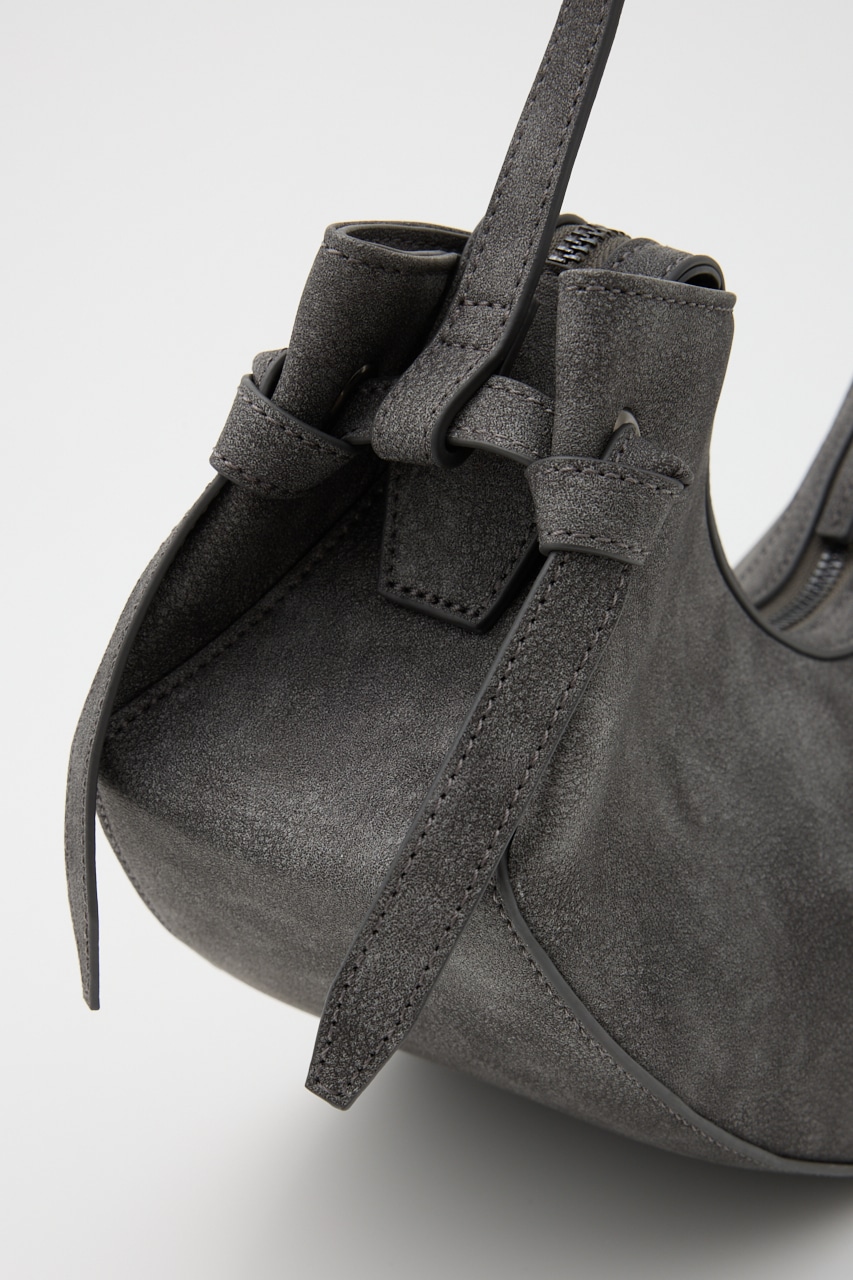 ■POINT:ころんとした丸いシルエットがポイントのセミサークルショルダーバッグ。両サイドの結びストラップもポイント。