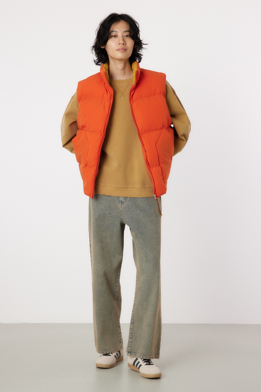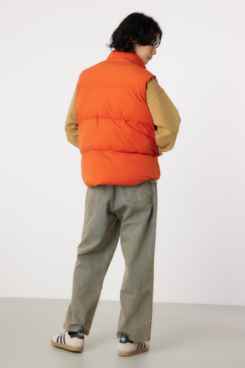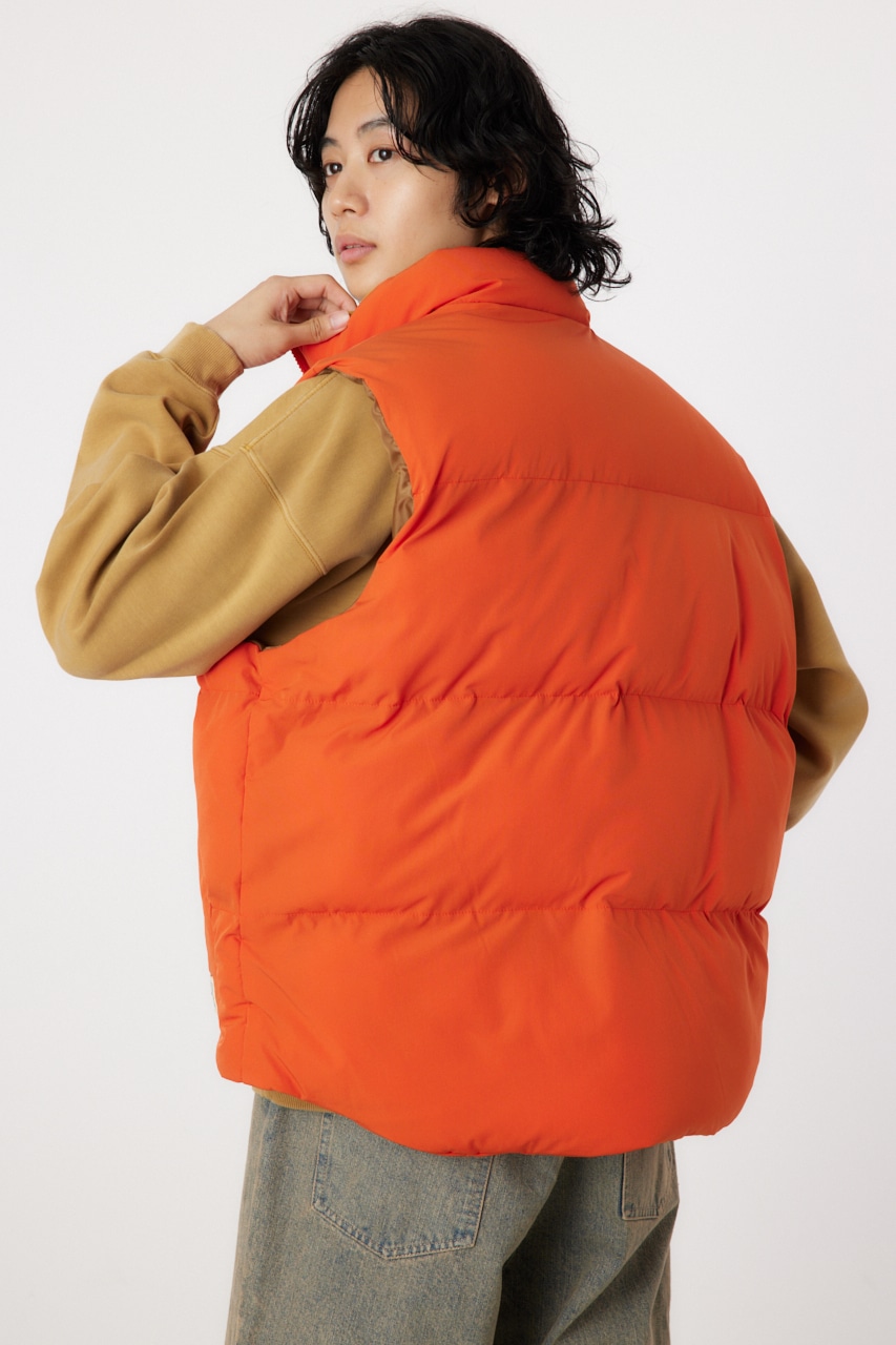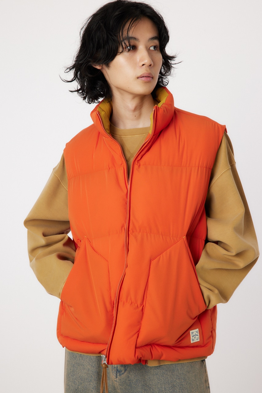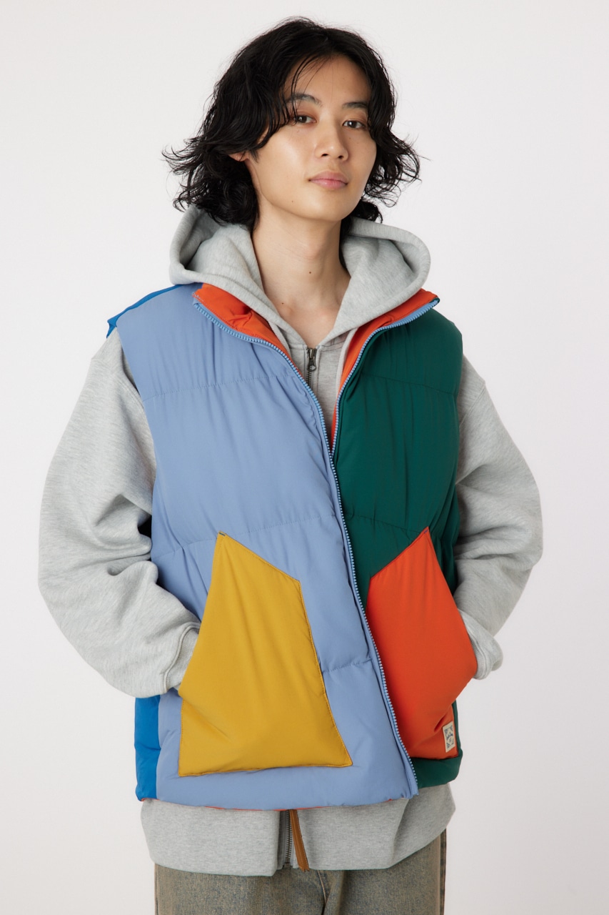 80?90年代の古着をモチーフにしたスタンドネックの中綿ベスト。どこか懐かしいカラーリングがポイントです。スタンドカラーで首元まで暖かいのが嬉しいアイテム。裾部分にゴムを施すことで、防風対策&保温効果の両方を叶えました。