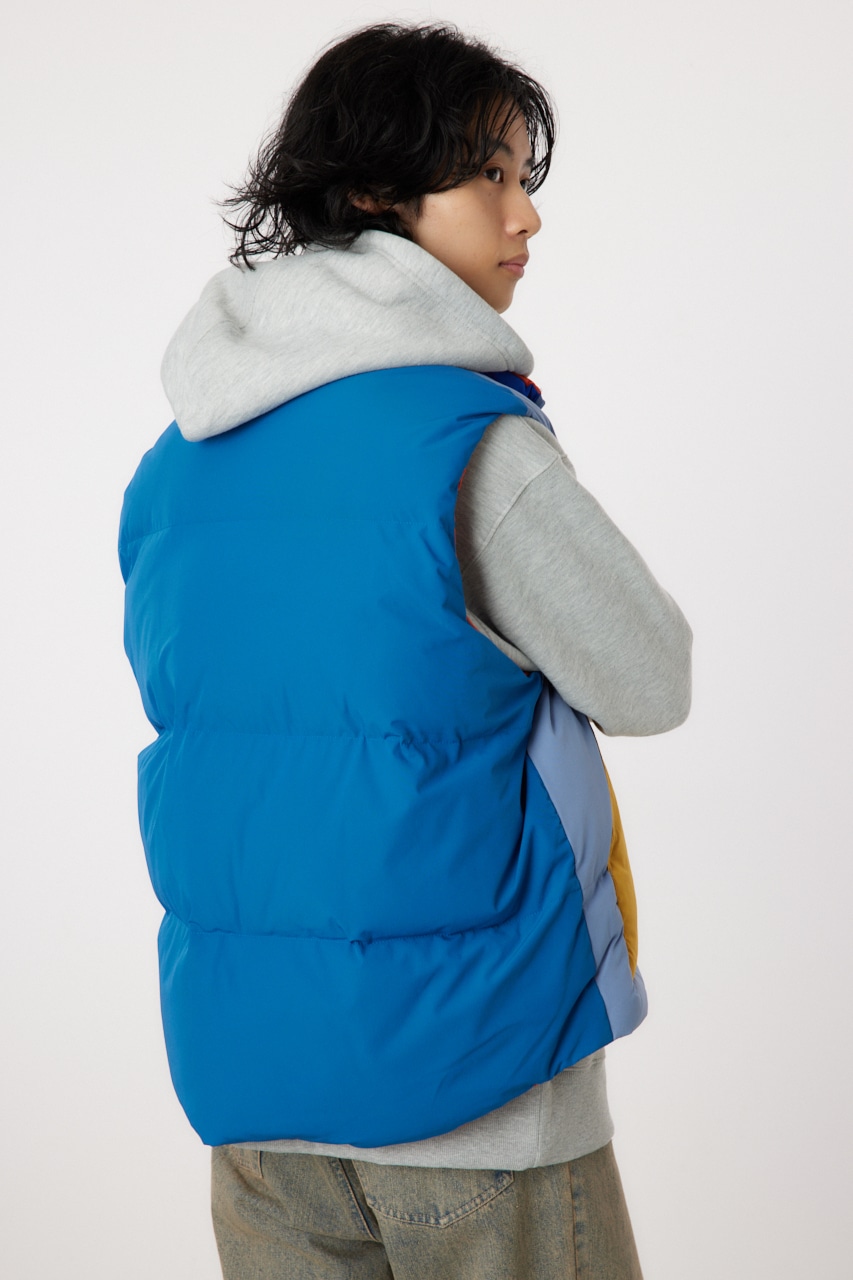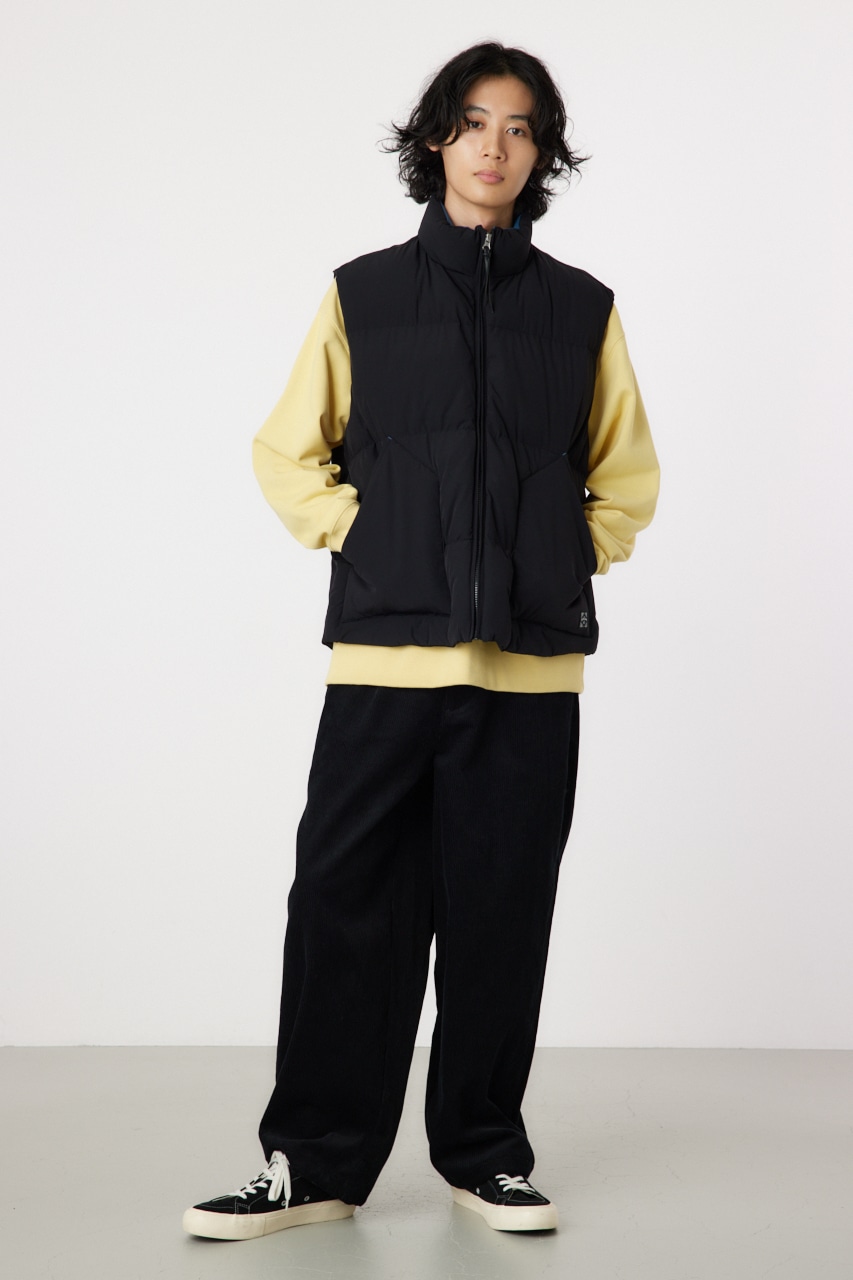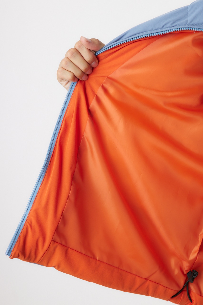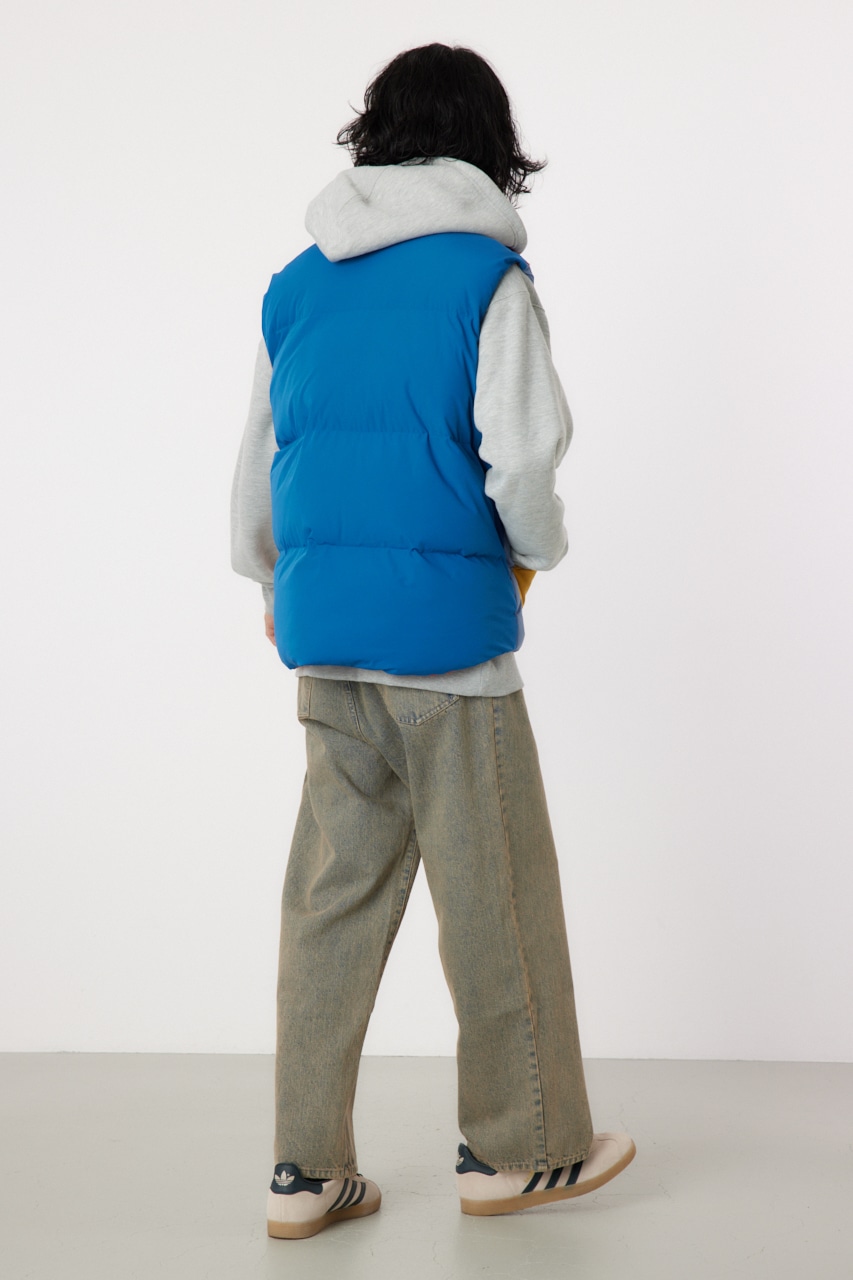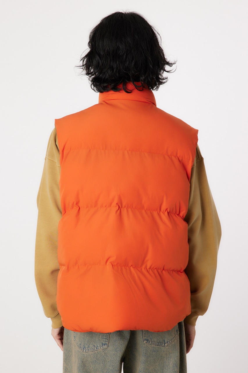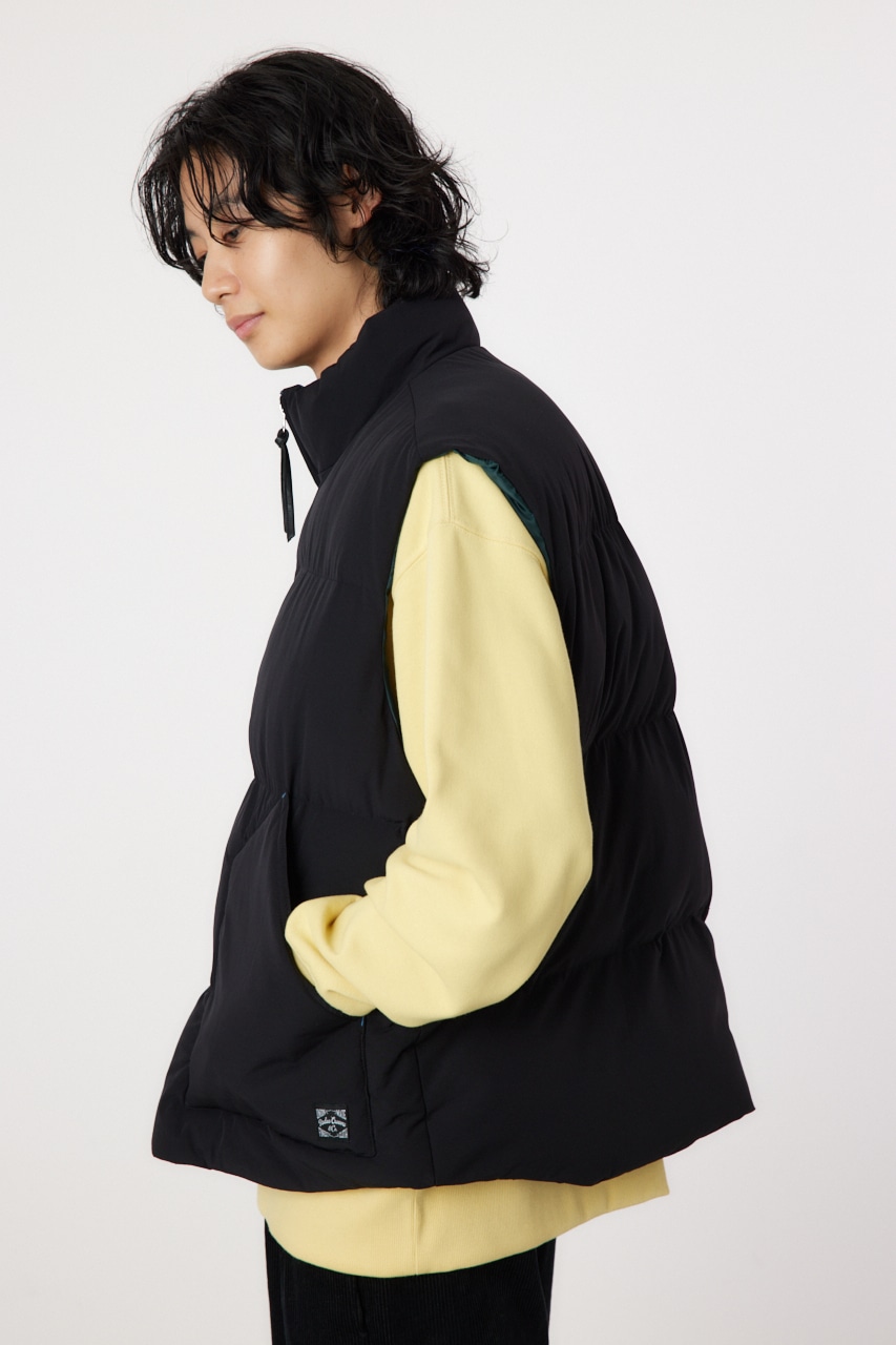 80?90年代の古着をモチーフにしたスタンドネックの中綿ベスト。どこか懐かしいカラーリングがポイントです。スタンドカラーで首元まで暖かいのが嬉しいアイテム。裾部分にゴムを施すことで、防風対策&保温効果の両方を叶えました。