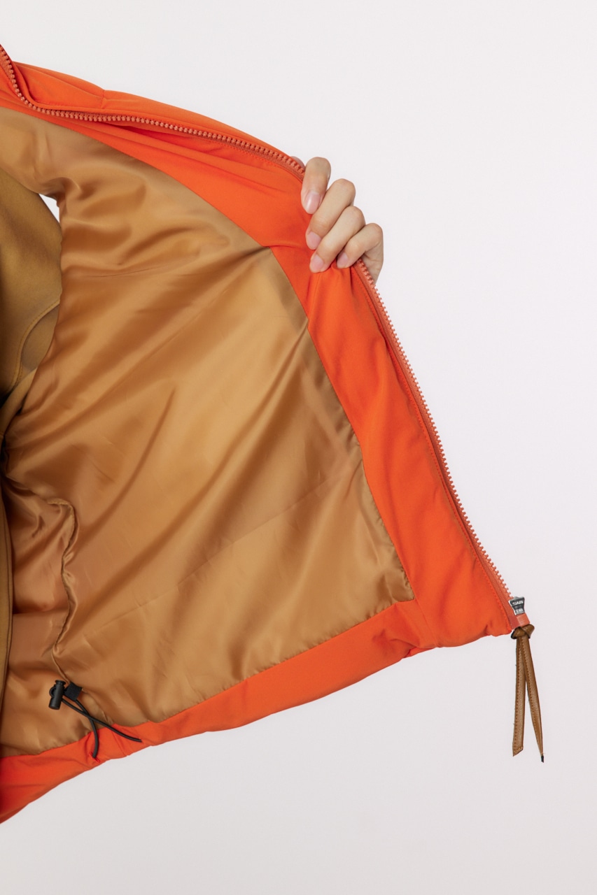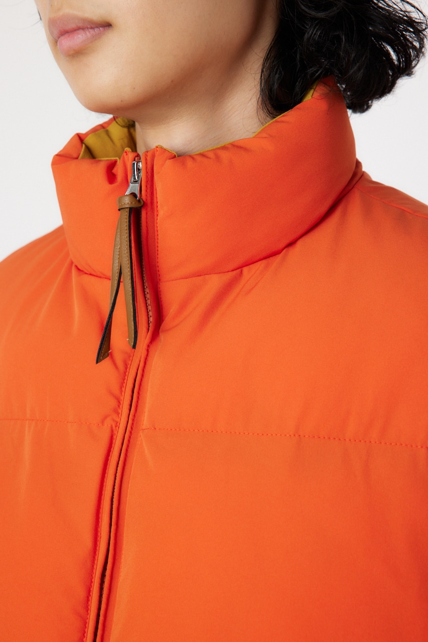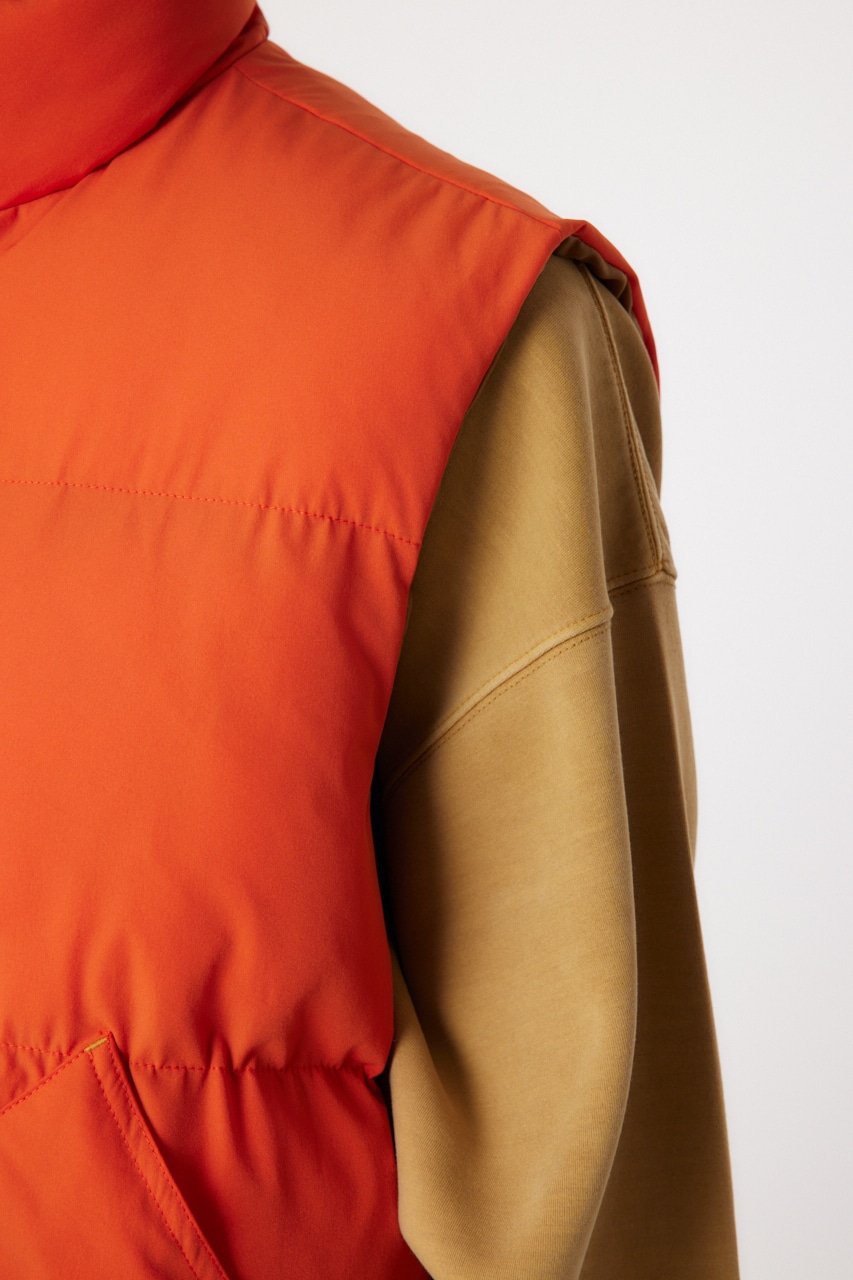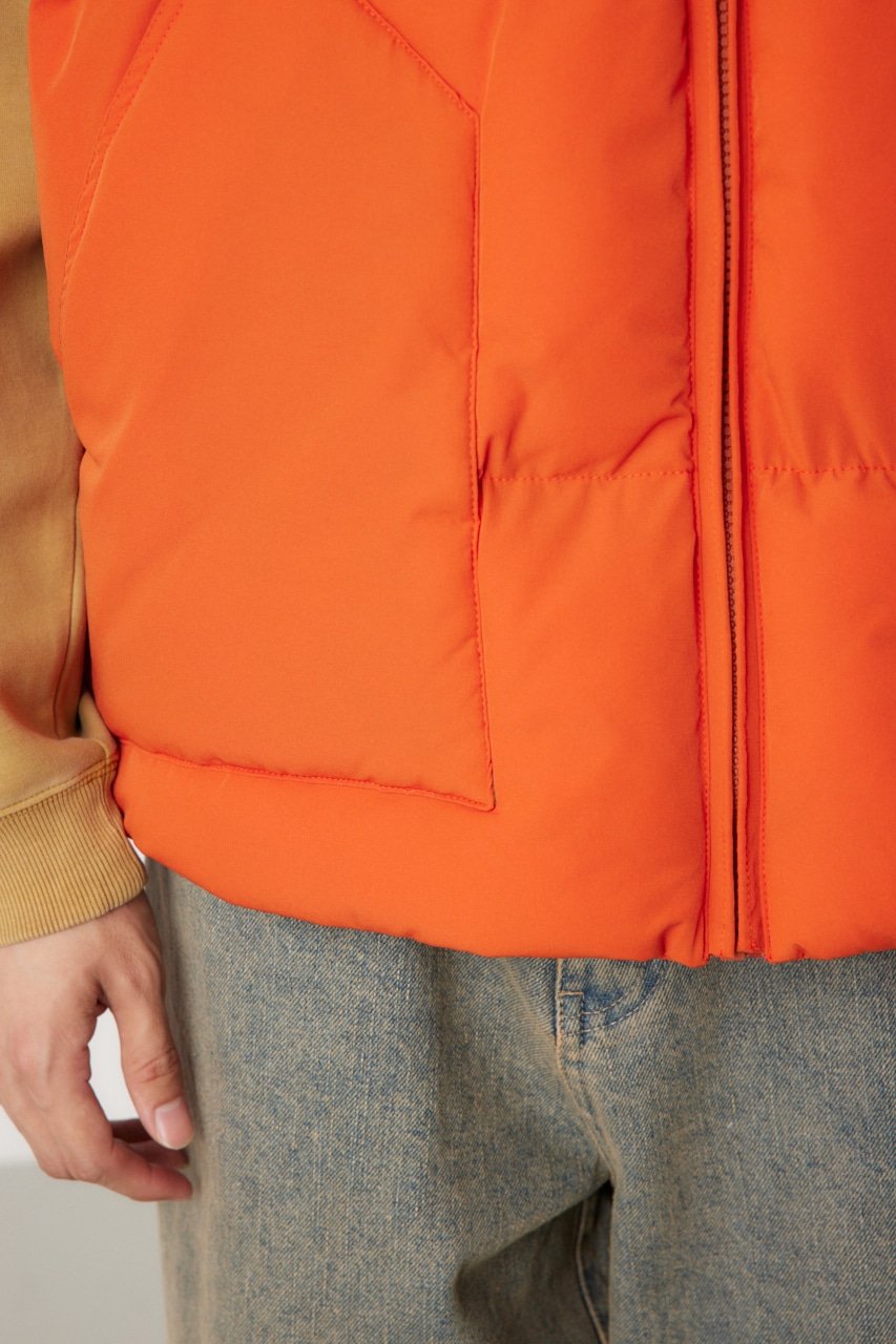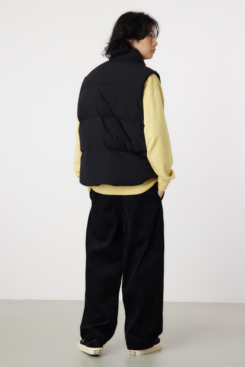 80?90年代の古着をモチーフにしたスタンドネックの中綿ベスト。どこか懐かしいカラーリングがポイントです。スタンドカラーで首元まで暖かいのが嬉しいアイテム。裾部分にゴムを施すことで、防風対策&保温効果の両方を叶えました。