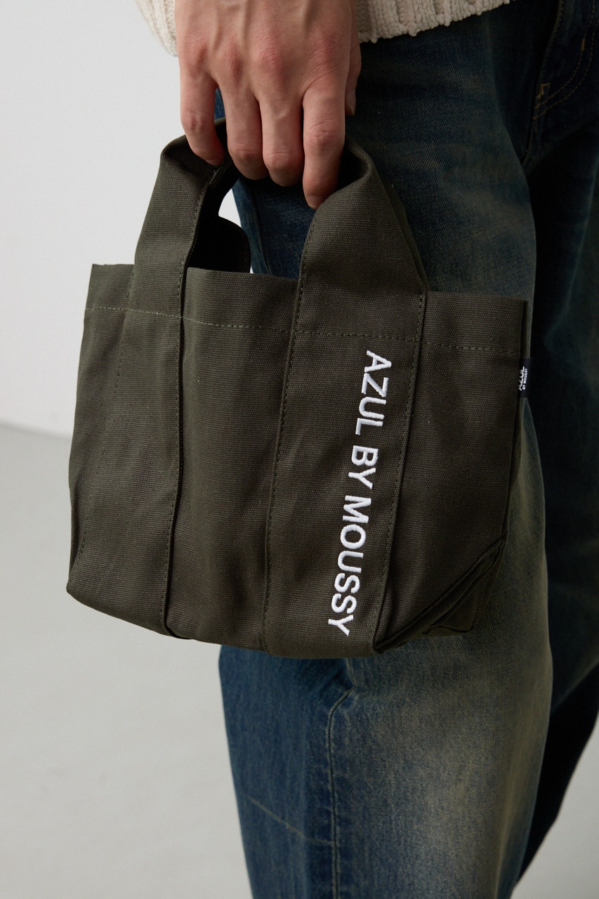 定番のAZULミニトートの形で、刺繍の縦ロゴが入っております。