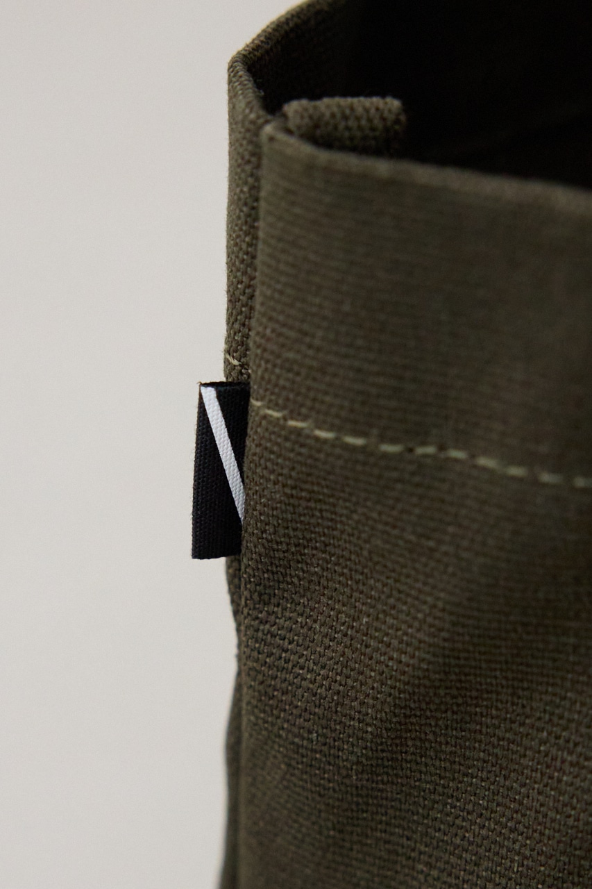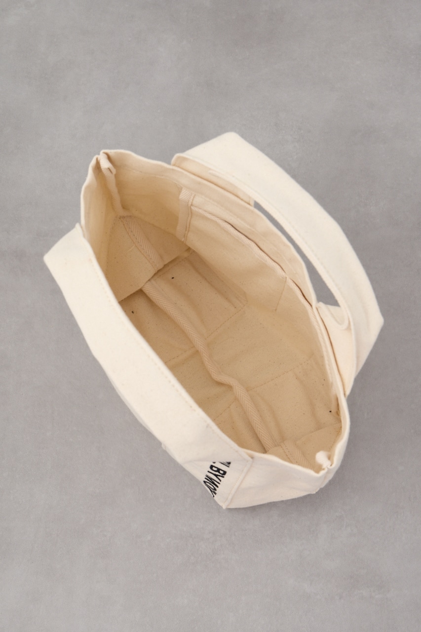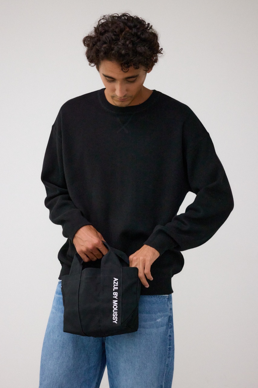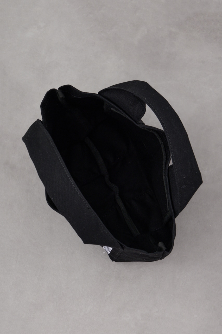 前面、裏面にロゴ刺繍が縦に入っているミニトートになります。