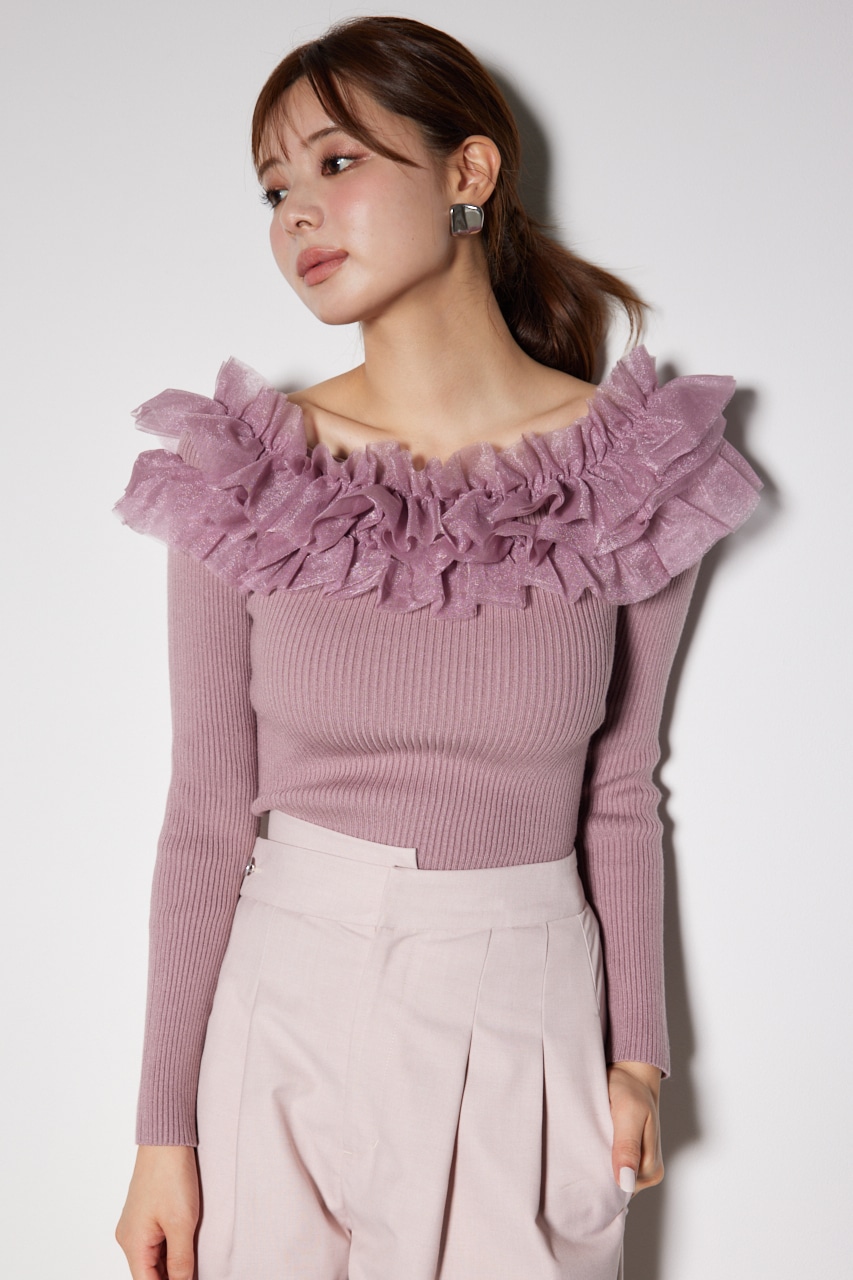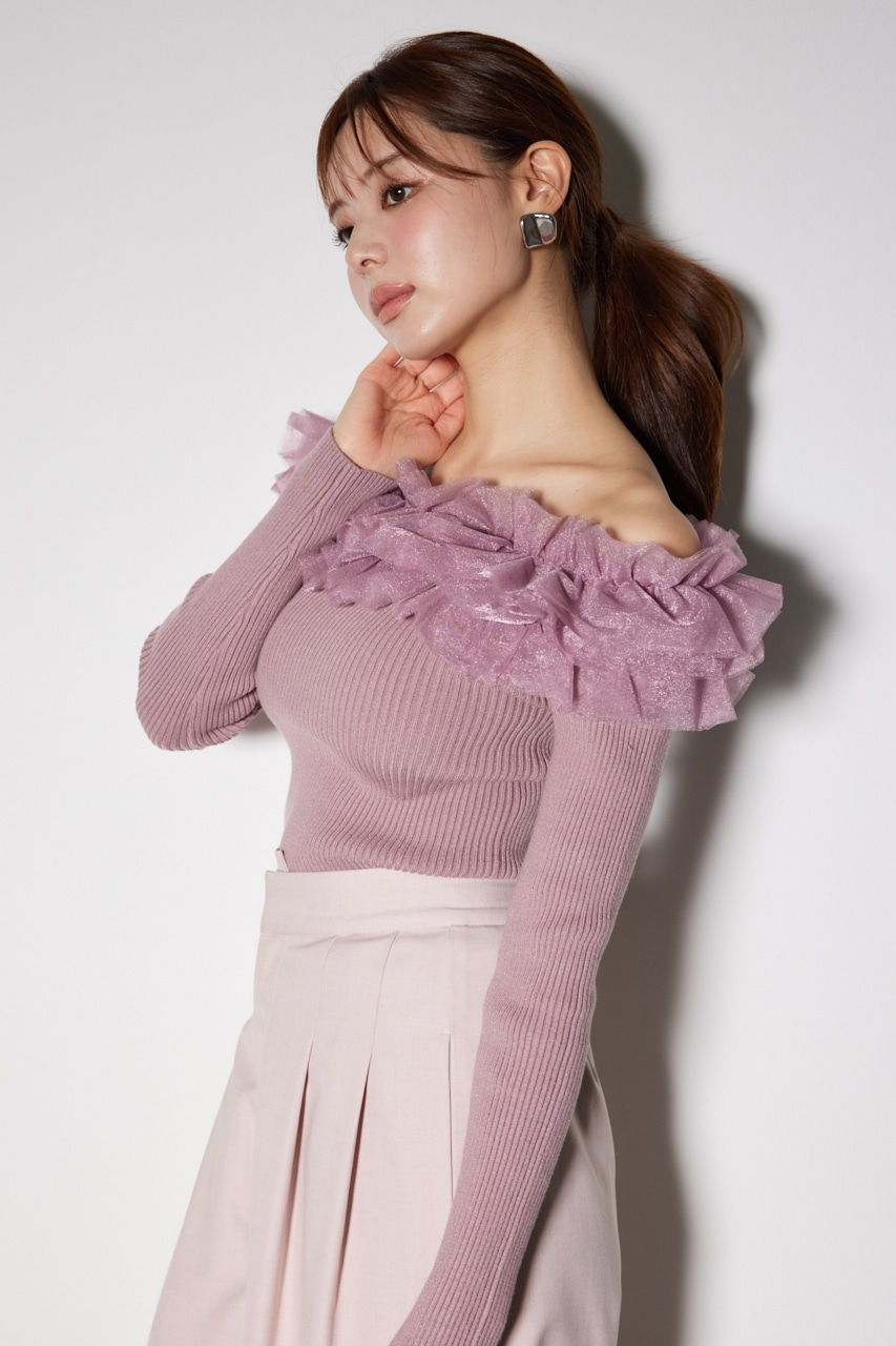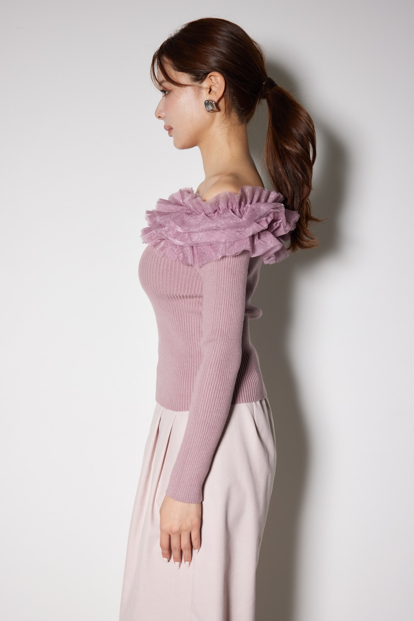 繊細なラメ感のチュールにたっぷりギャザーを寄せたフリルがリッチ感を演出。