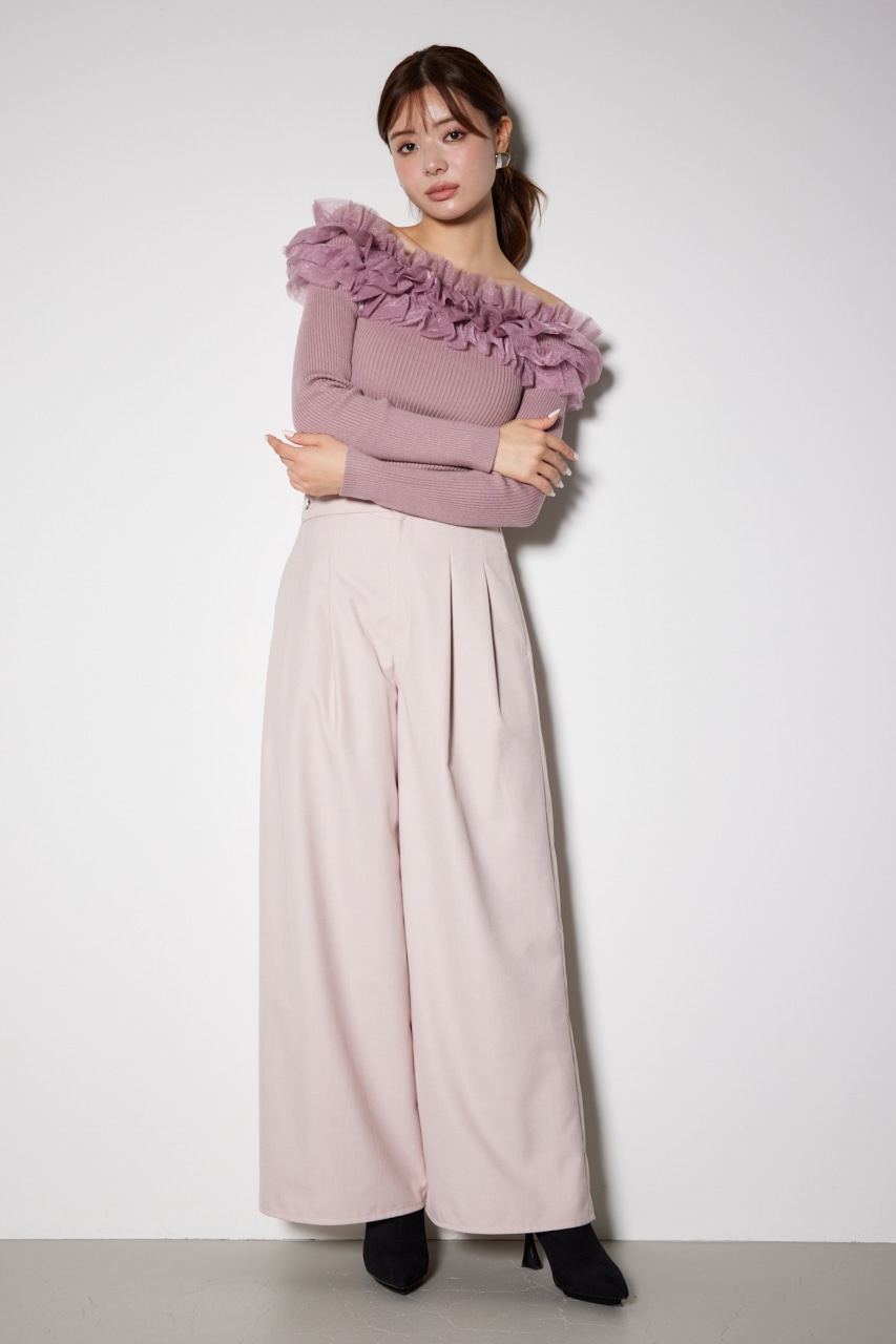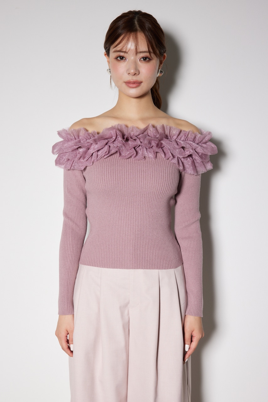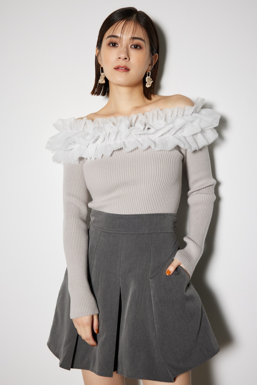 繊細なラメ感のチュールにたっぷりギャザーを寄せたフリルがリッチ感を演出。