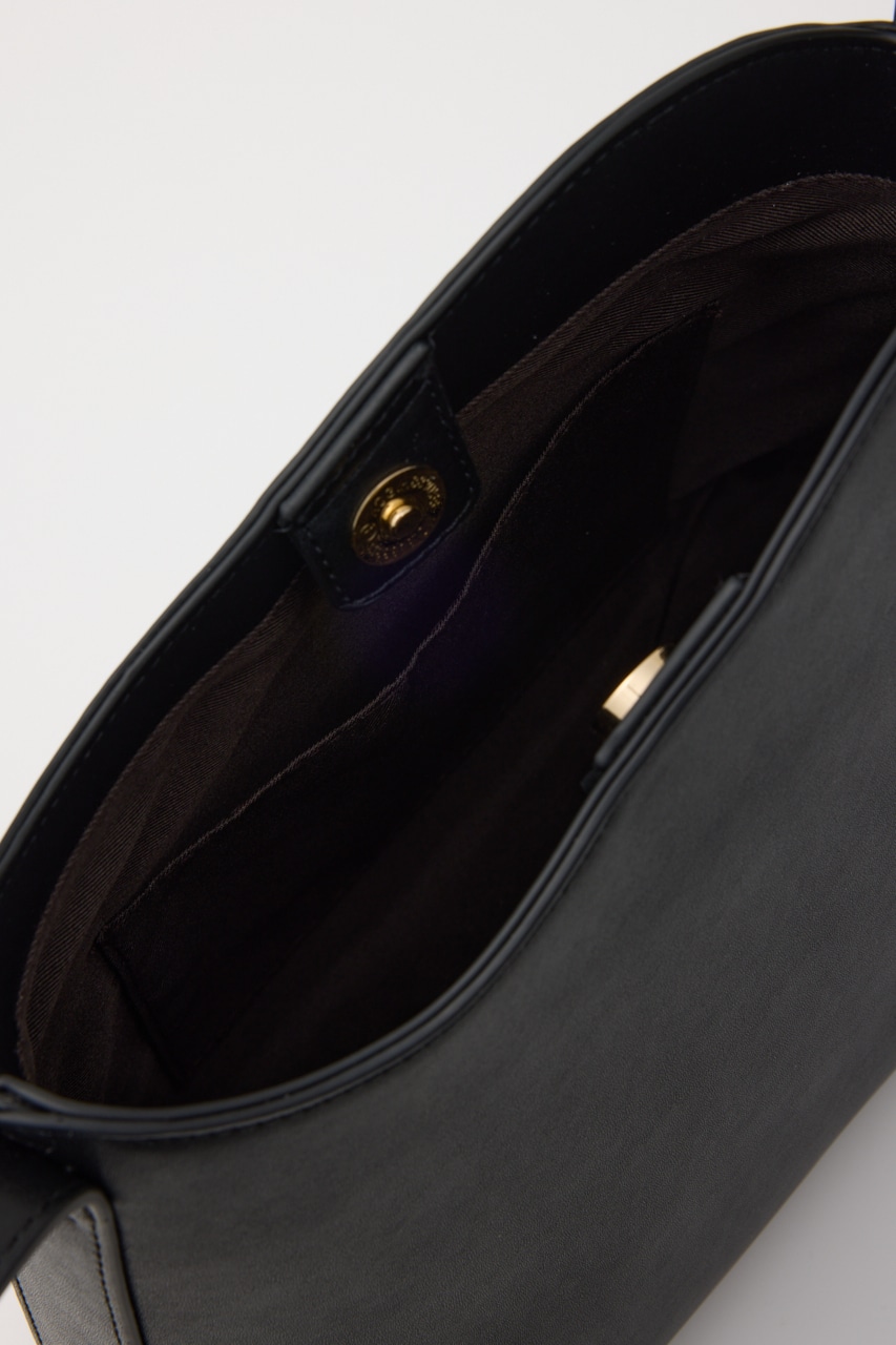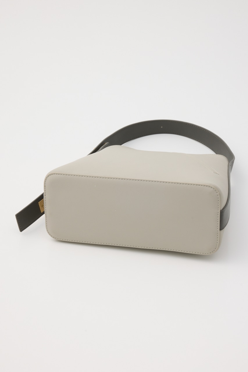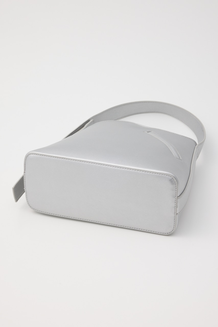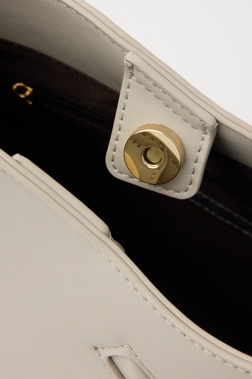 波打った口元や斜めのポケット、肩掛けショルダーのサイド金具などシンプルに見えてポイントがいっぱいのトートバッグ。