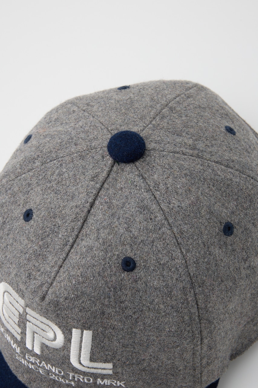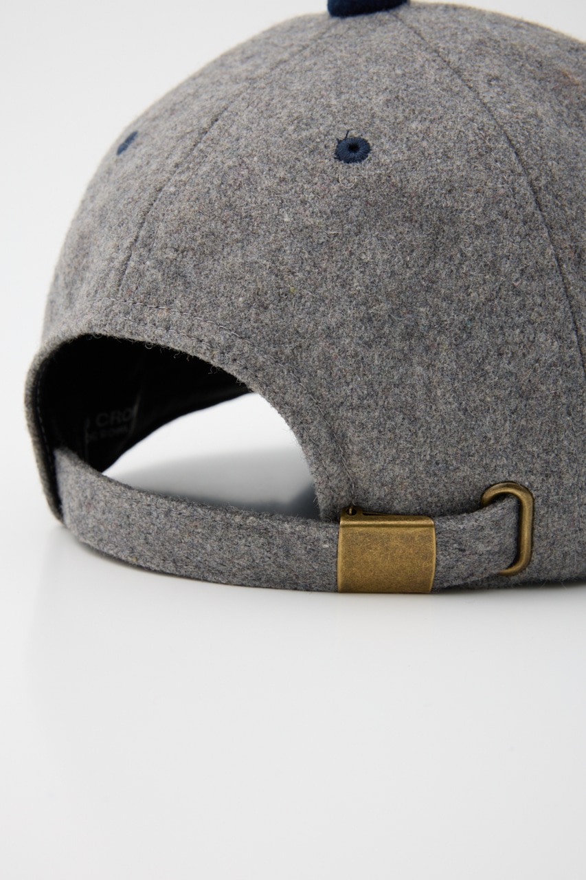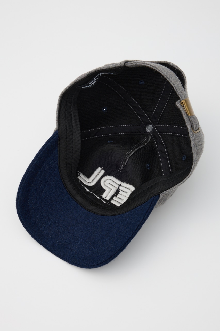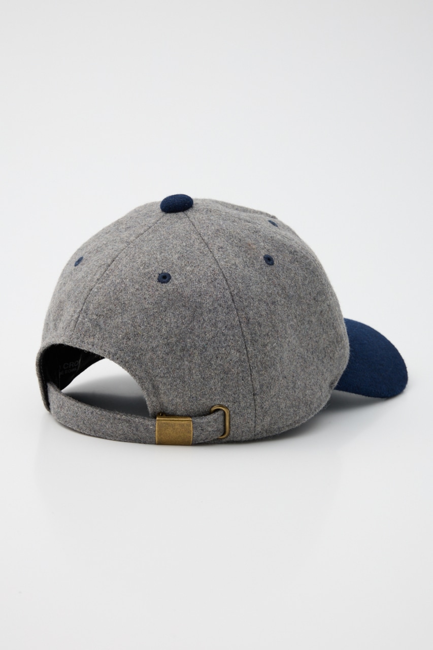 メルトン素材を使用したベースボールキャップ。フロントに大きく刺繍したフェルト文字がポイント。ヴィンテージテイストをイメージした配色のアイテムです。