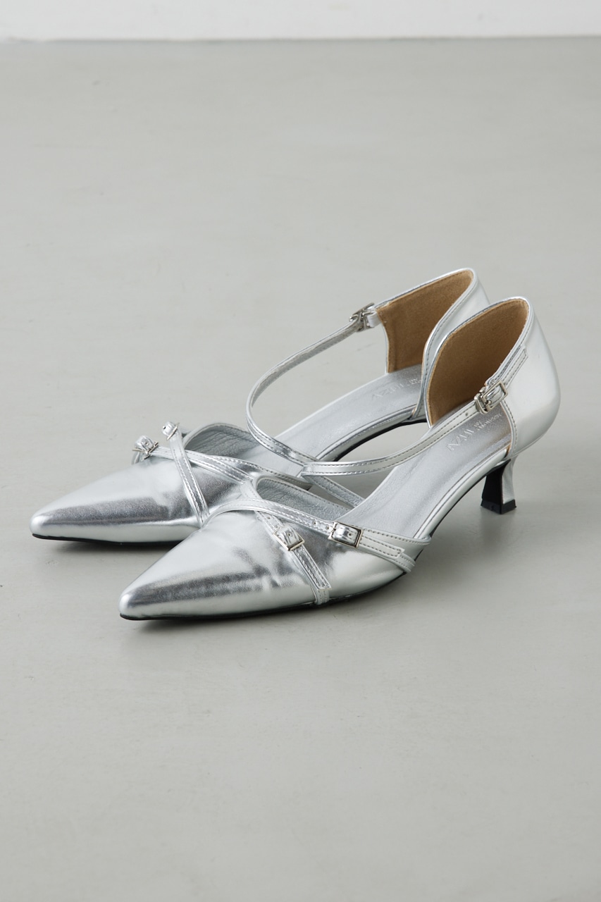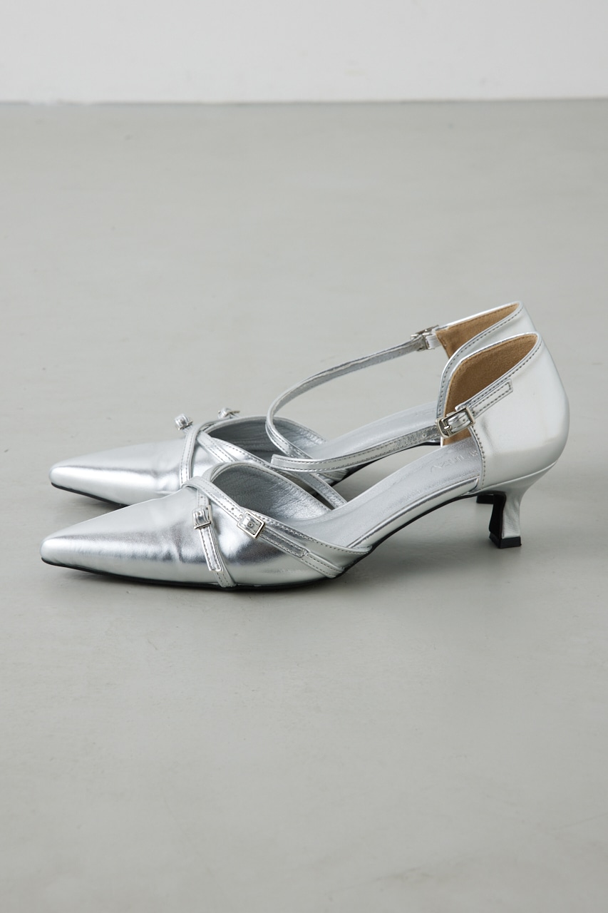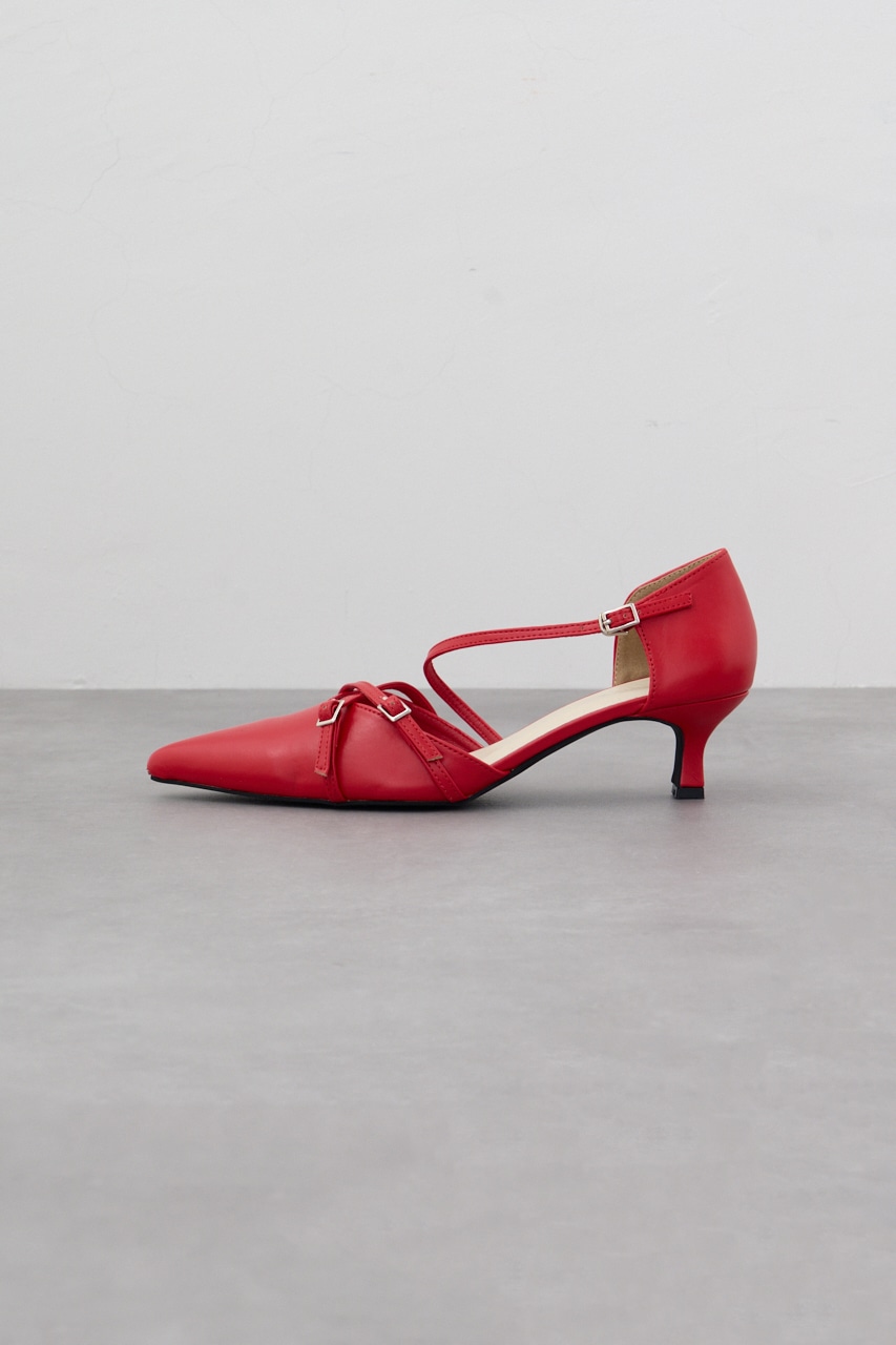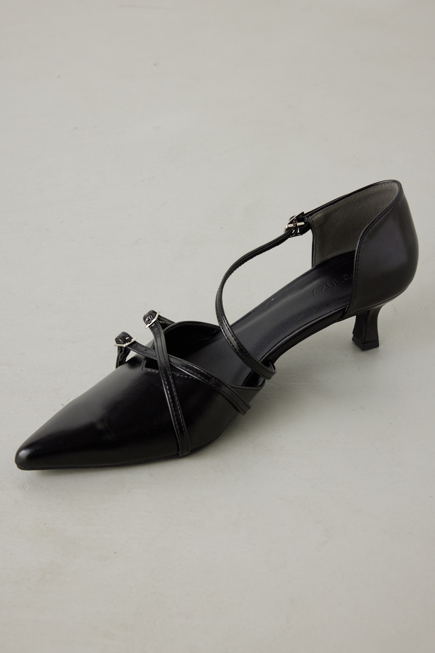 ダブルのストラップ遣いがトレンドライクなパンプスです。