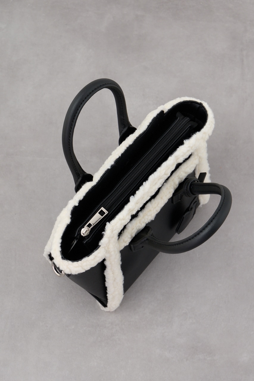 ボアと合成皮革の組み合わせがシーズンムードが高まるフェイクムートンバッグです。