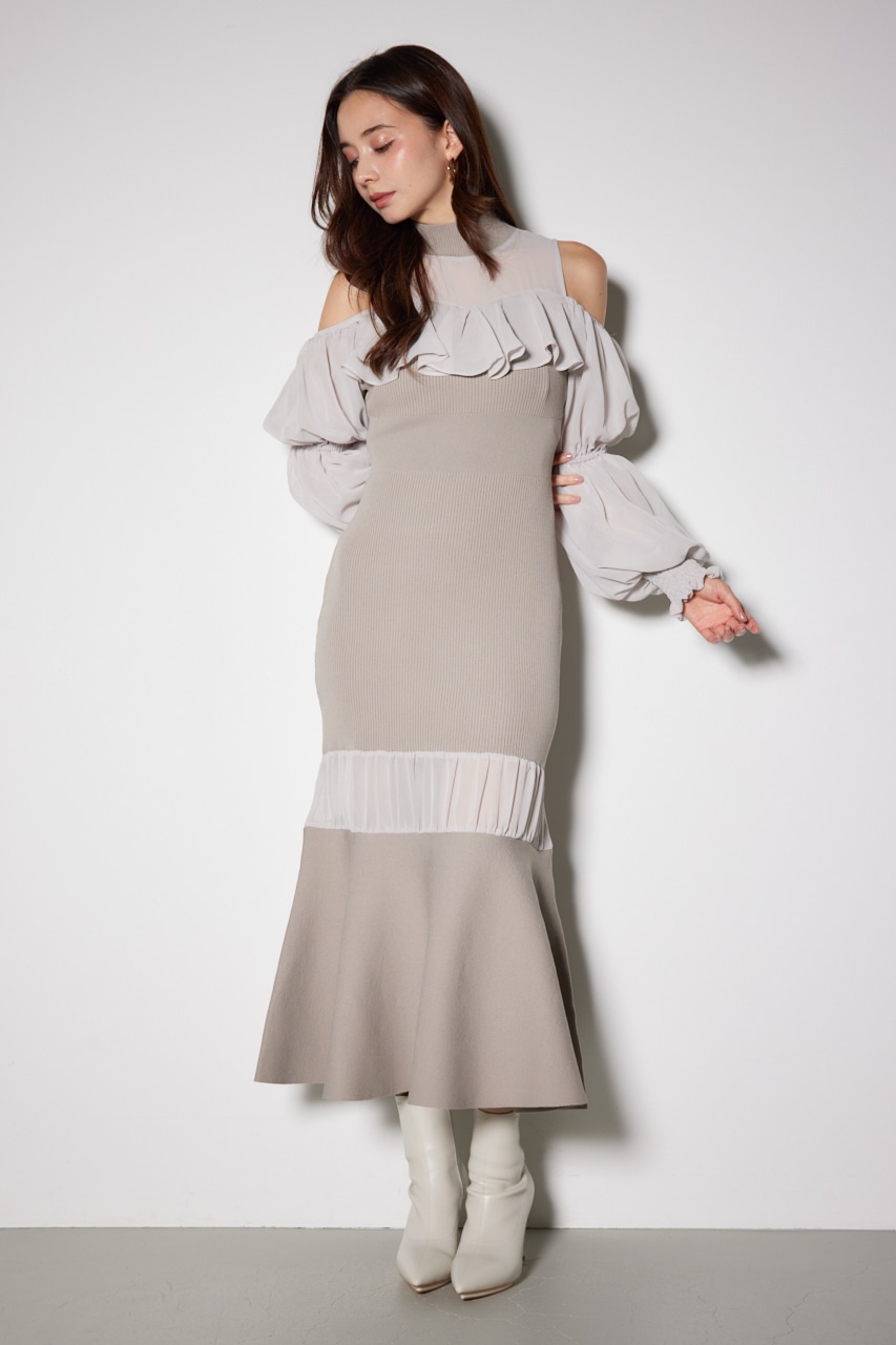 バストフリルシフォンドッキング ニット ワンピース