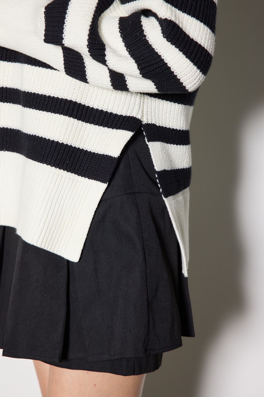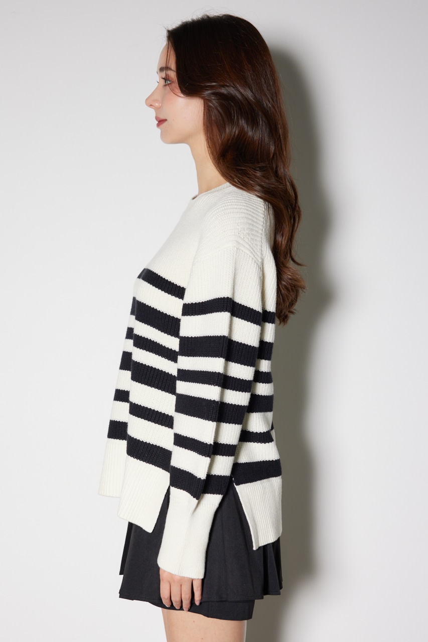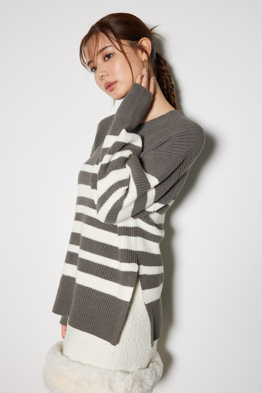 【ランダムなボーダー柄が編まれたざっくり系のカジュアルニットトップス】