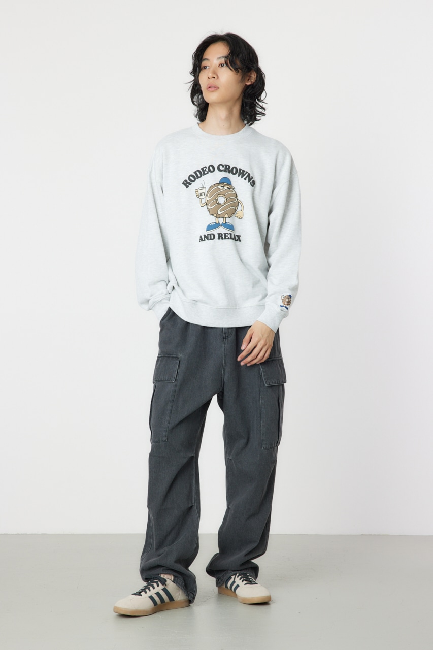 ※こちらの商品はオンラインストア及び一部店舗での限定展開となります。 ヘビー裏毛を使用したスウェット。ぷっくりとした発砲プリントのデザインで、ドーナツのキャラクターが遊び心のある1枚に。ユニセックスで着用できるアイテムです。
