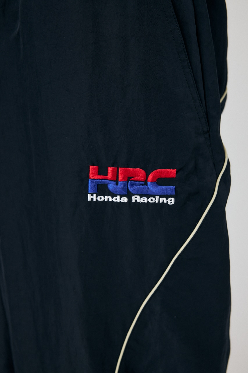 袖や身頃、パンツにパイピングを施しスポーティーさ全開に。両胸にはワンポンとロゴ刺繍、後ろにはインパクトのあるHONDA MOUSSYロゴ刺繍を。