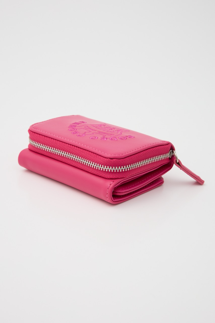 必要最低限の収納ができるコンパクトな三つ折りウォレット。フロントにはアイコンの刺繍ロゴ入り。ベーシックなBLK、ビビットなPNK、カジュアルなレオパード柄の3色展開。小さめなバッグにも入れやすいサイズ感で、ギフトにもおすすめです。同じシリーズのカードケース(420HAY56-3941)も要チェックです。