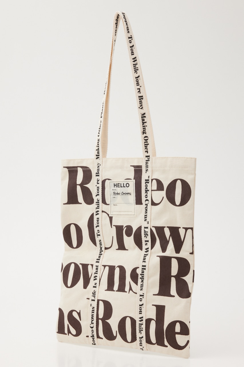 RODEO CROWNSのロゴ総柄デザインのスーベニアトートバッグ。A4サイズは楽々入るサイズ感のアイテム。ハンドルテープにもデザインが施されているのもポイントです。どんなスタイリングにもマッチするデザインなので、メインバッグとしても、サブバッグとしても使える優れもの。