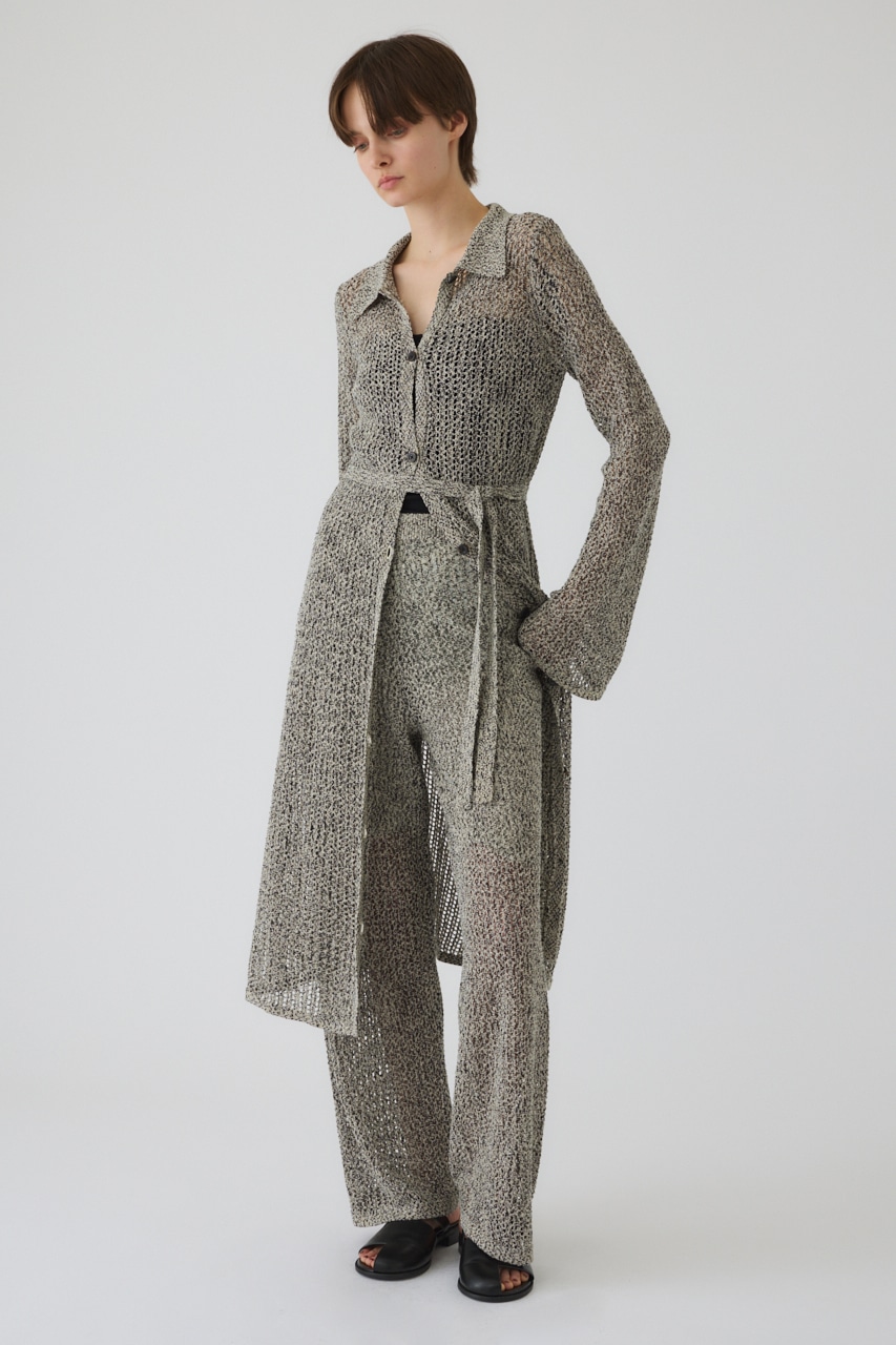 ■DETAIL:コットンナイロンの透かし編みで製作したニットパンツ。