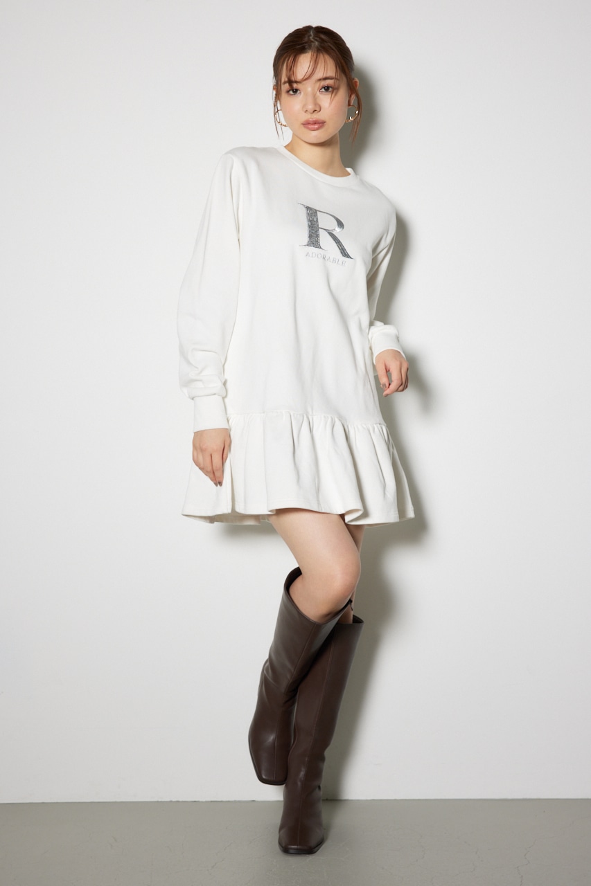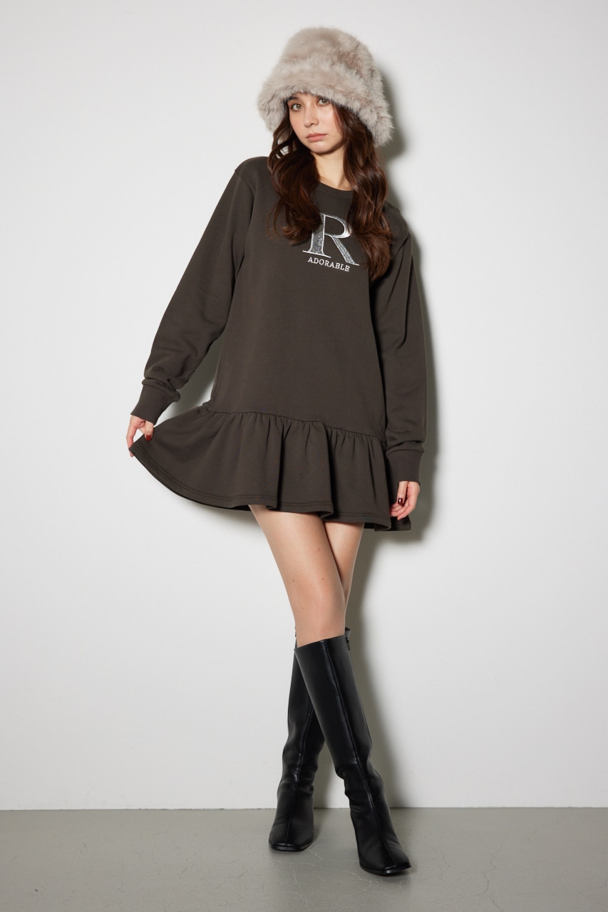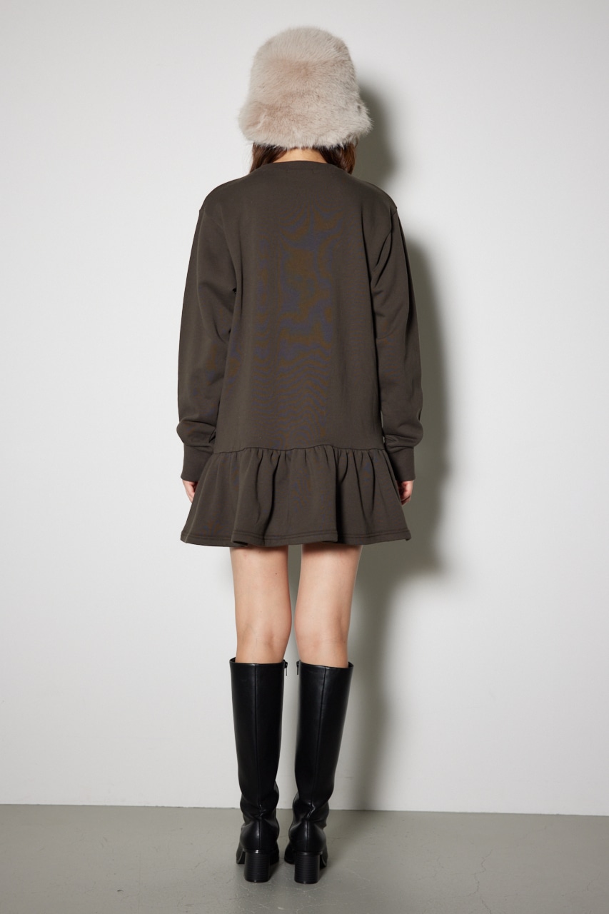 ティアードデザインが可愛いミニ丈のスウェットワンピース。