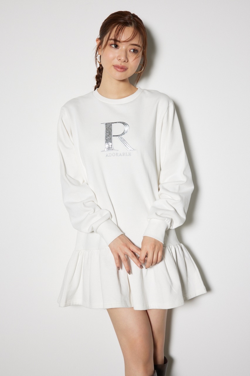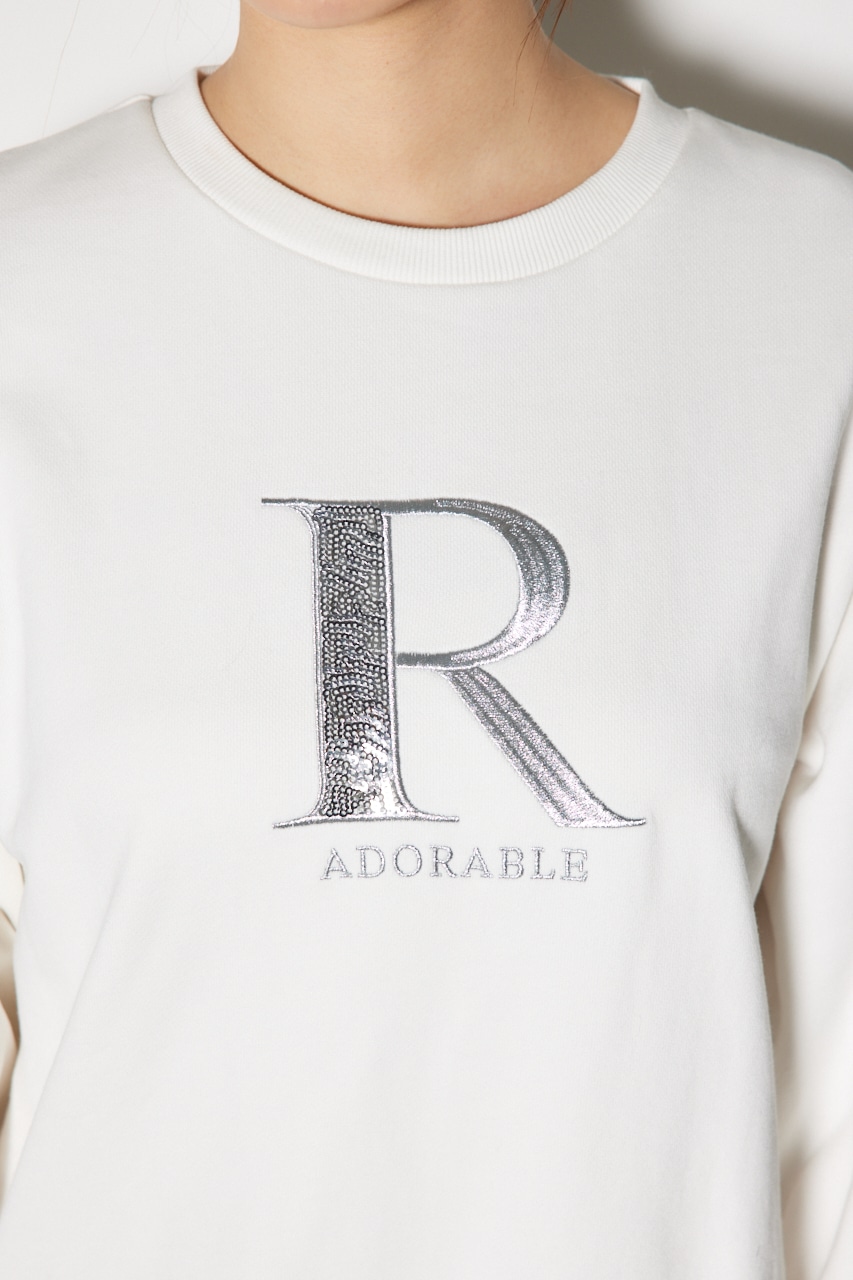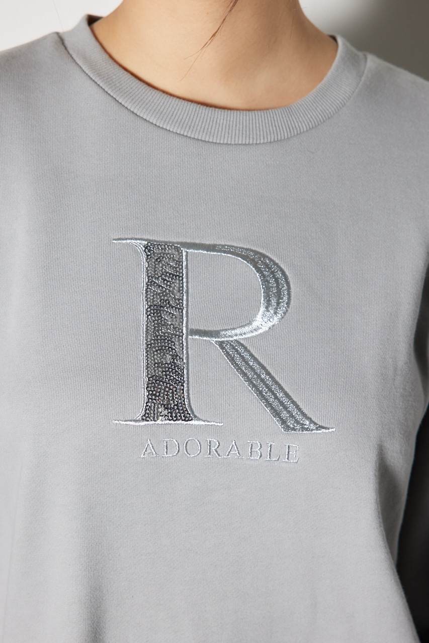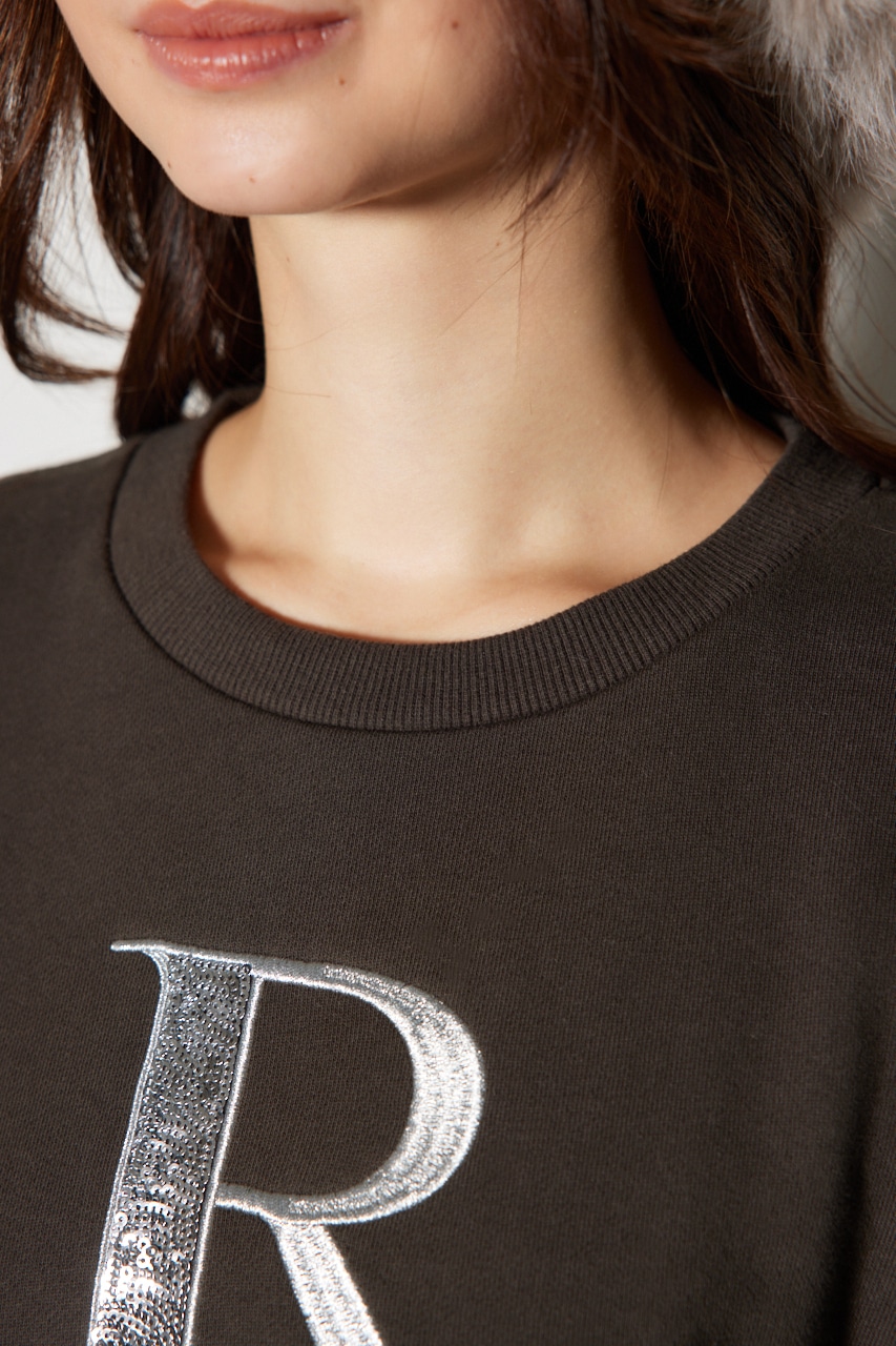 胸元に施したスパンコールとラメ刺繍のRロゴがポイントで華やかな印象を与えています。