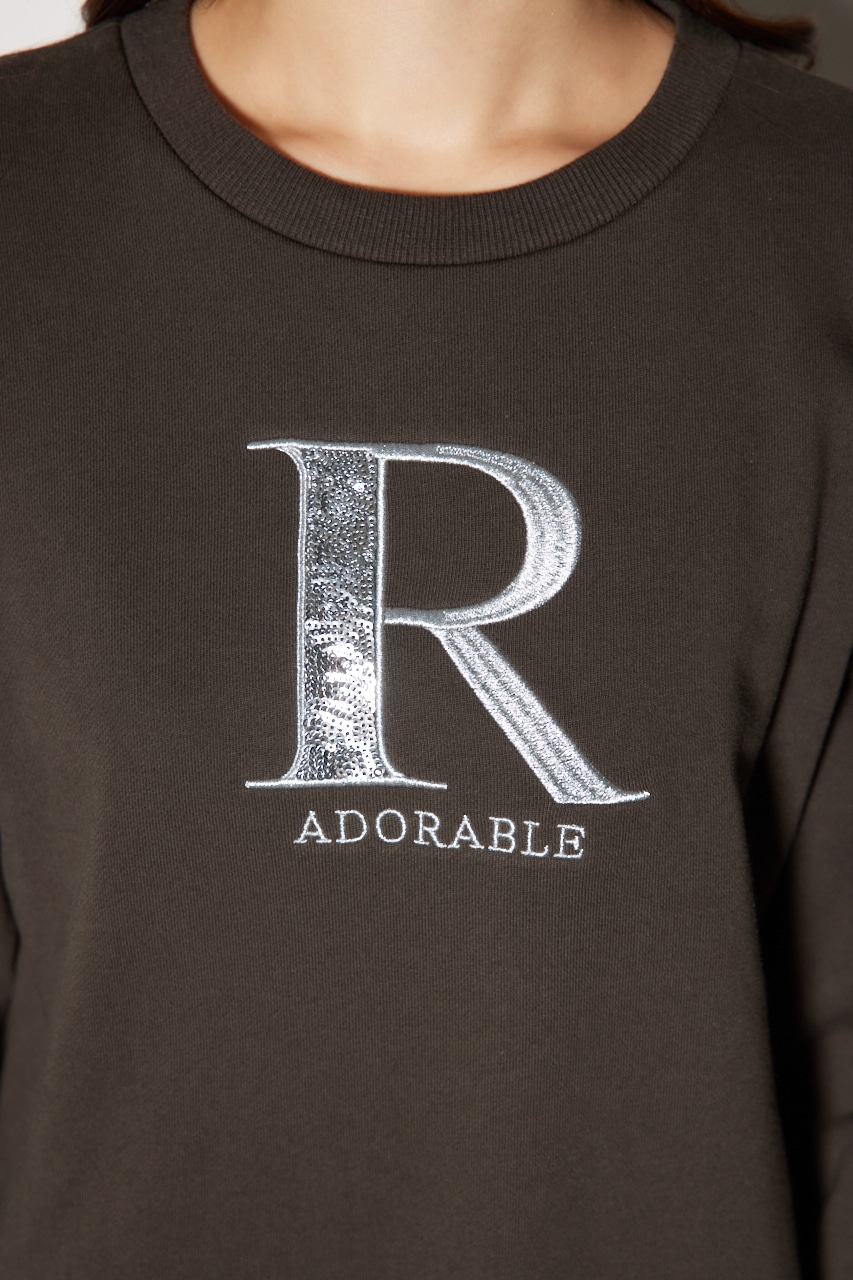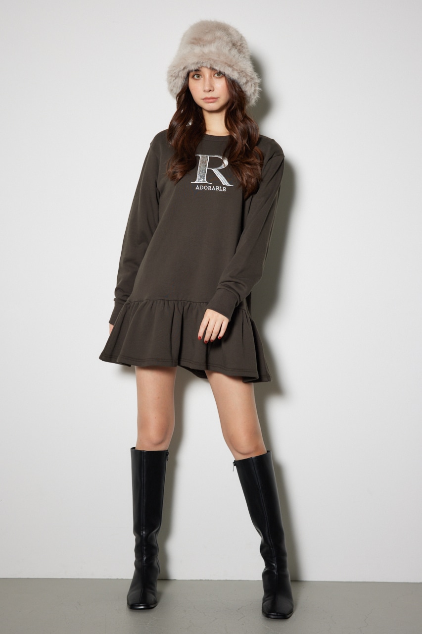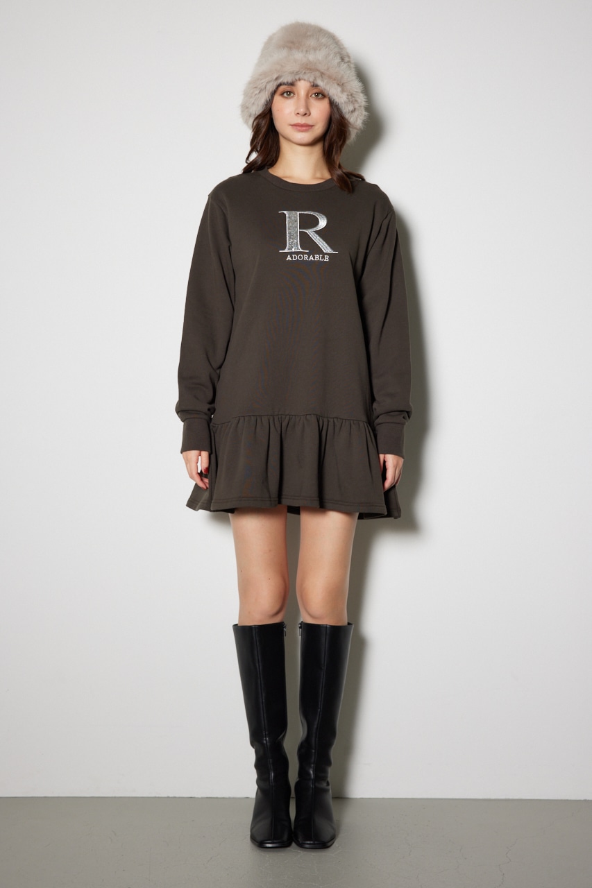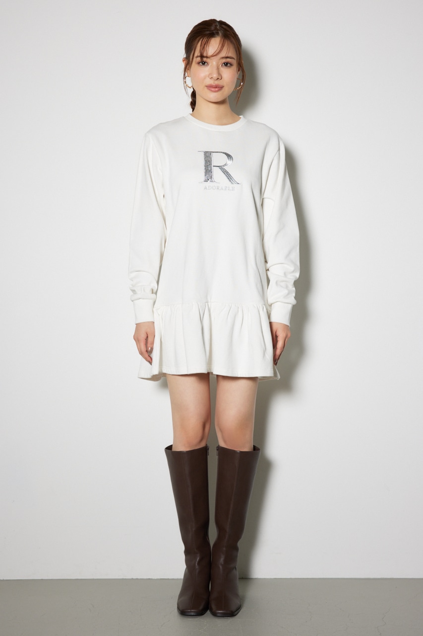 胸元に施したスパンコールとラメ刺繍のRロゴがポイントで華やかな印象を与えています。