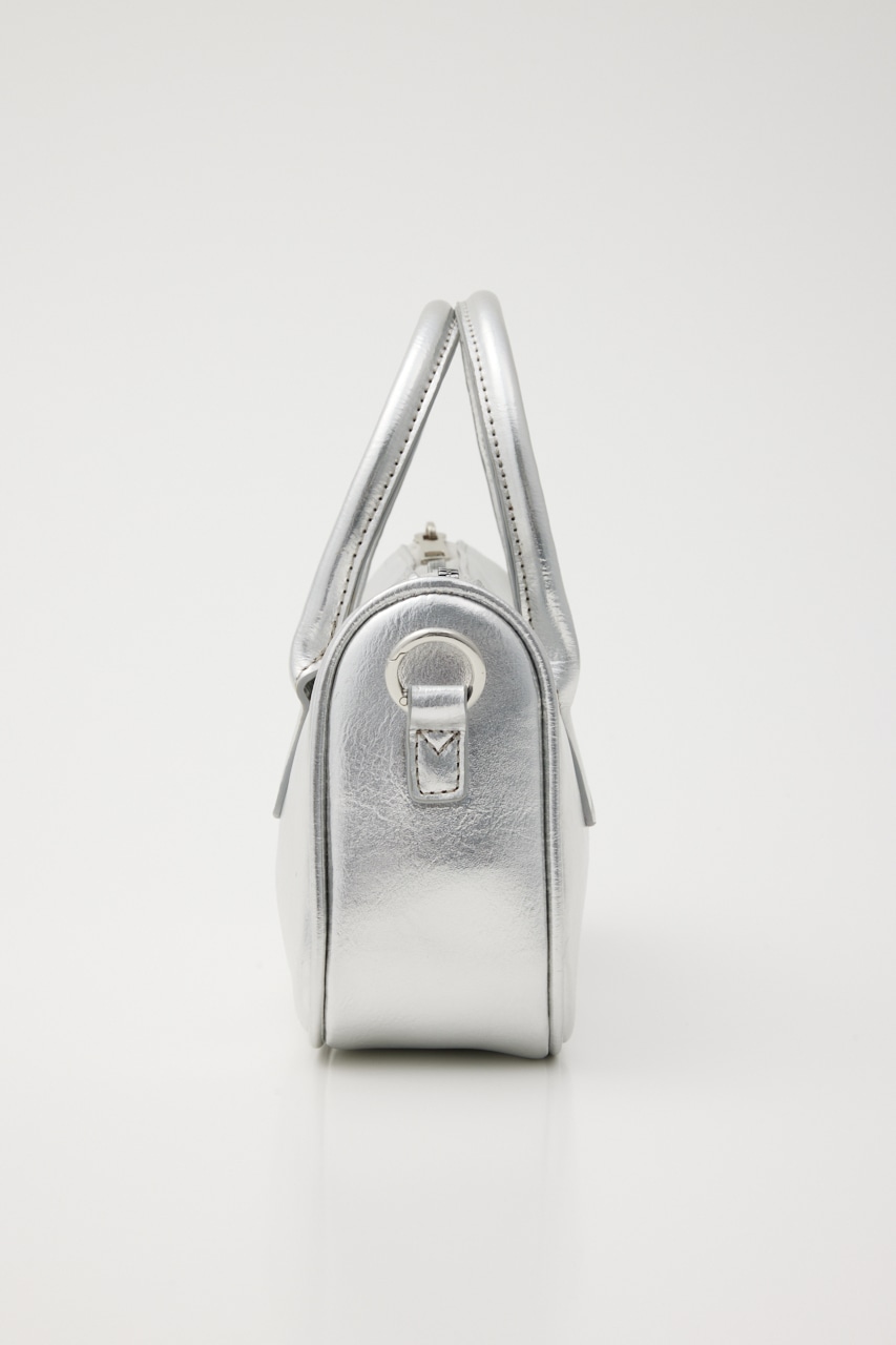 ミニマルな印象のミニボストンバッグ。メタリックカラーを使用し、クールな雰囲気に。ショルダーストラップは取り外しできて、2wayで使えるのも嬉しいポイント。華やかさをプラスしつつも、コーディネートに馴染みやすいアイテムです。