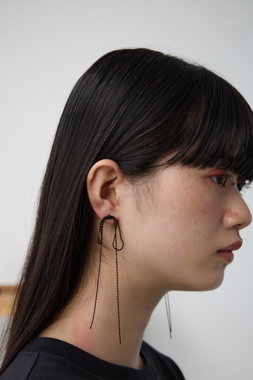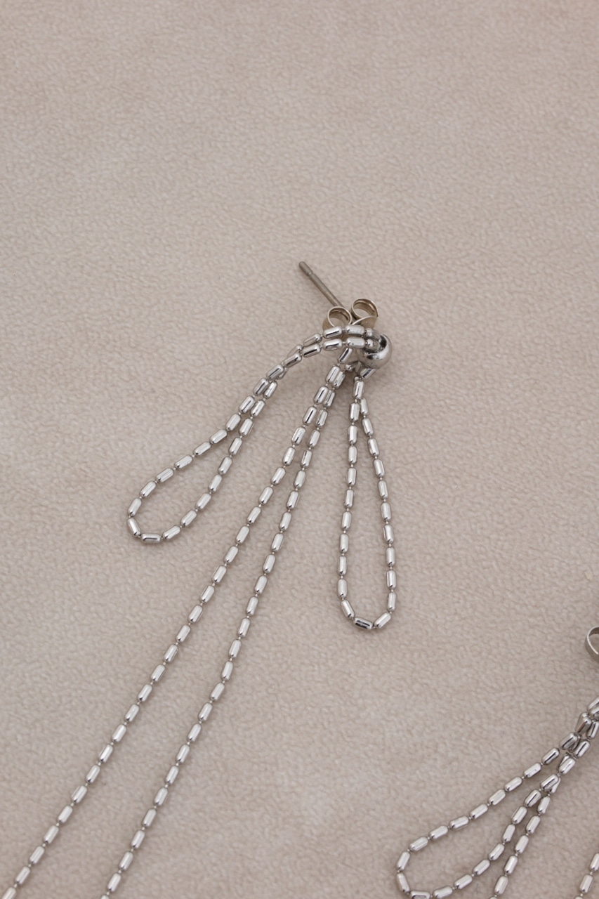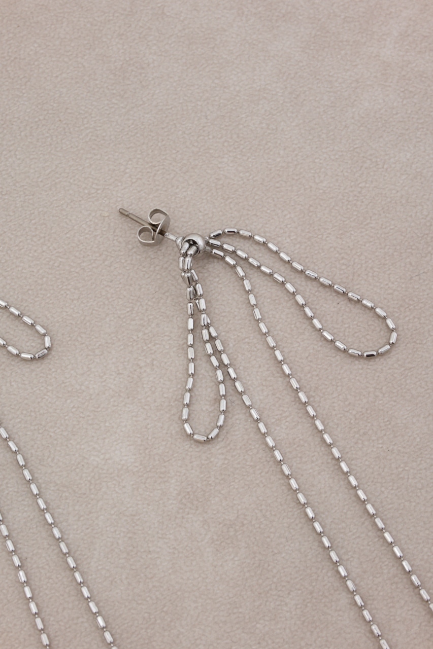 垂れたリボンを華奢なチェーンでかたどったデザインでかわいらしくなりすぎず大人の方にもおすすめデザインです。