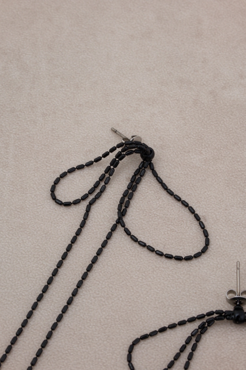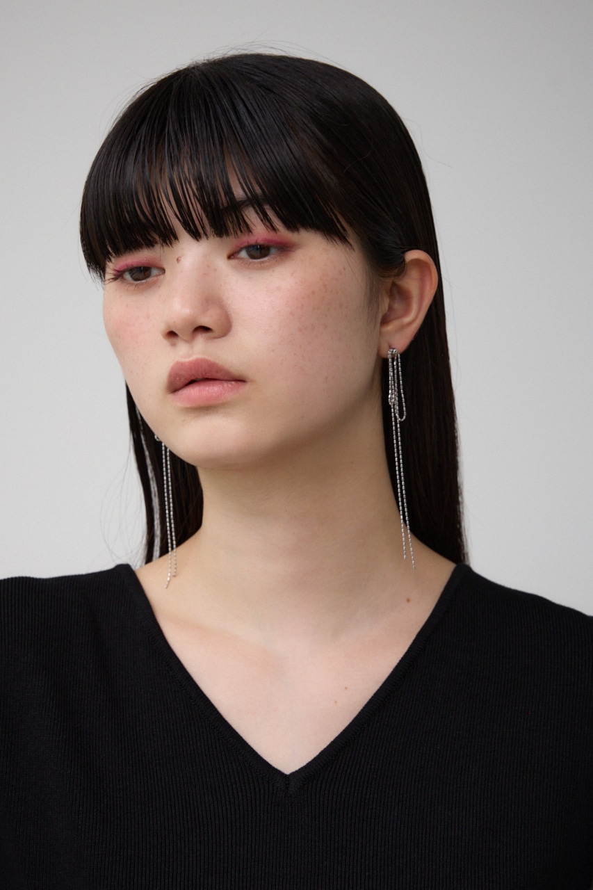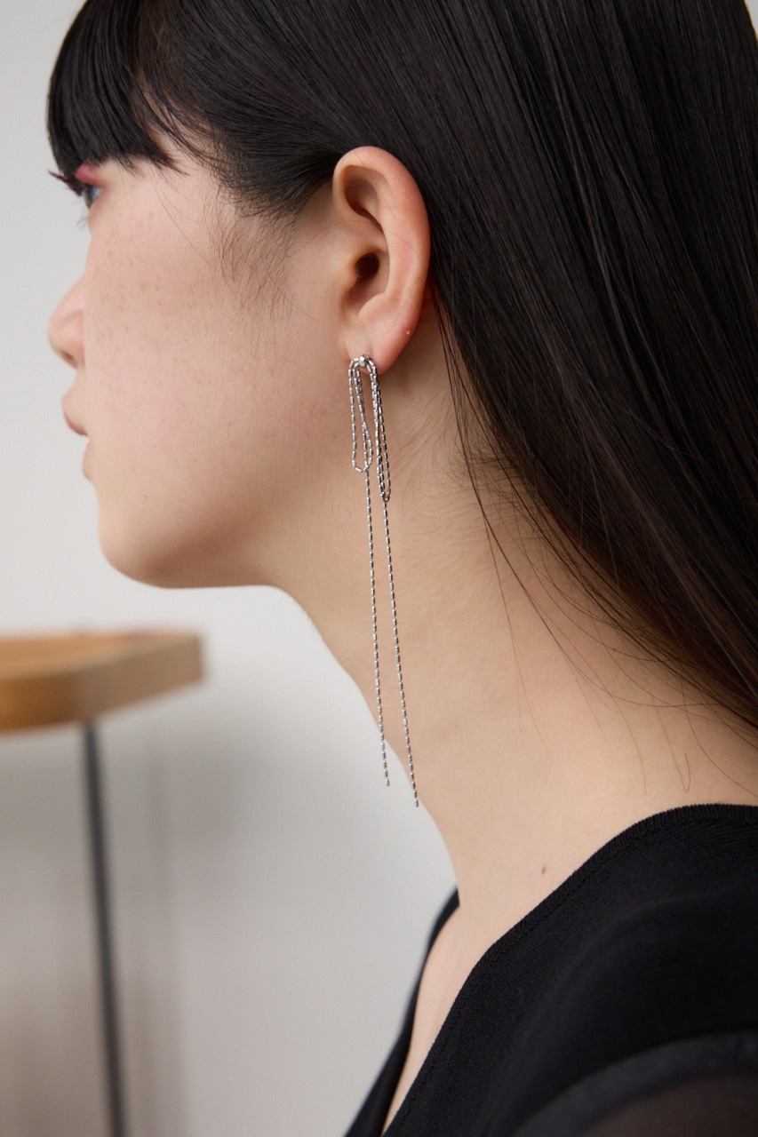 垂れたリボンを華奢なチェーンでかたどったデザインでかわいらしくなりすぎず大人の方にもおすすめデザインです。