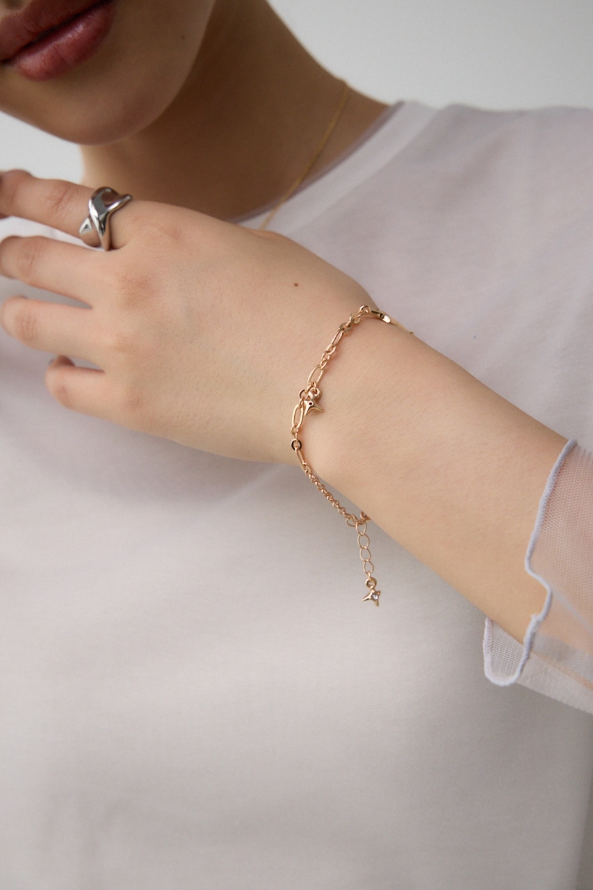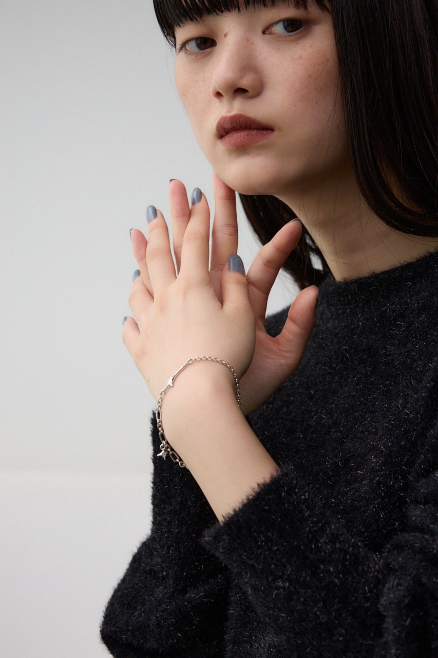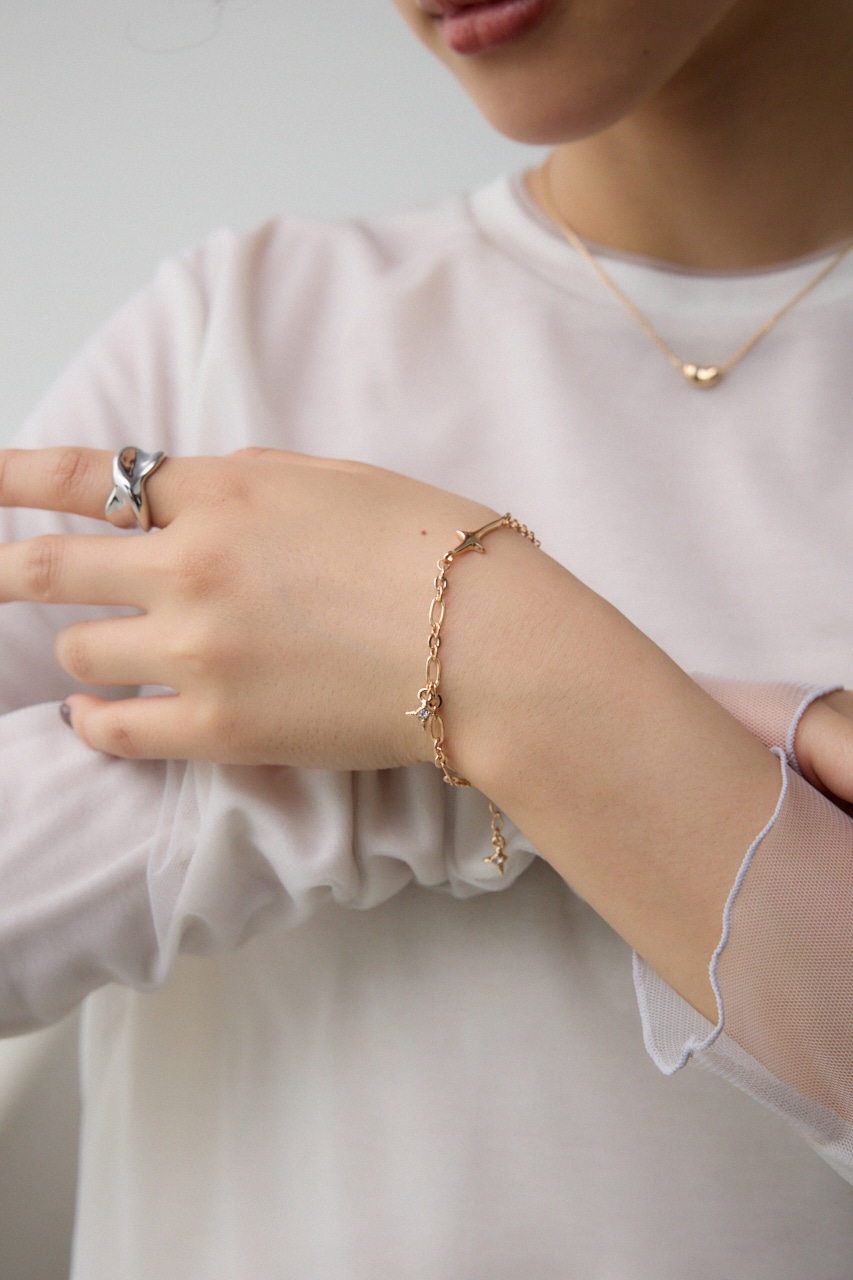 華奢なチェーンブレスレットにキラキラモチーフを組み合わせたデザインは、身に着けるだけで洗練されたスタイルに。