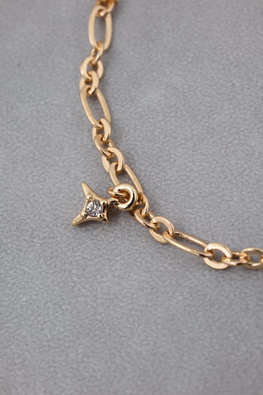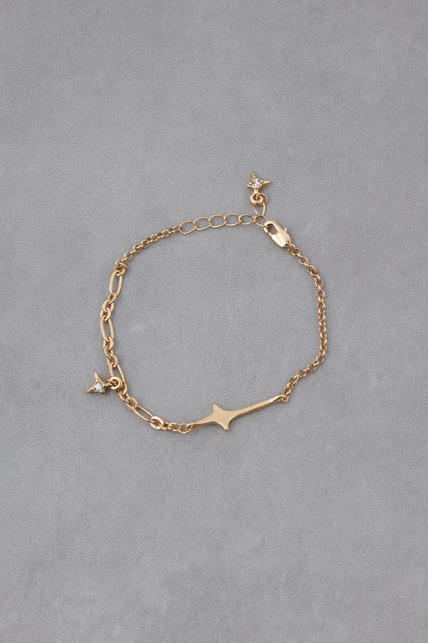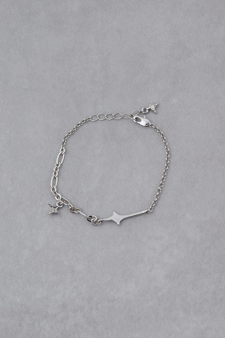 華奢なチェーンブレスレットにキラキラモチーフを組み合わせたデザインは、身に着けるだけで洗練されたスタイルに。