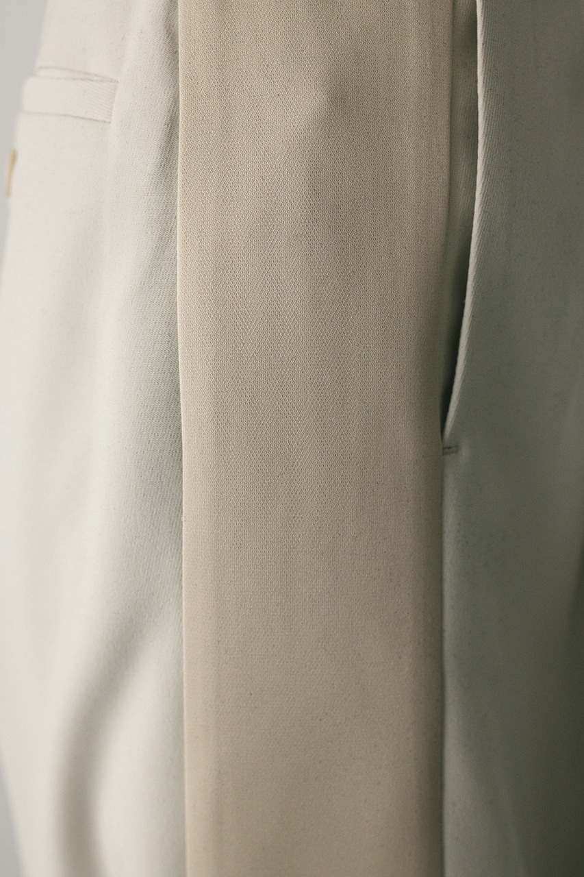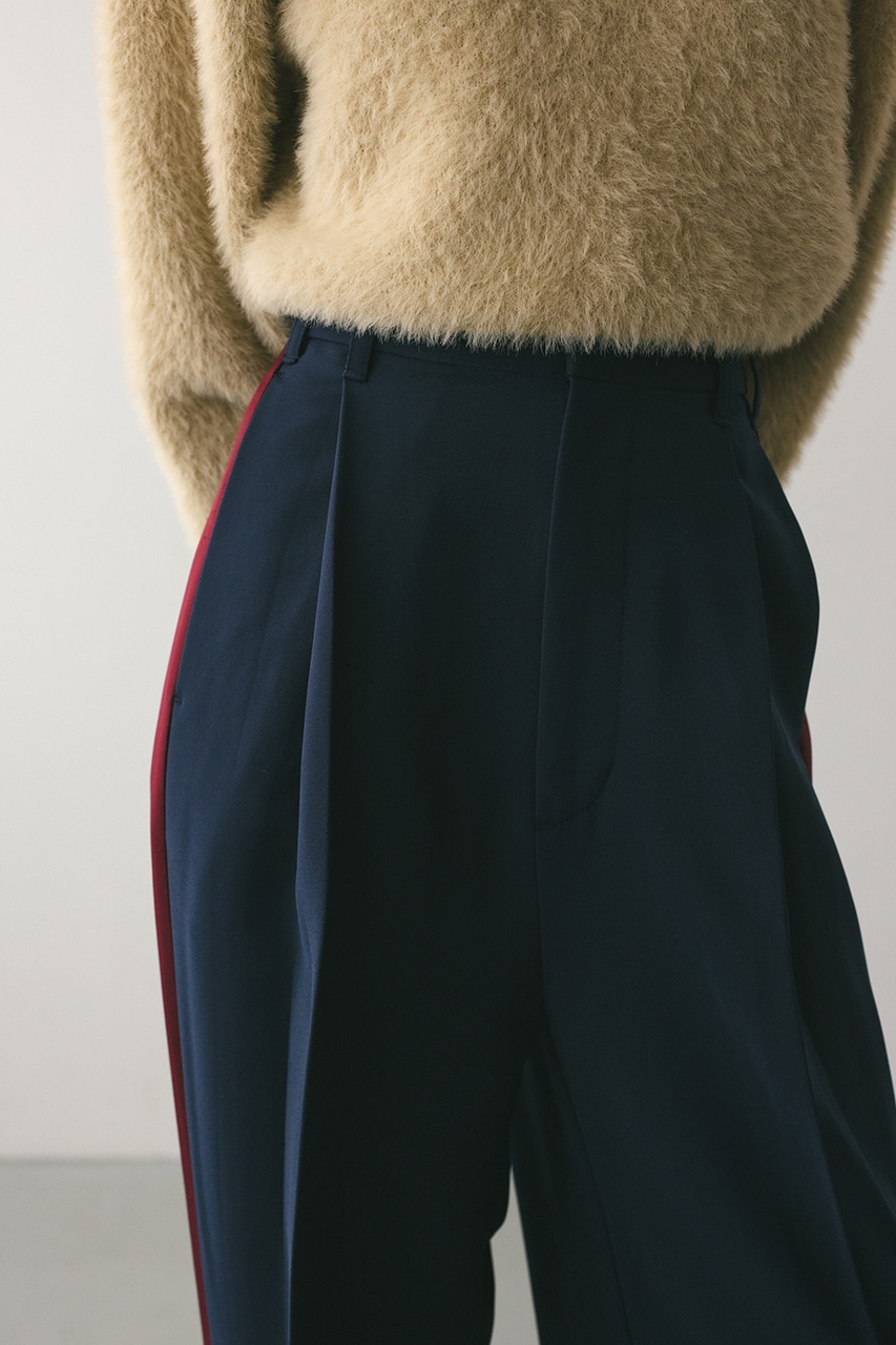 ハリ感となめらかさのある素材で仕立てたラインパンツ。